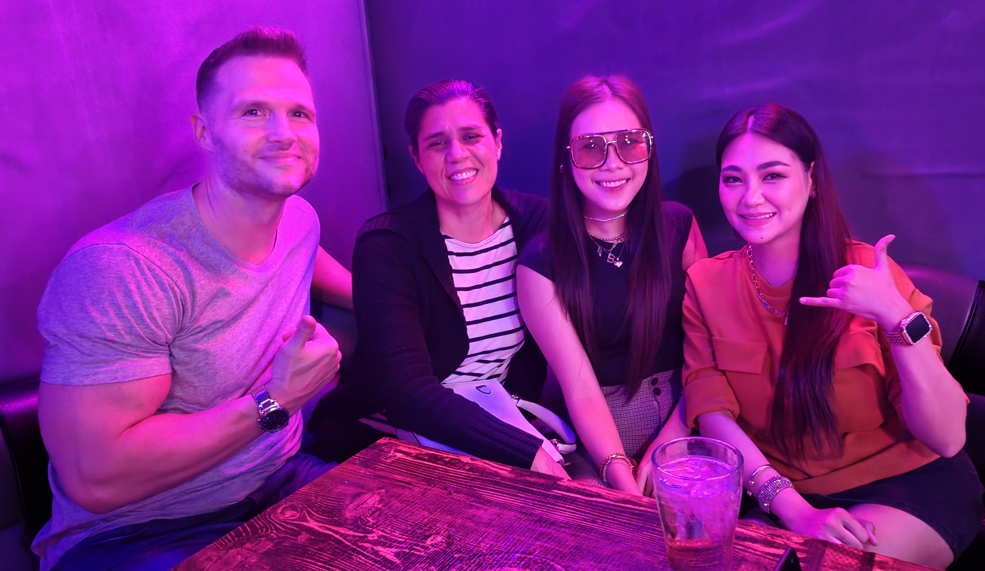 Matt, Tia, & Blake brought Ryan's family out to listen to the Brad & Nina band their first night in the country
