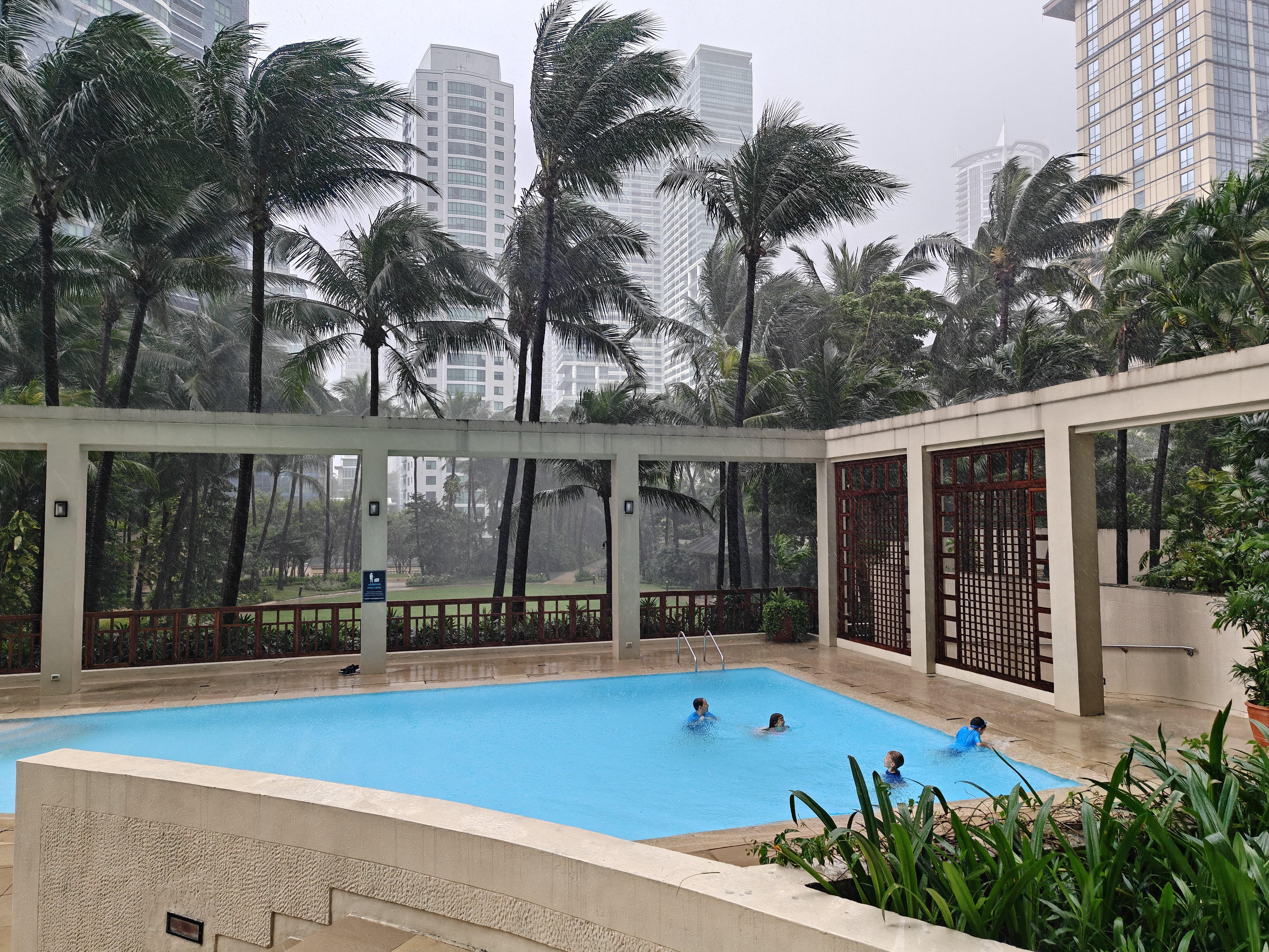 Sawyer kids enjoy swimming in the pool during a rainy afternoon after arriving in the Philippines from California