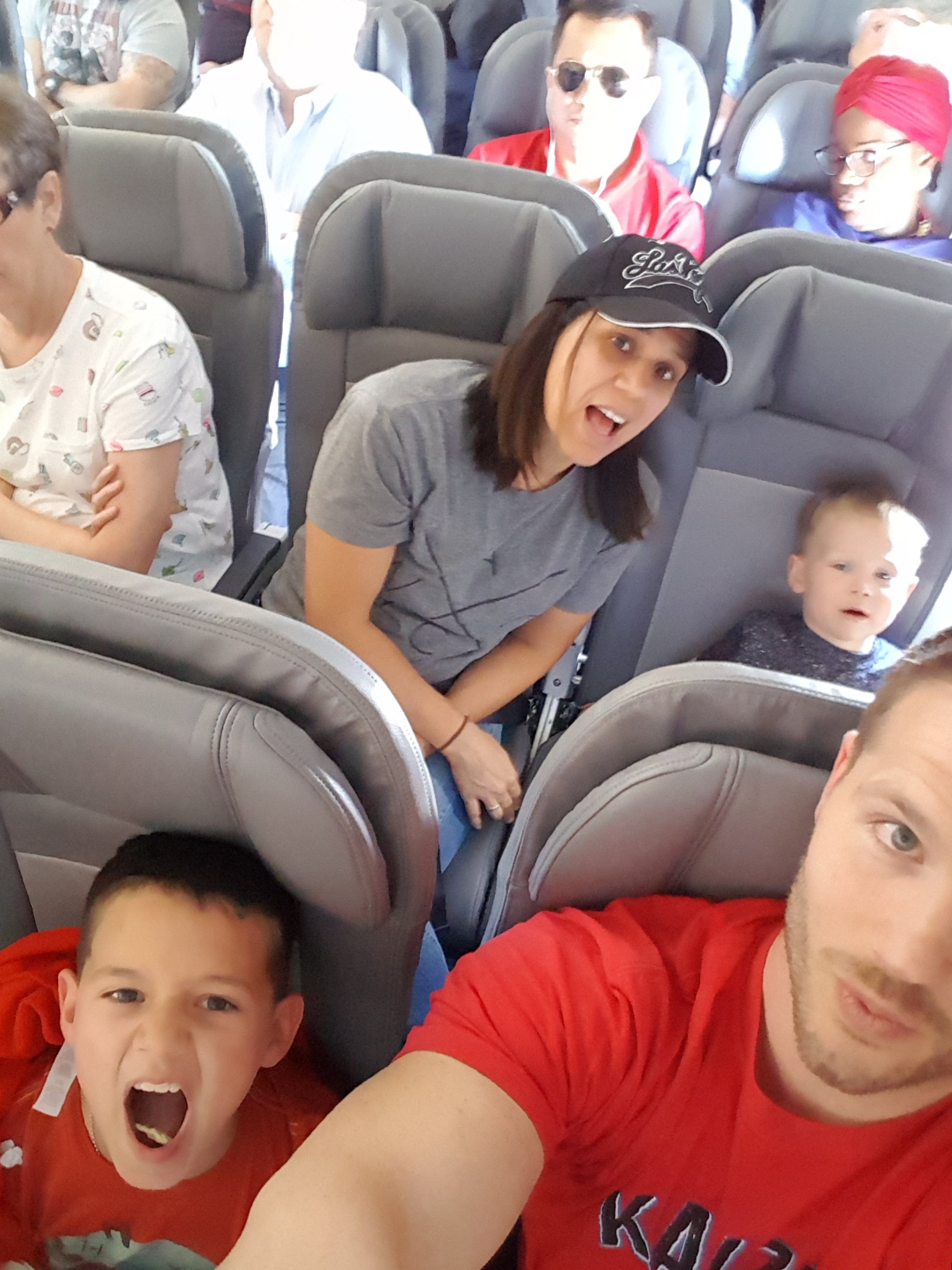 On a jet plane heading home from the Limary Family Reunion