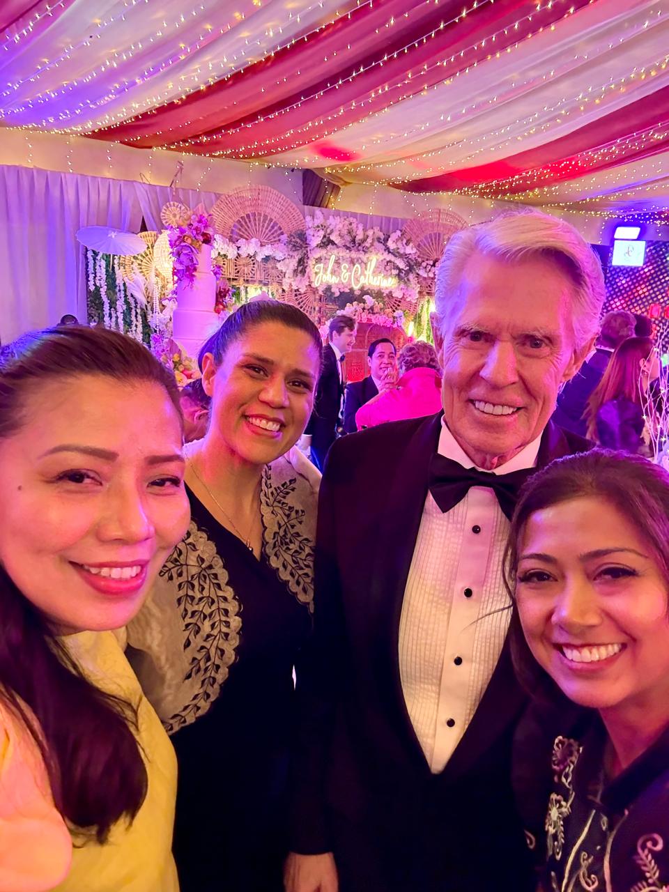 Tia and Matt pose with the bride and groom at their festive wedding reception at Manila Polo Club
