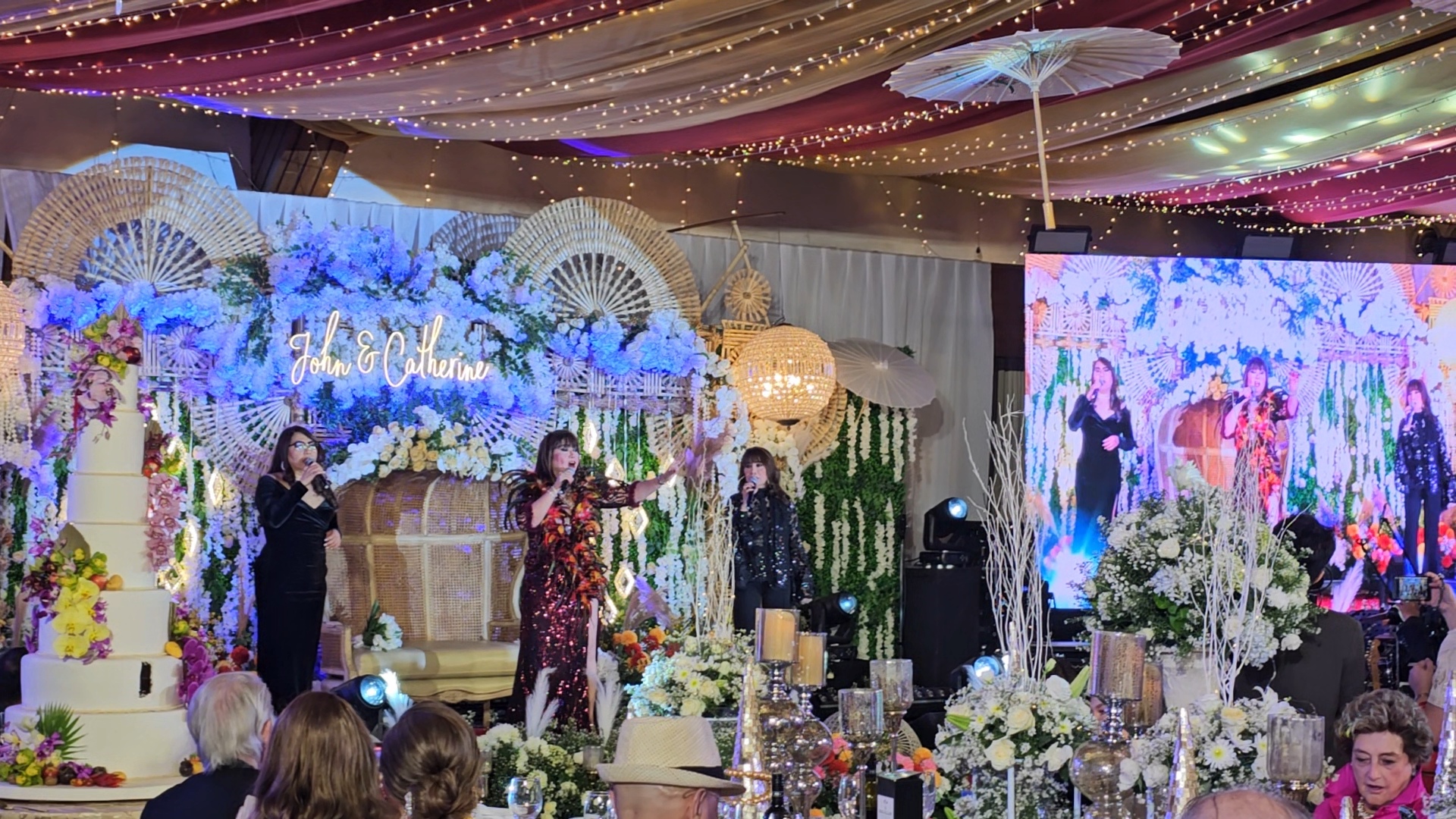 Imelda Papin performs at John and Catherine's beautifully decorated wedding reception.