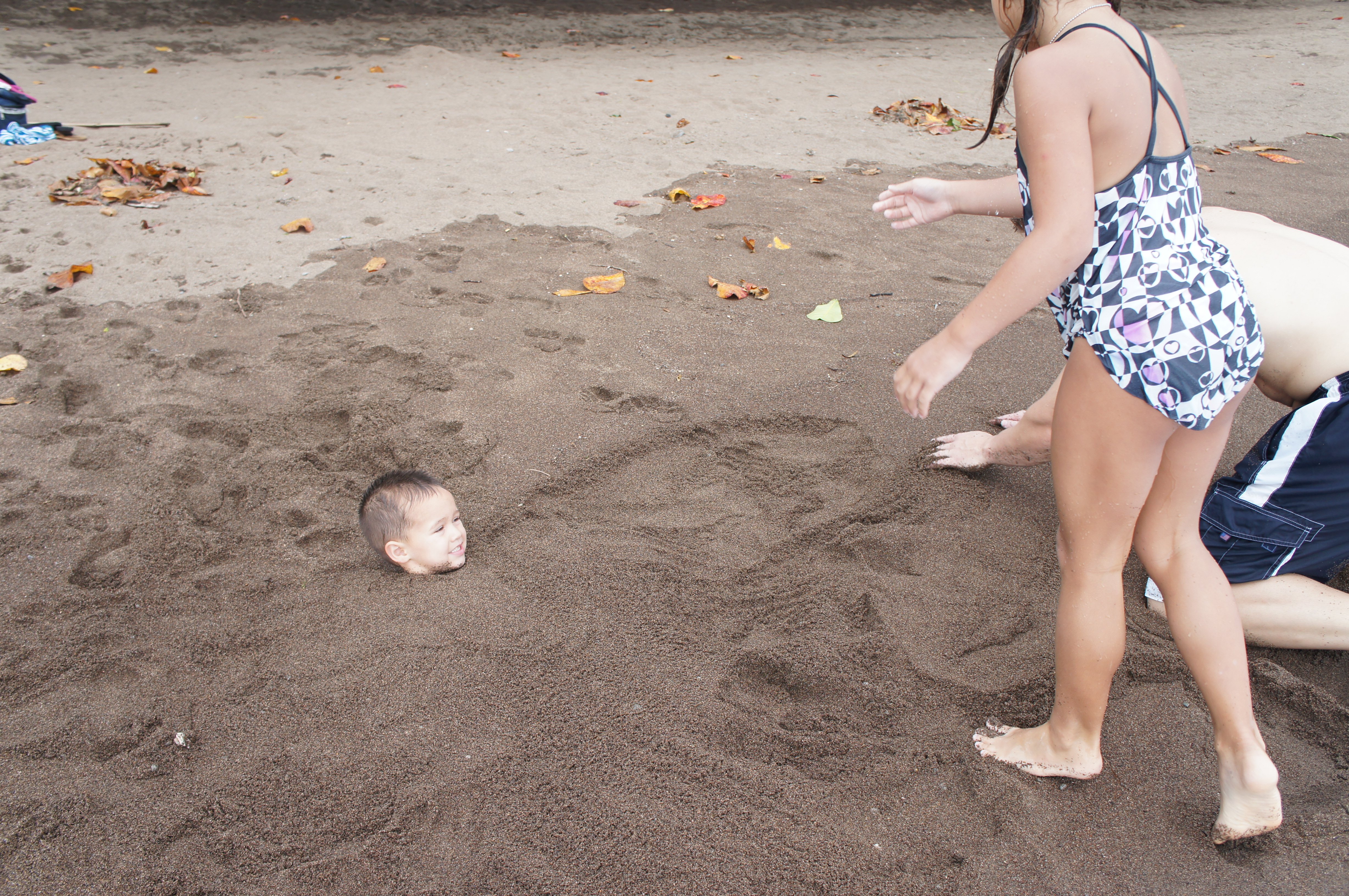 The kids stayed in one spot for more than 2 minutes on the beach