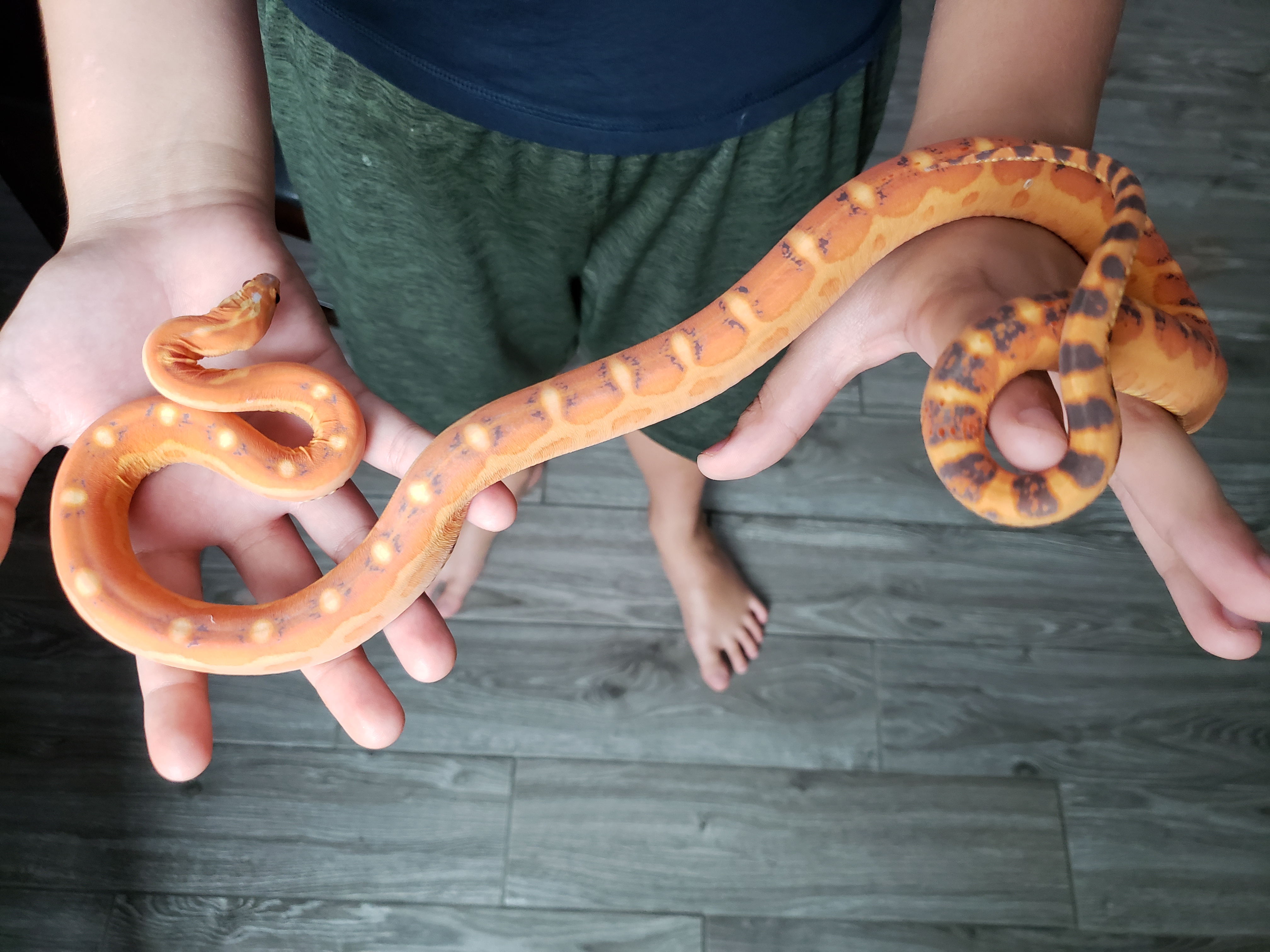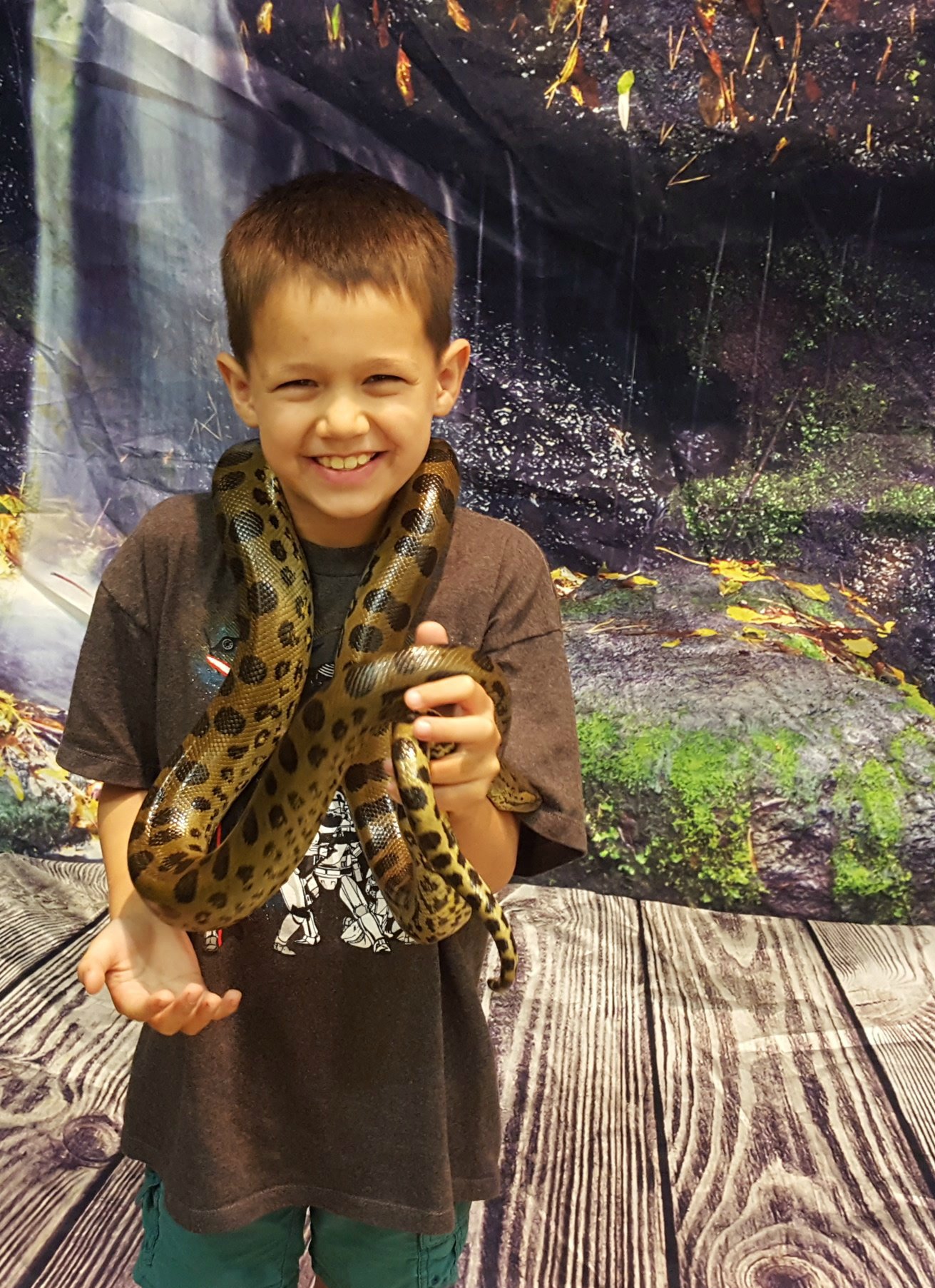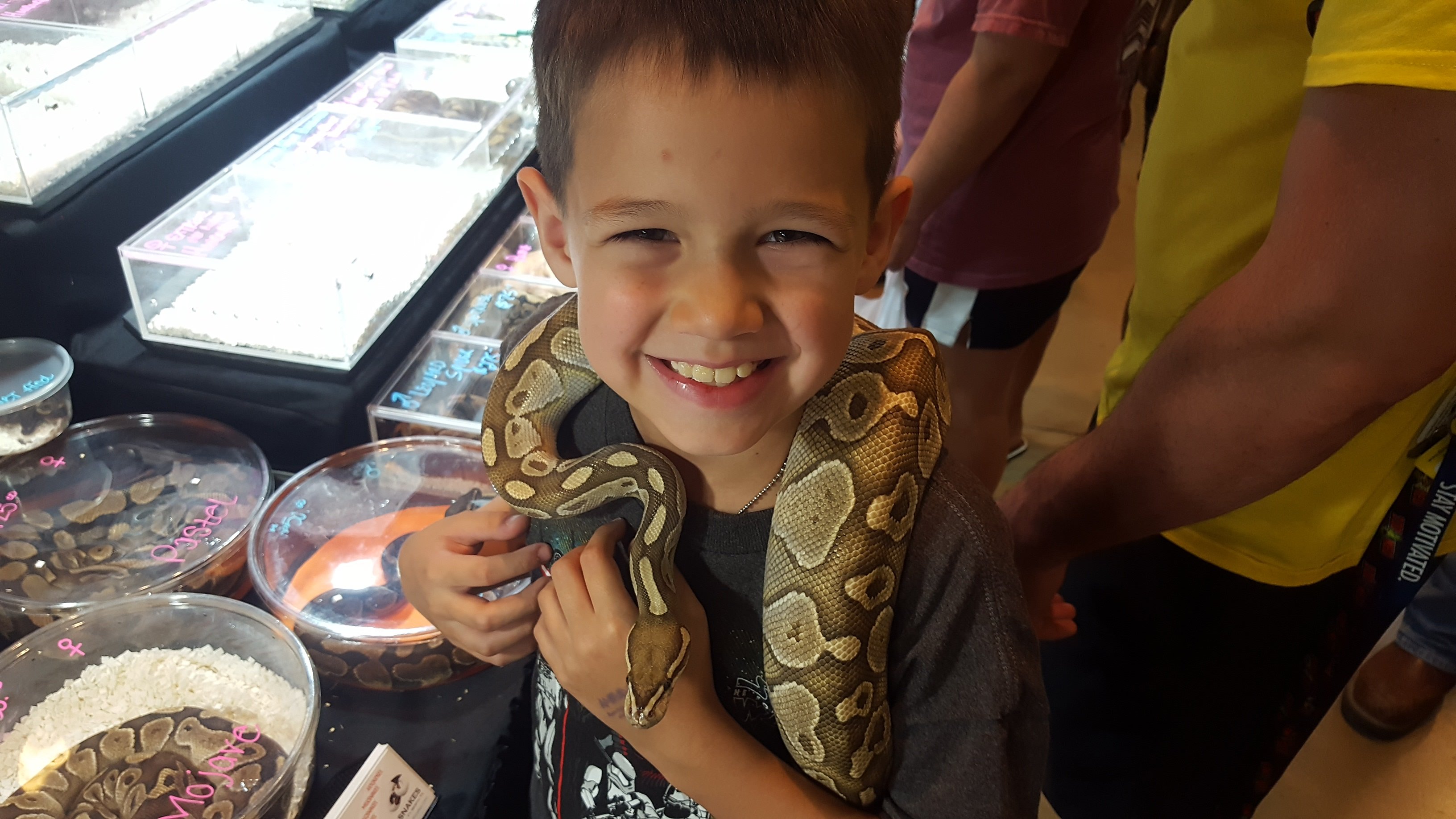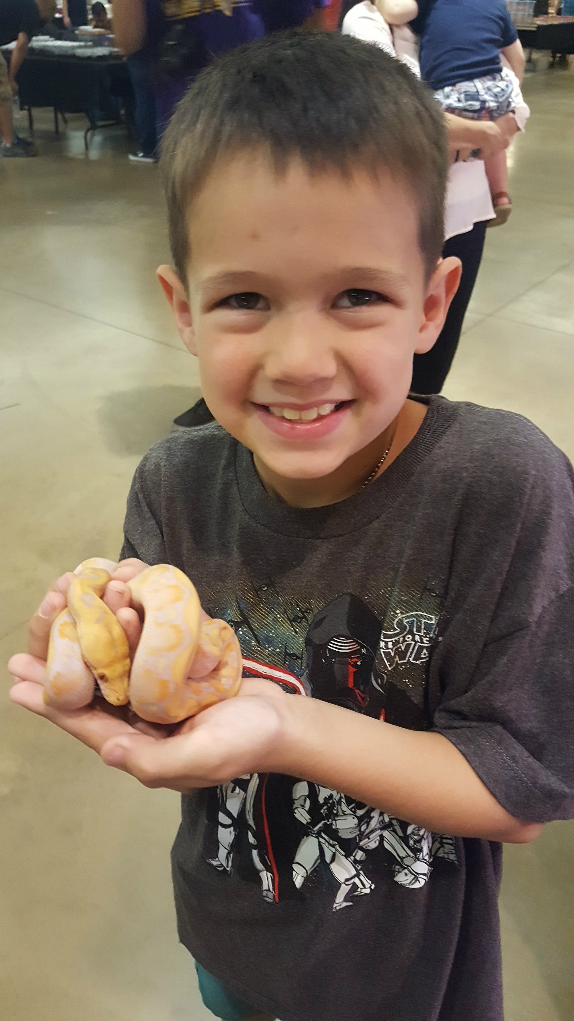 Mason woudl ask the breeders if he could hold a snake and sometimes they say yes. He got to hold this Ball python