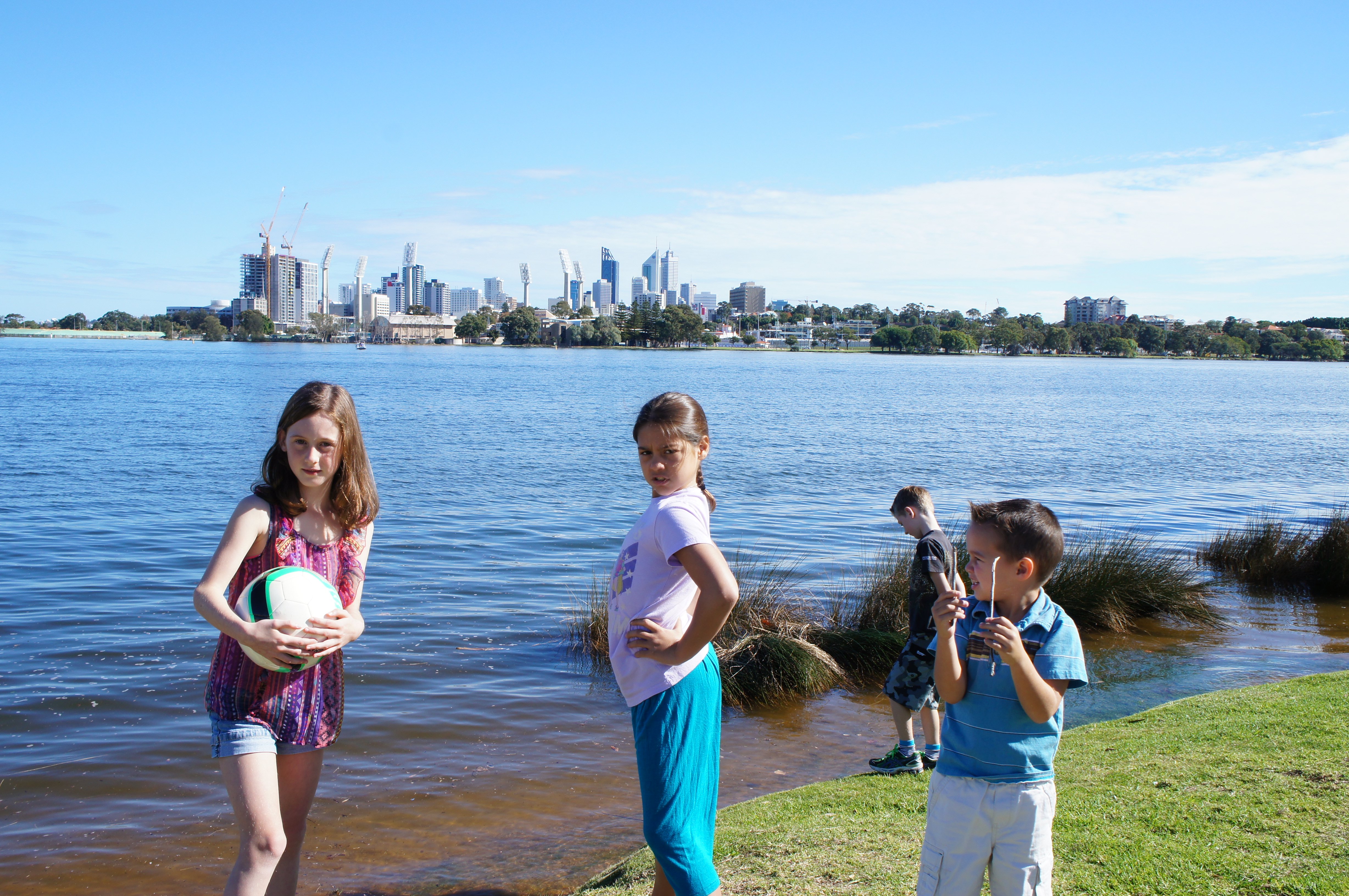 Farley & Crawford kids playing at Burswood Park near Swam River