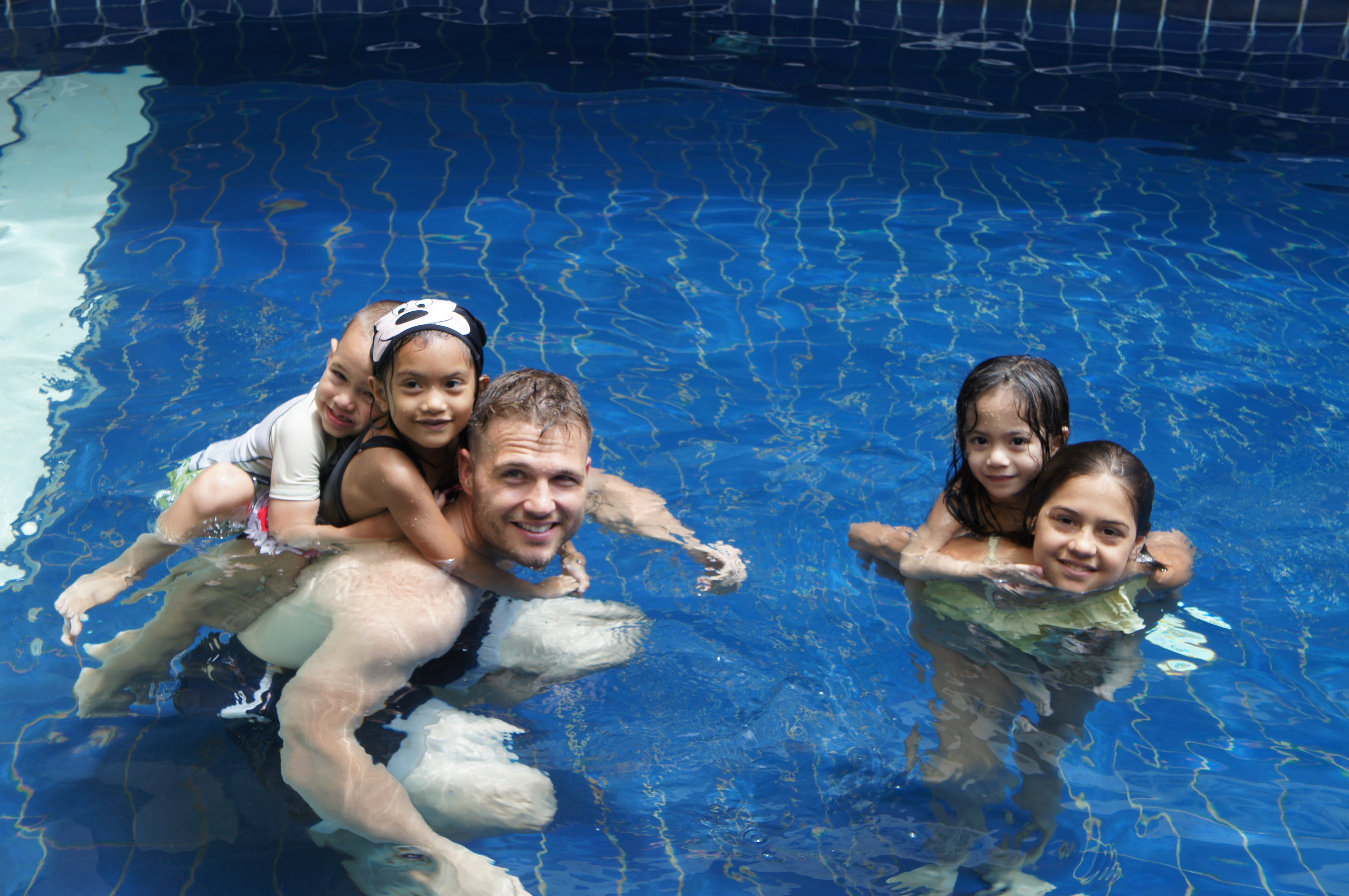 Swimming with cousins at Brunei hotel