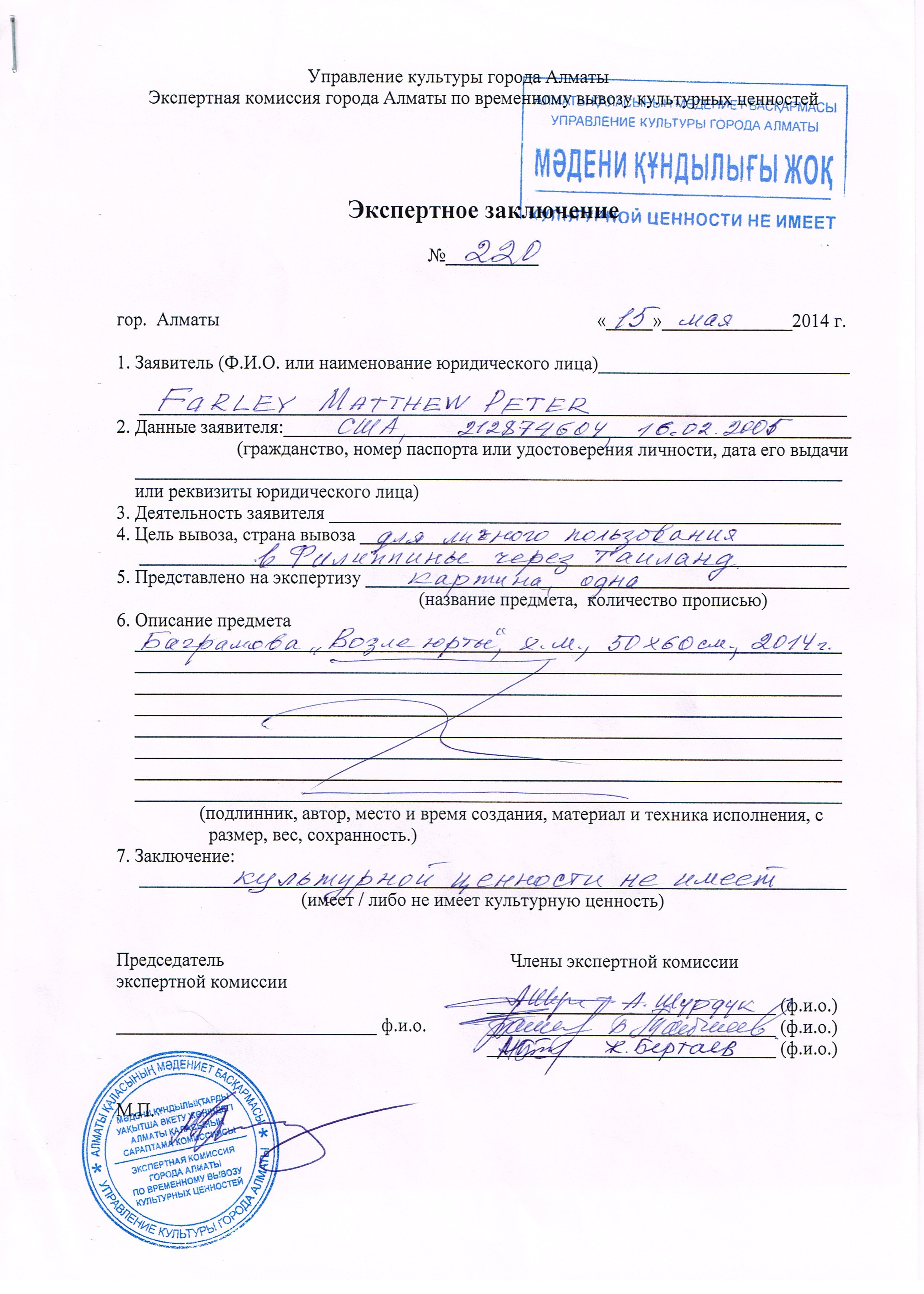 Official document certifying that my painting isn't a national treasure