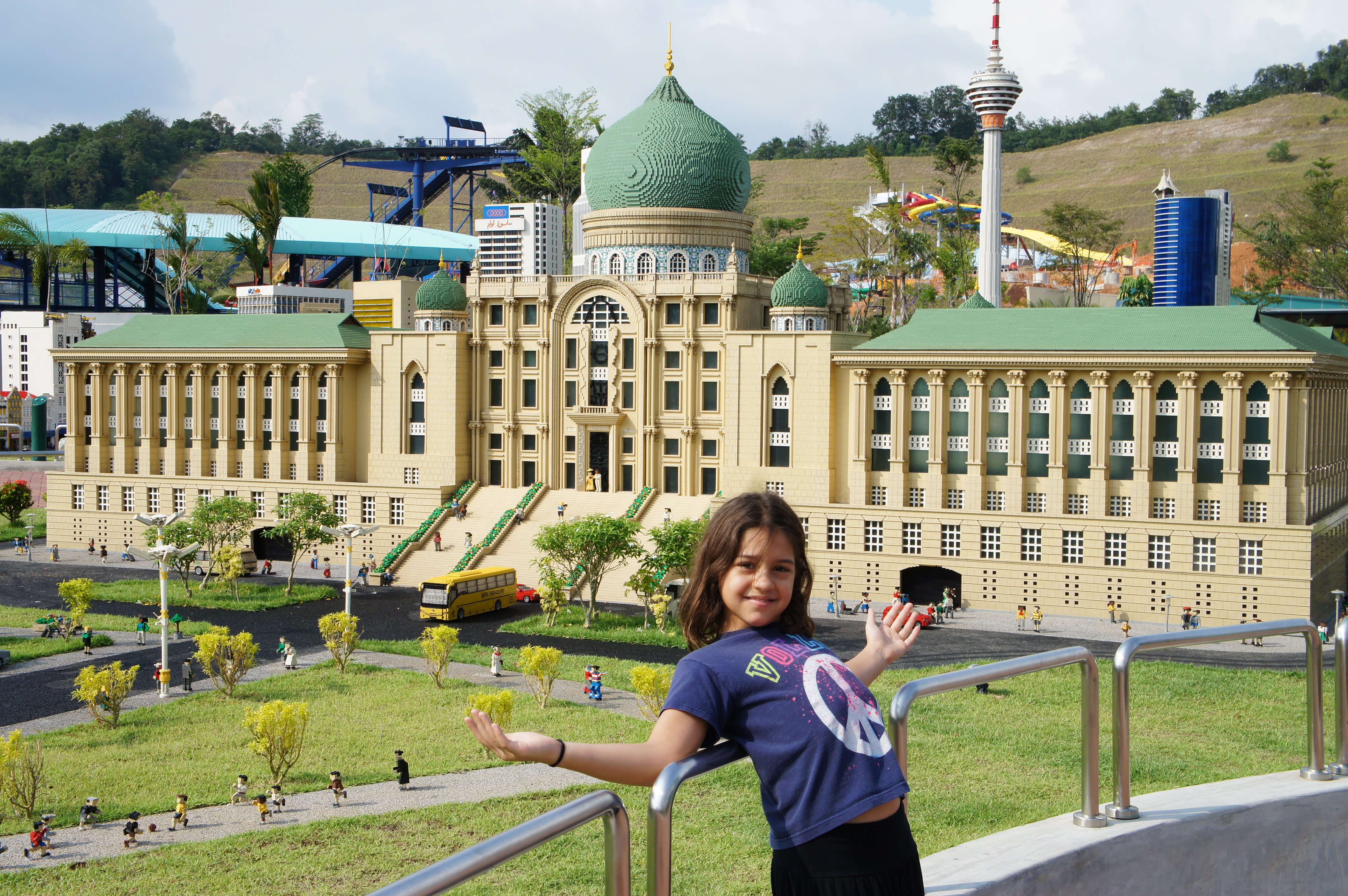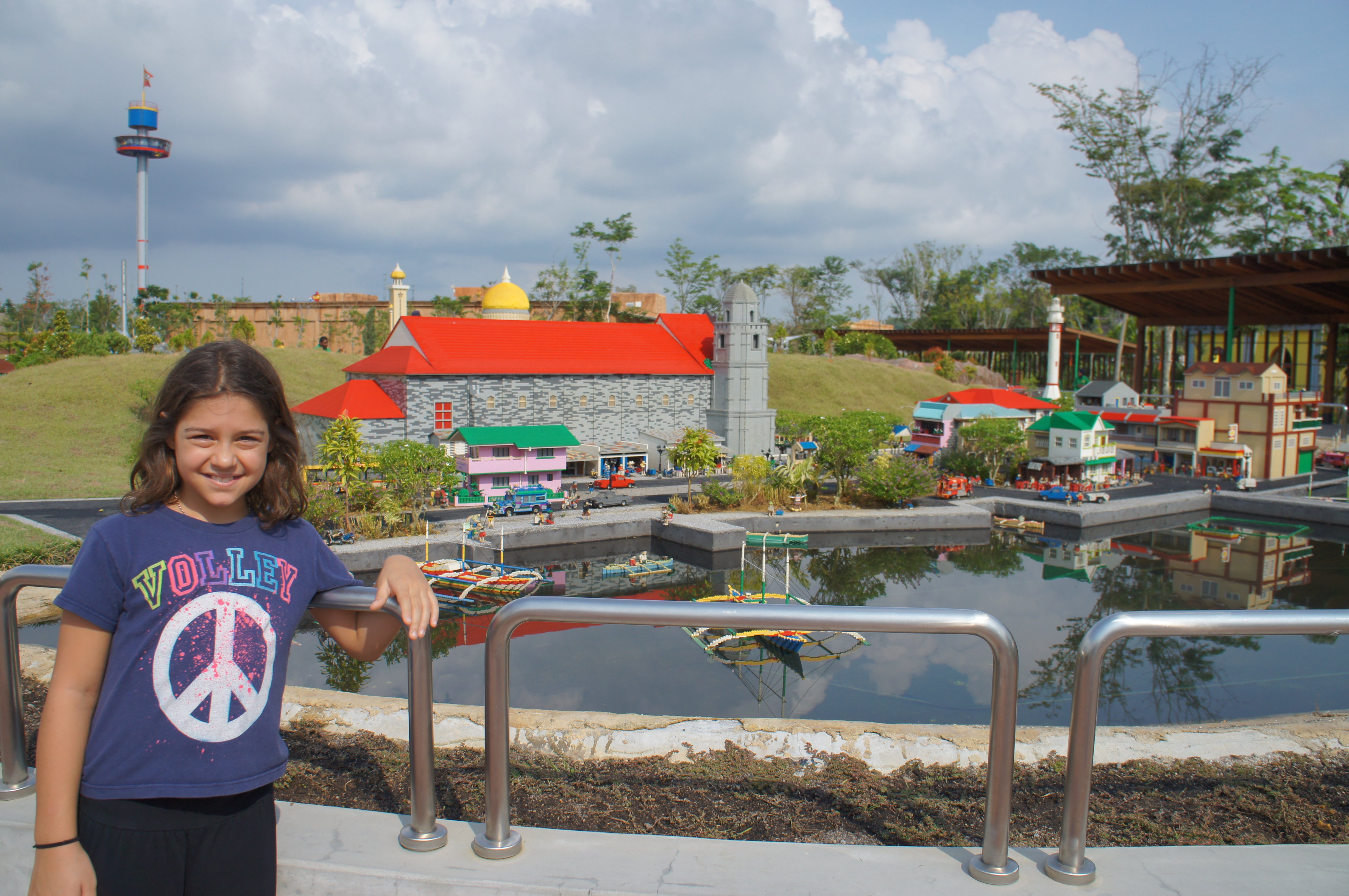 Kalani in front of the Philippines display at LegoLand