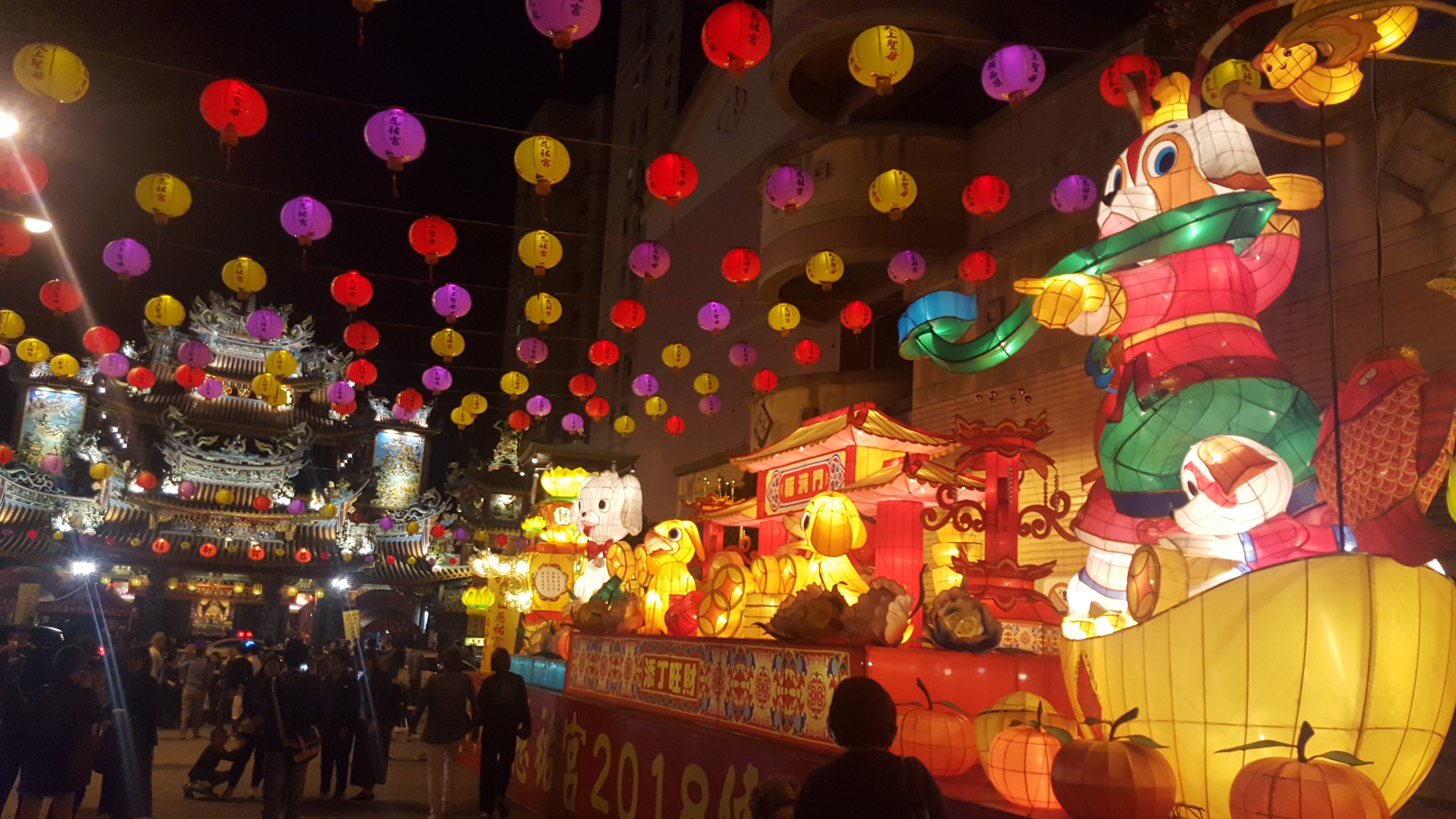 Lanterns on display outside Songshan Ciyou Temple in Taipei, Taiwan