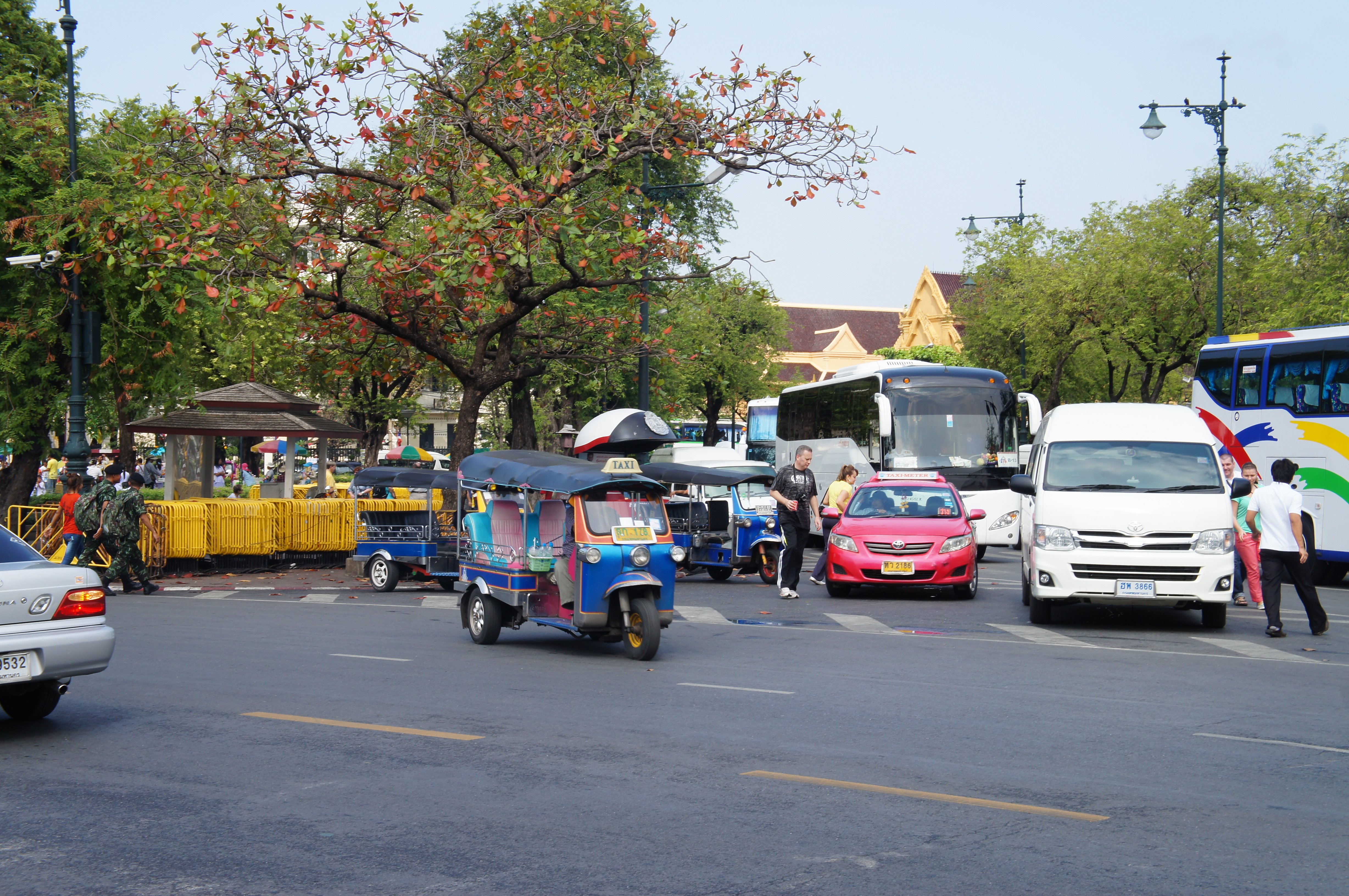 Streets of Bangkok, Thailand filled with cars, taxis, buses and tuk tuks
