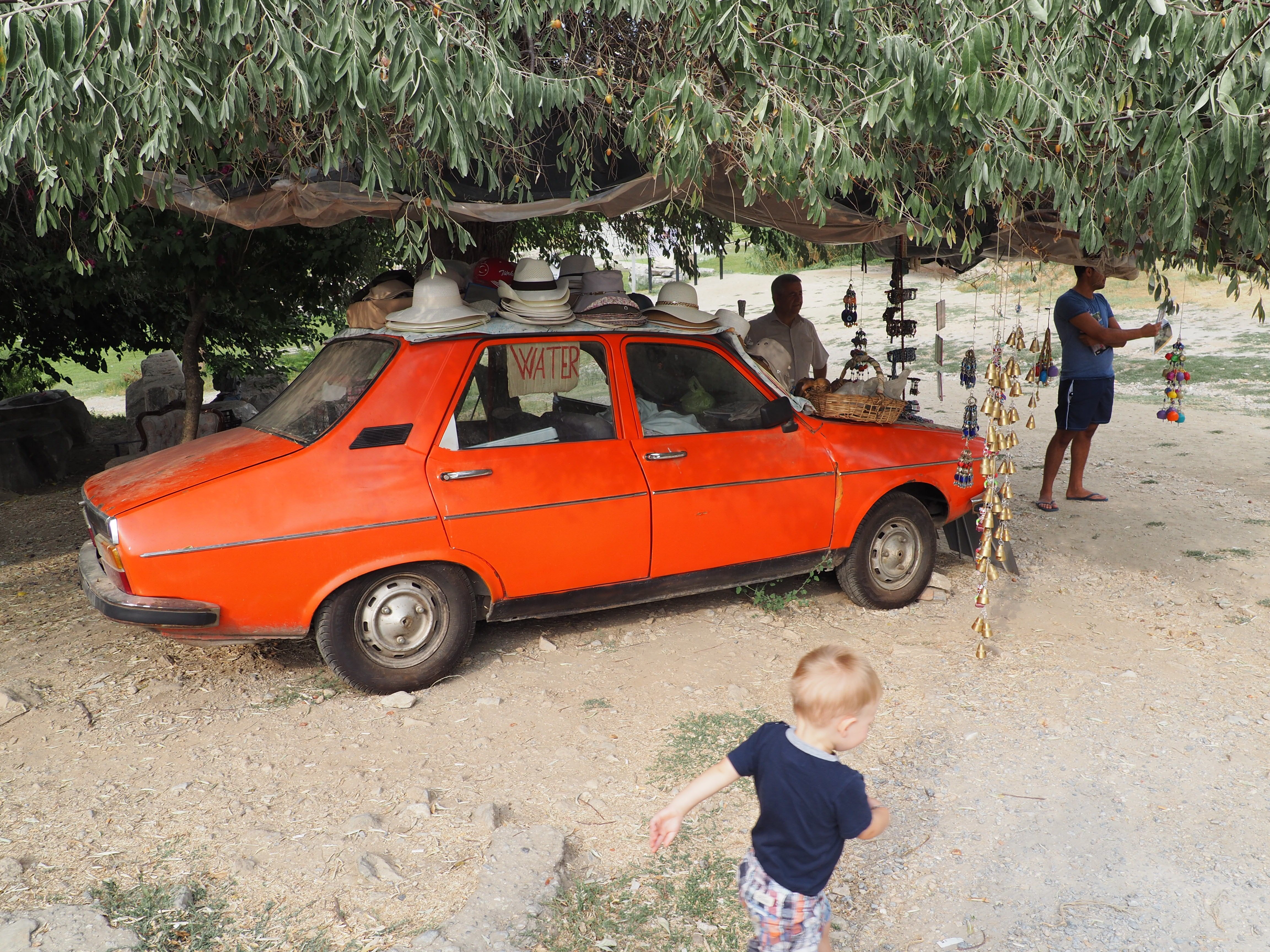 Vendors at the Artemis Temple in Ephesus, Turkey...and Blake looking for cats