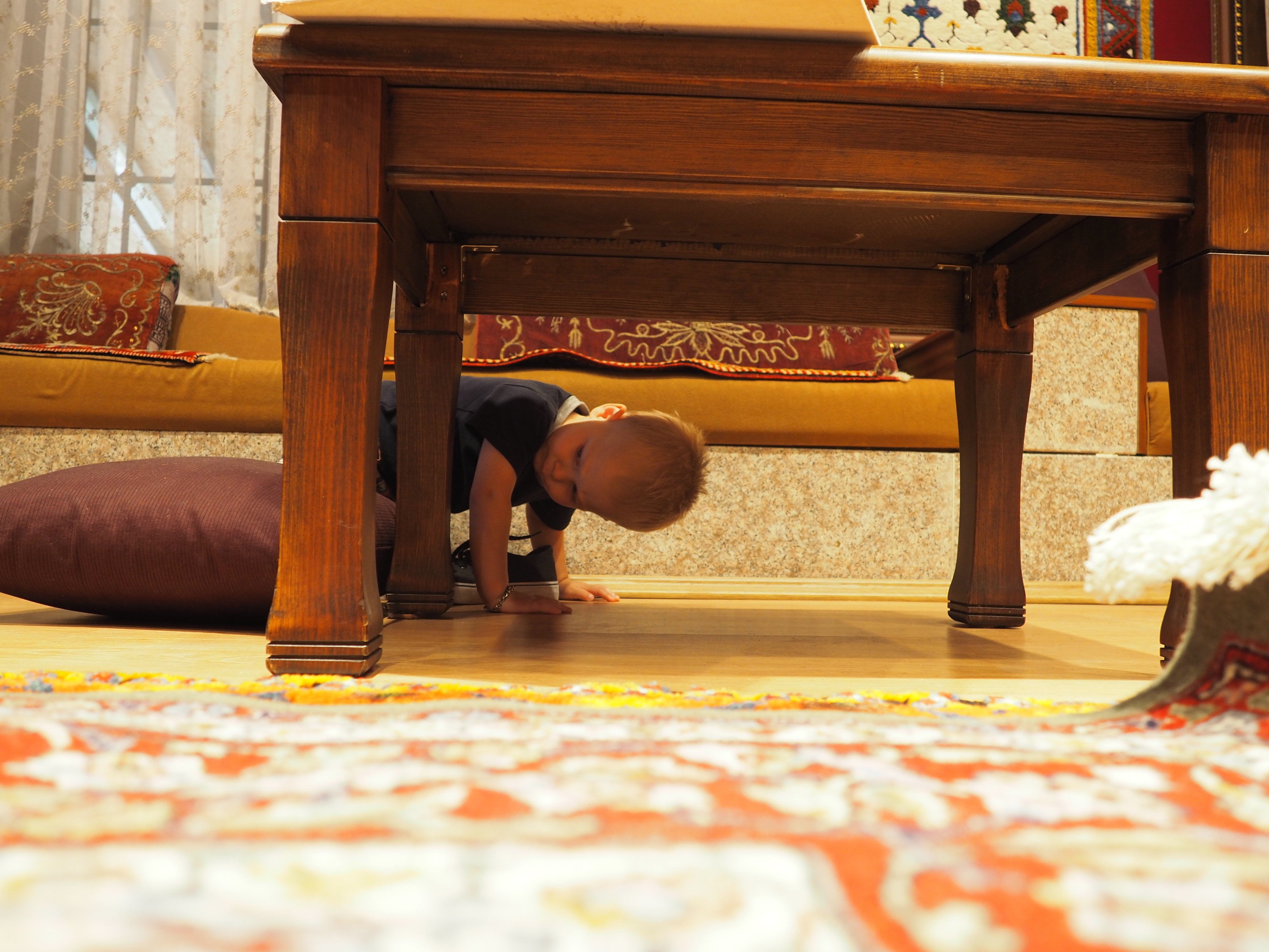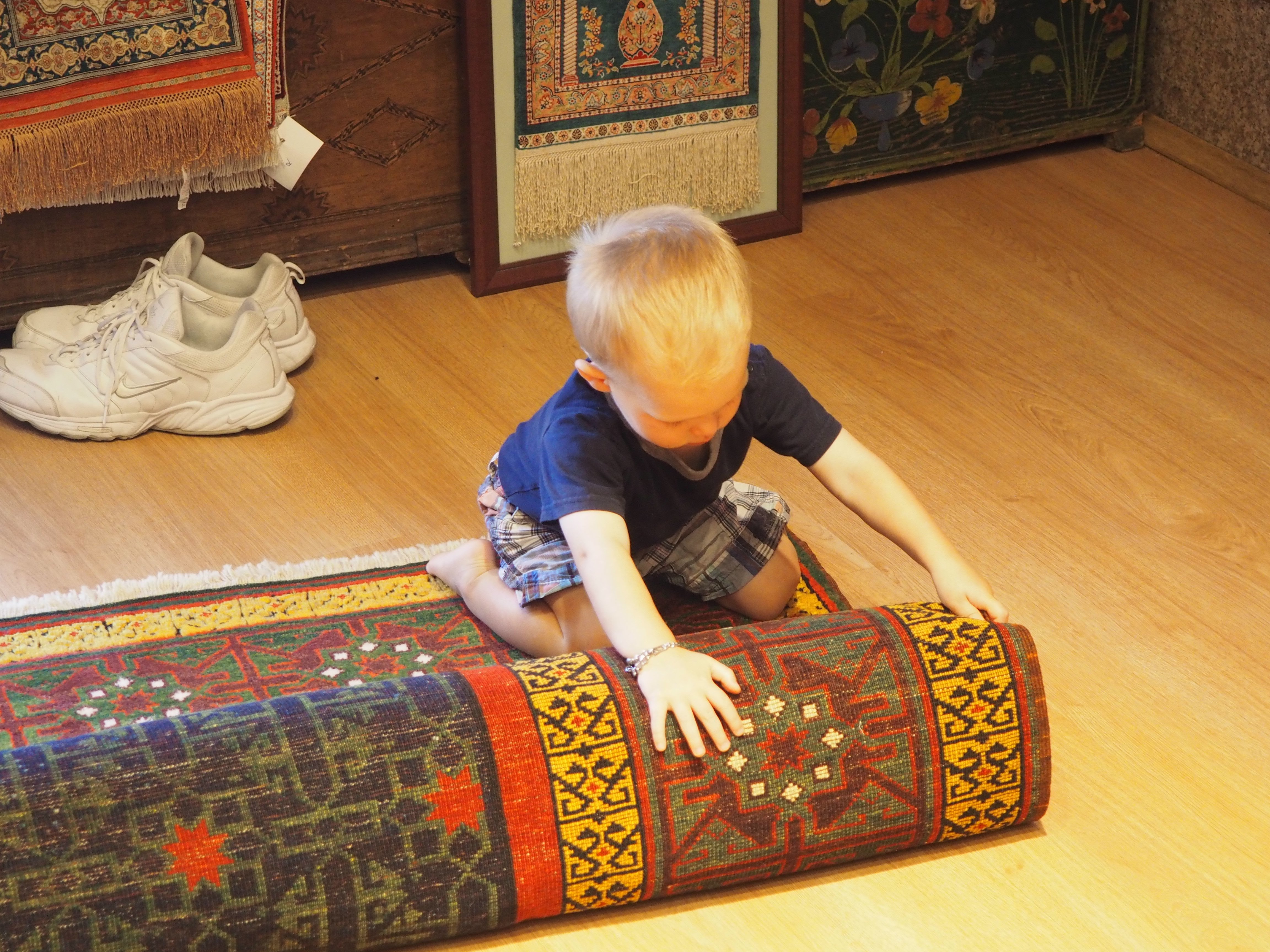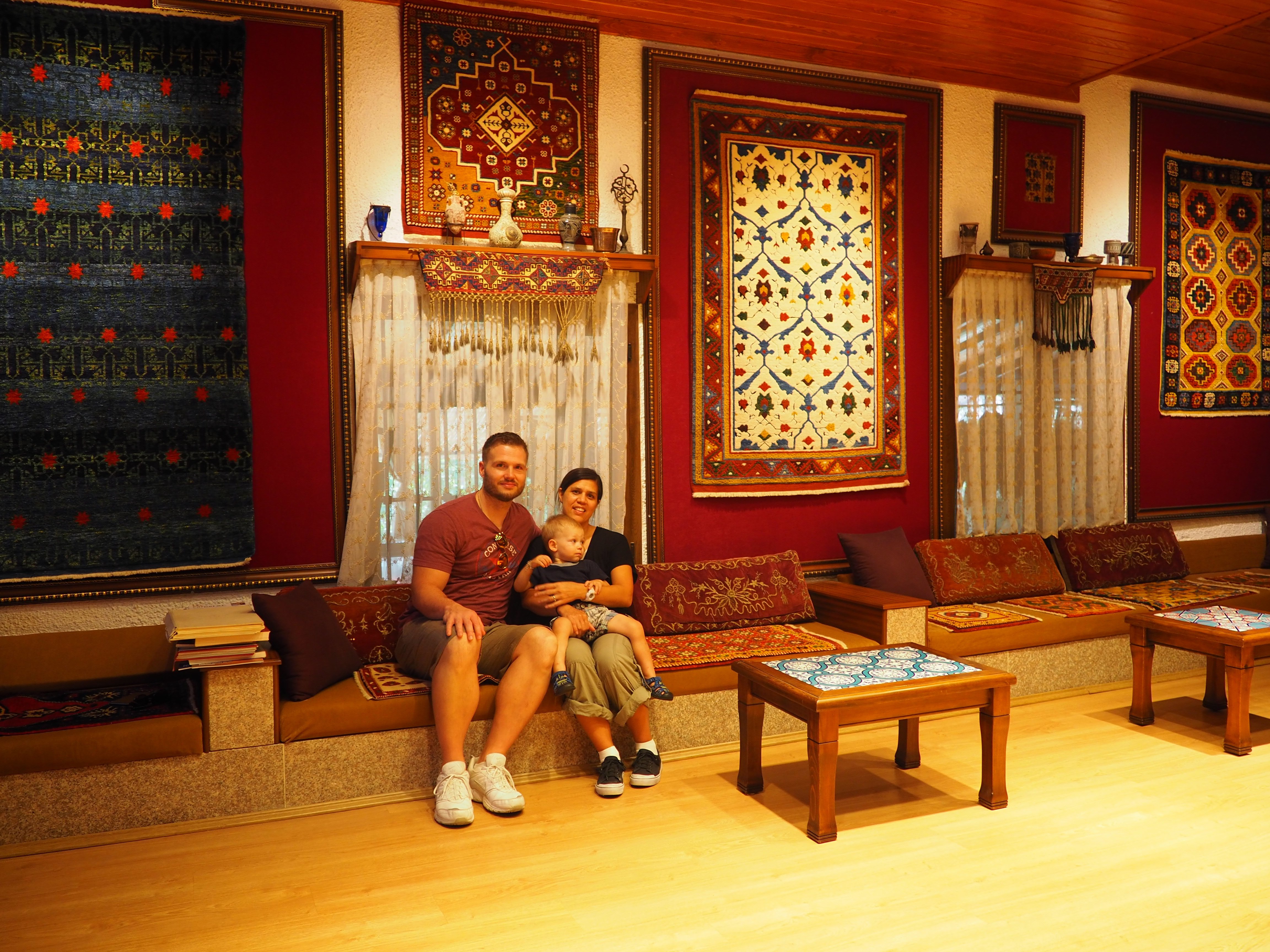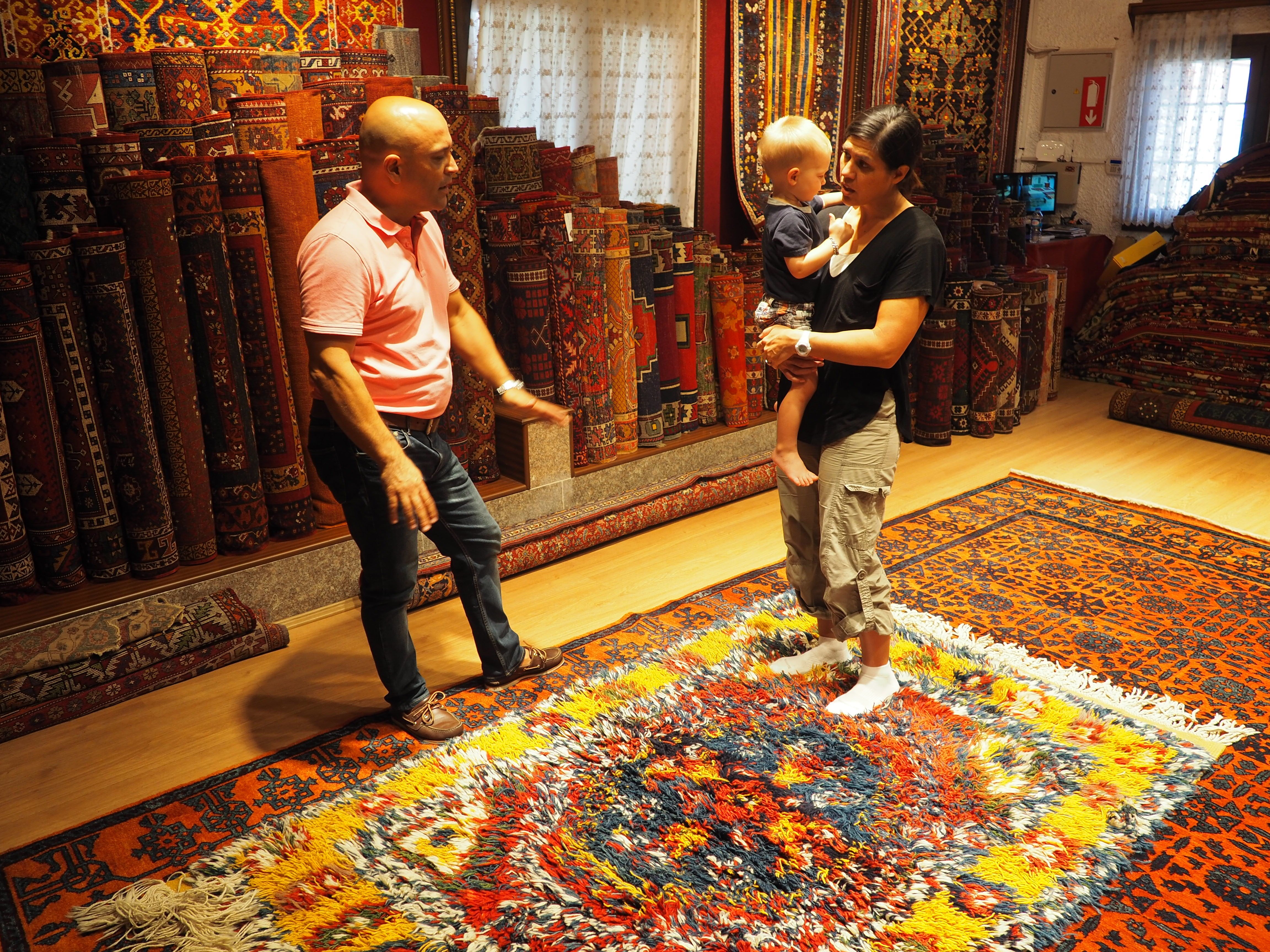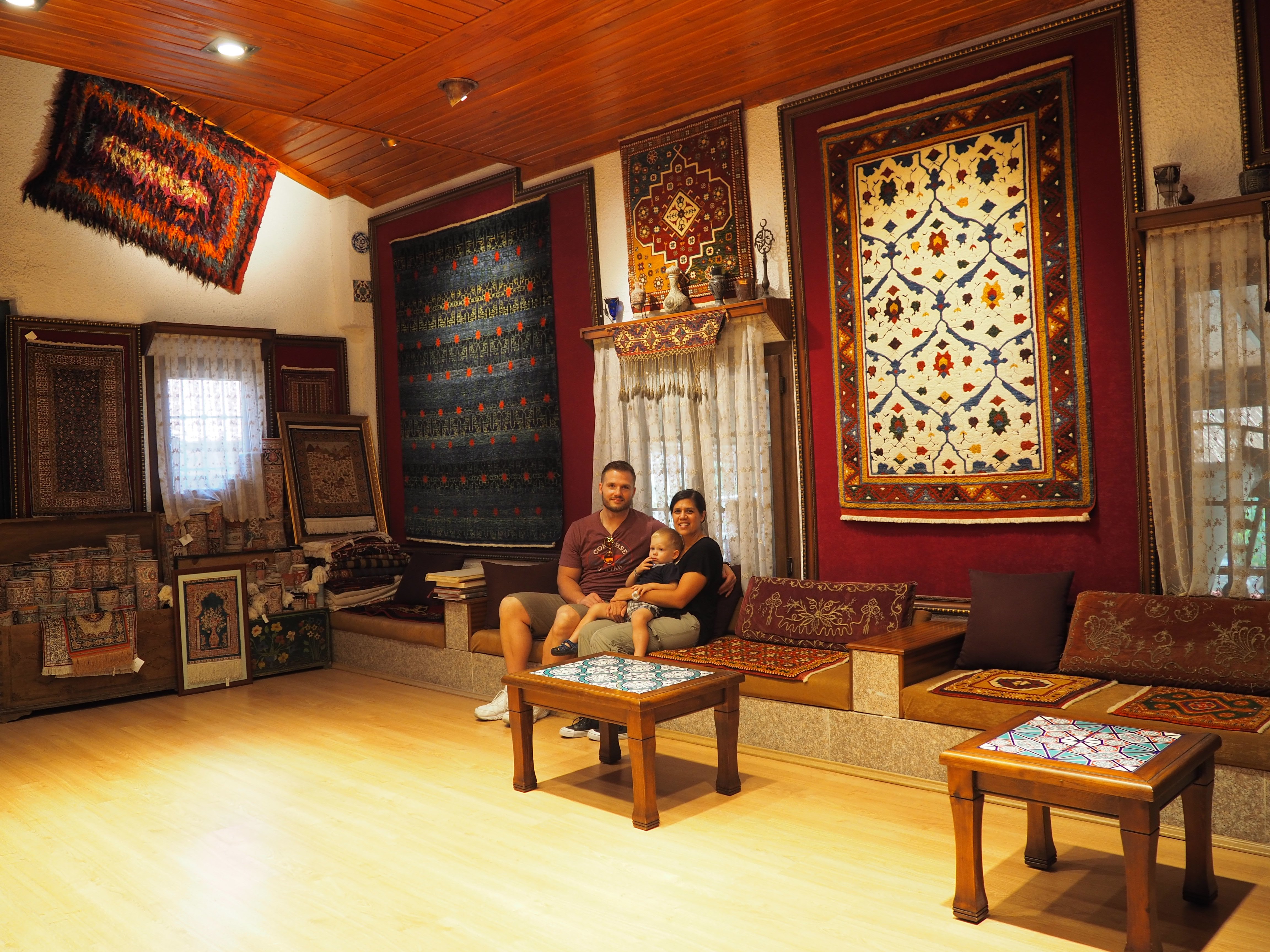 Blake exlporing everything inside the rug display room in Ephesus, Turkey