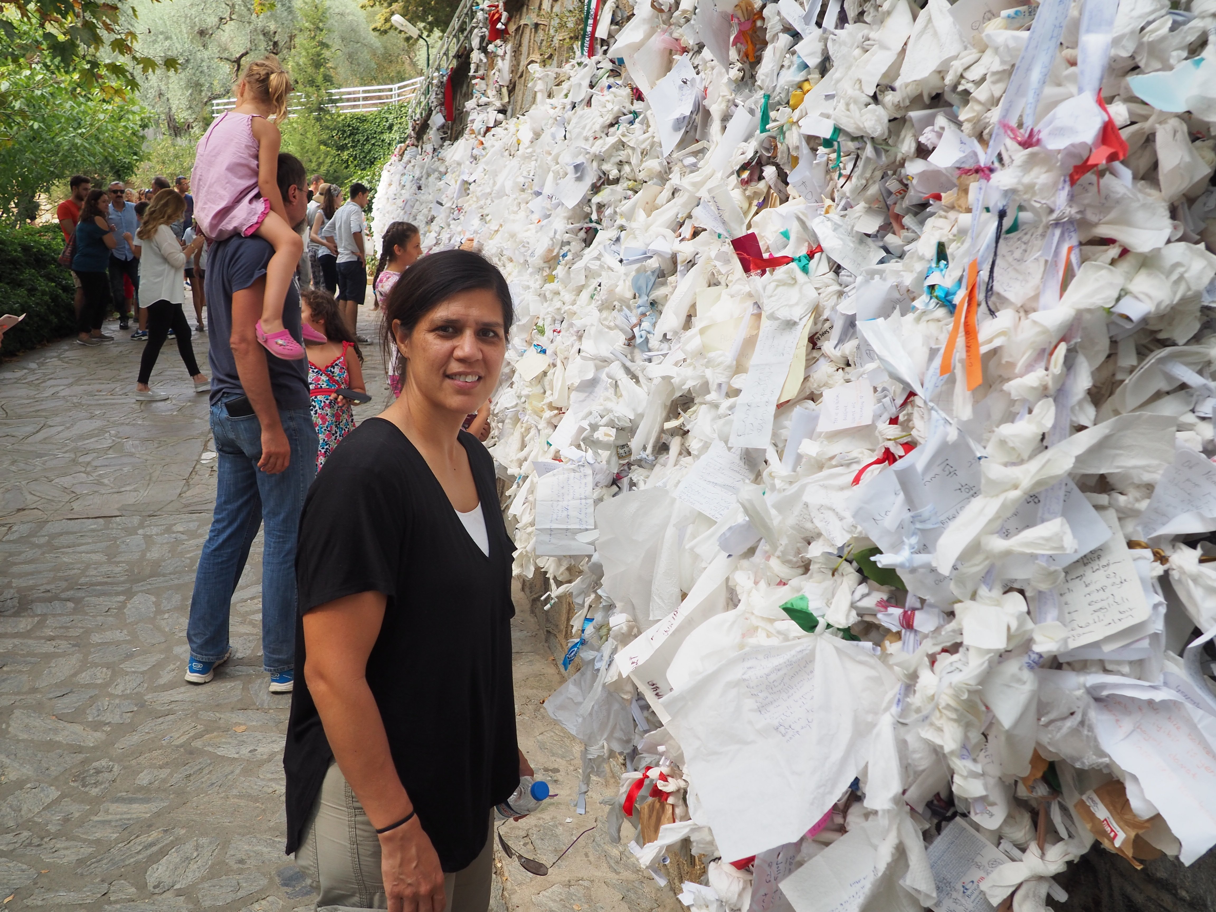 At The House of Virgin Mary people write prayers/wishes and place them on this wall
