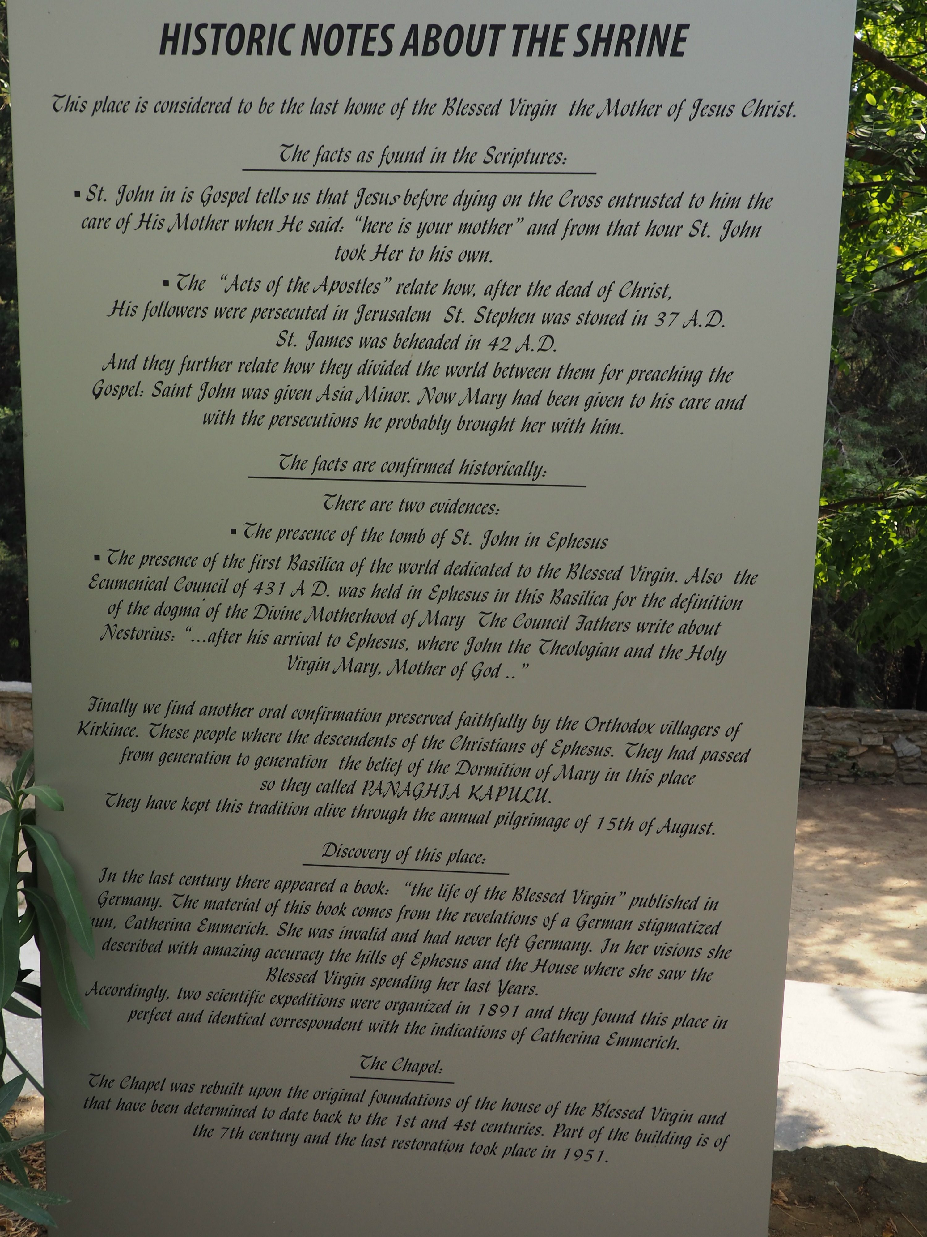 Information about The House of Virgin Mary in Ephesus, Turkey