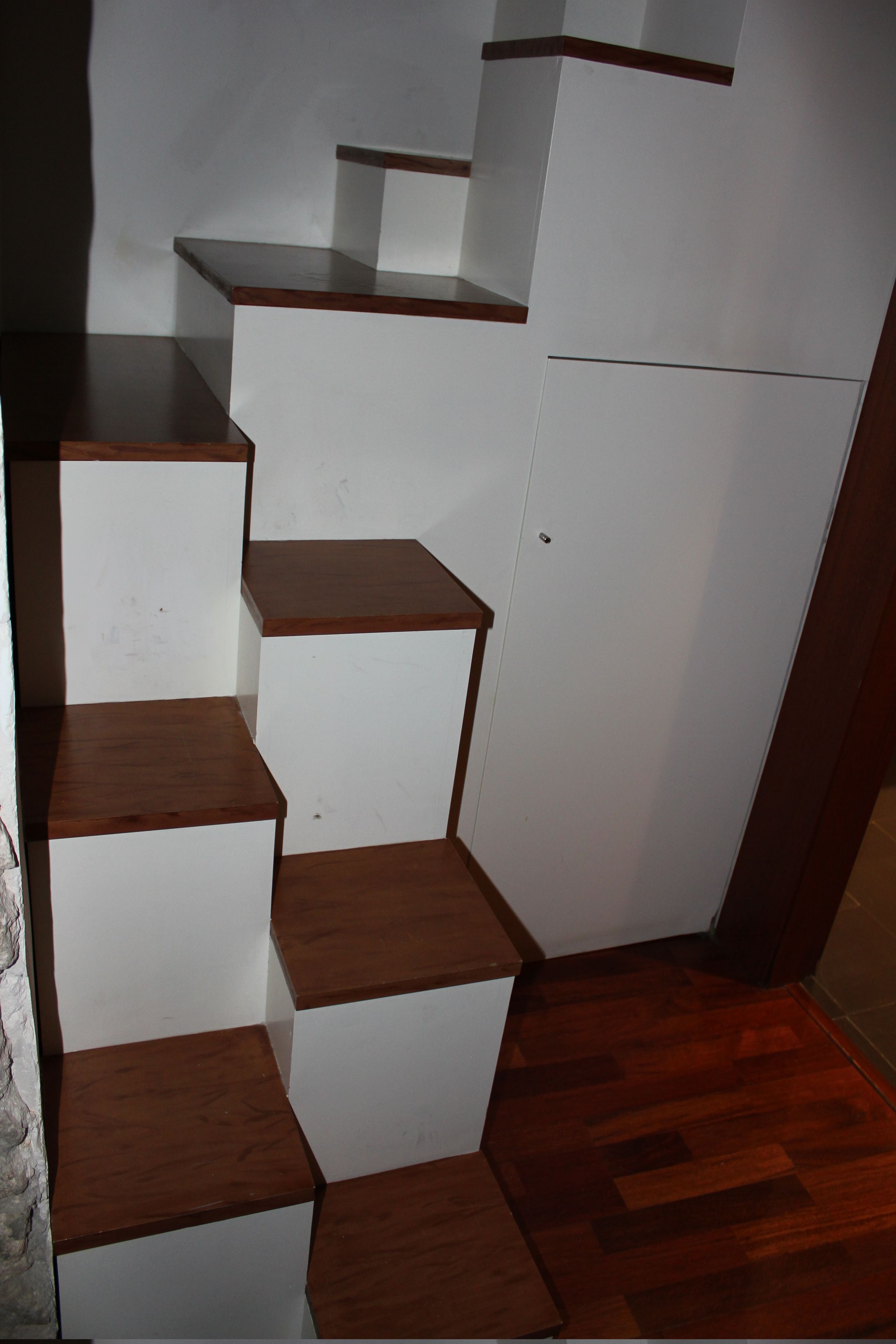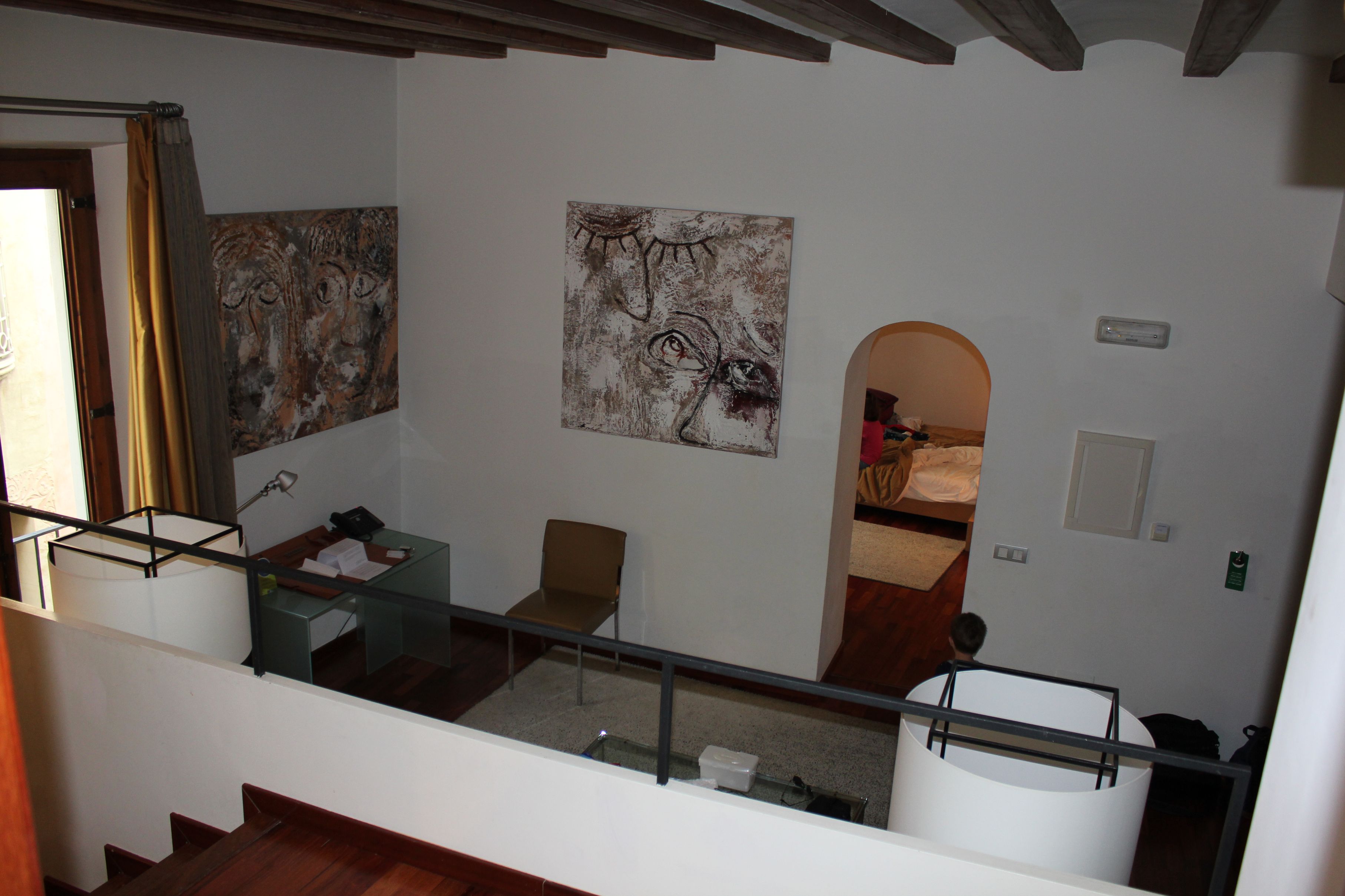 Stairway leading to a platform in Angela's hotel room in Barcelona