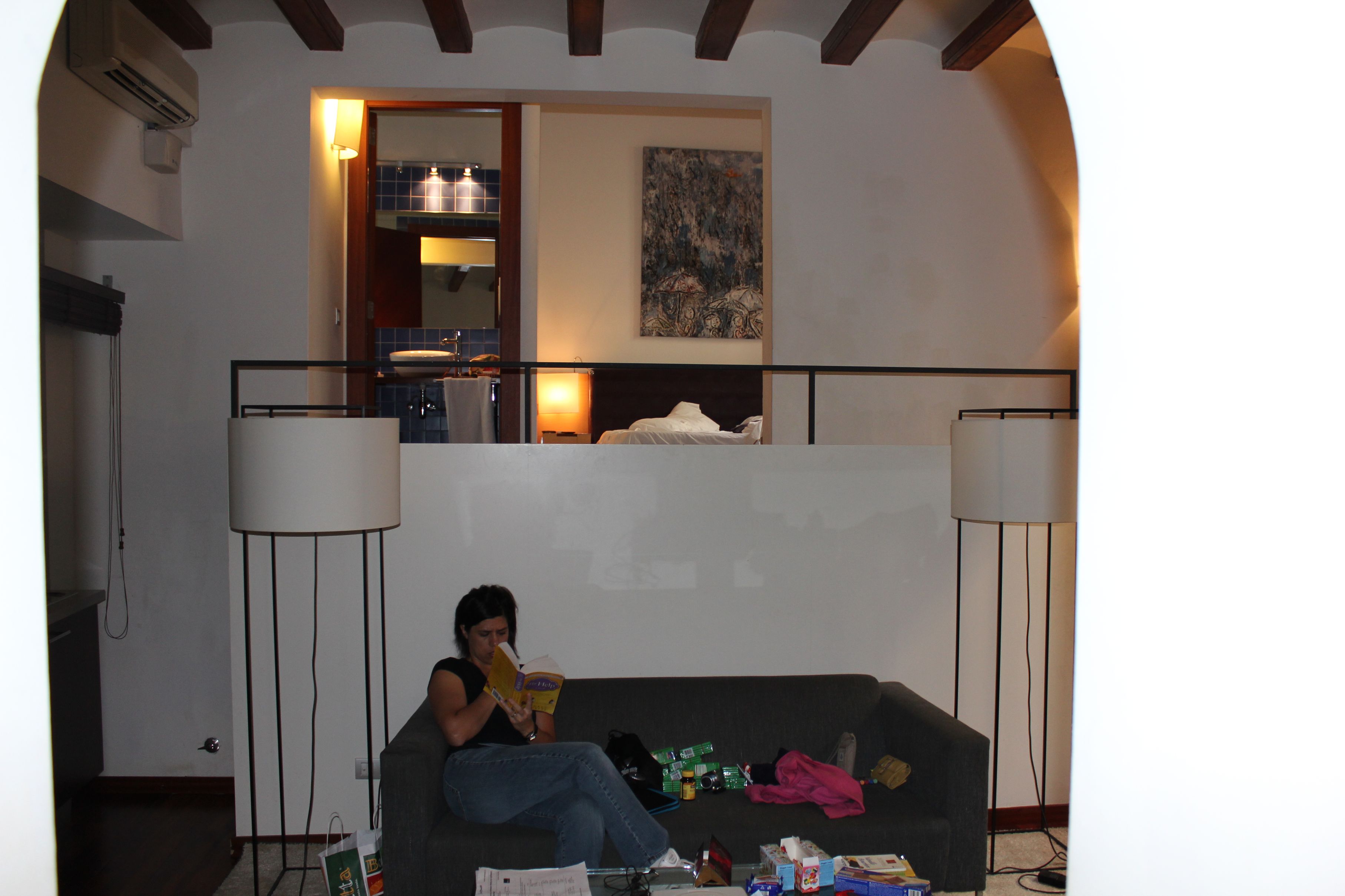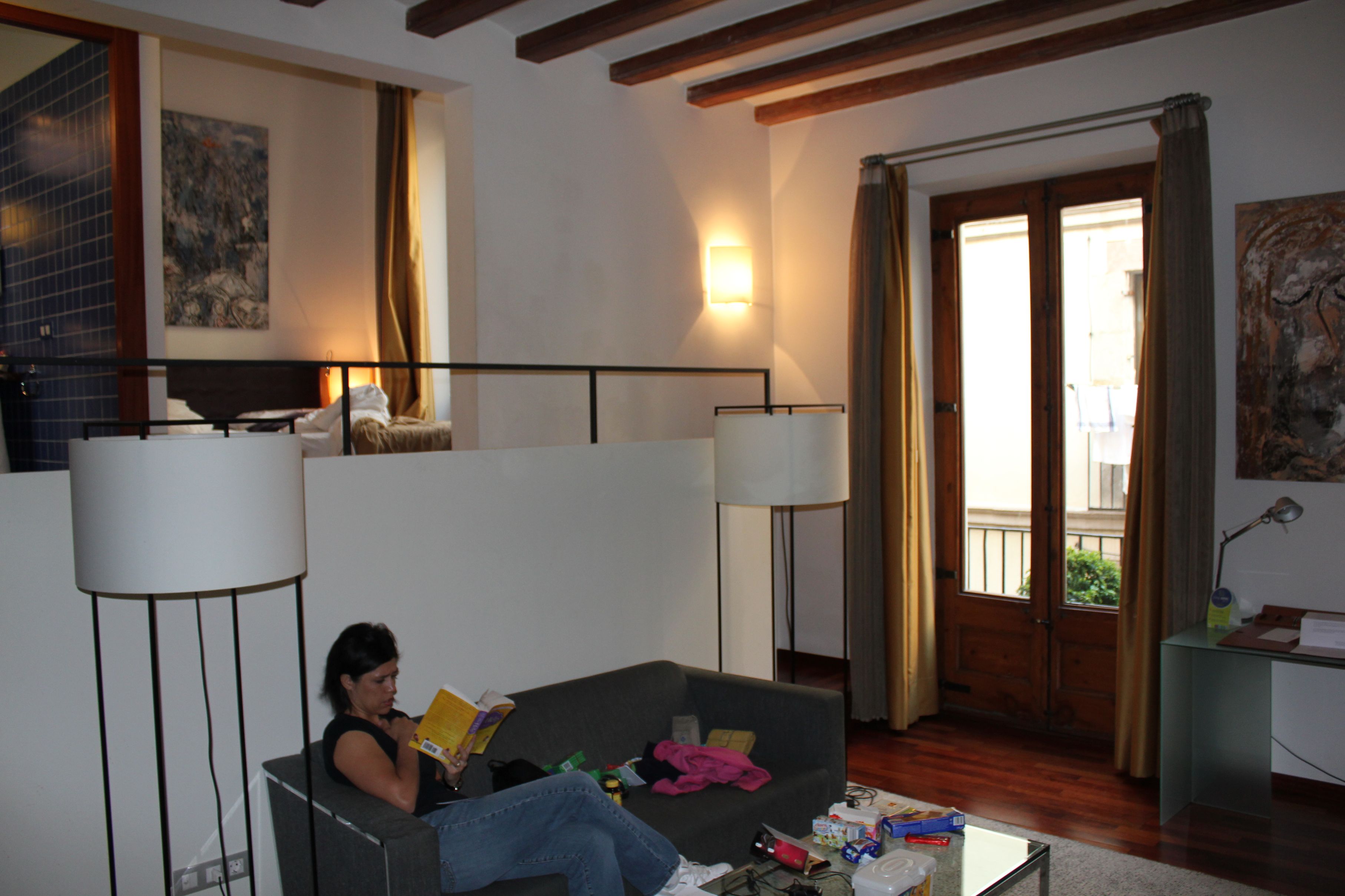 One half of our hotel suite in Barcelona...and Tia reading "The Help"