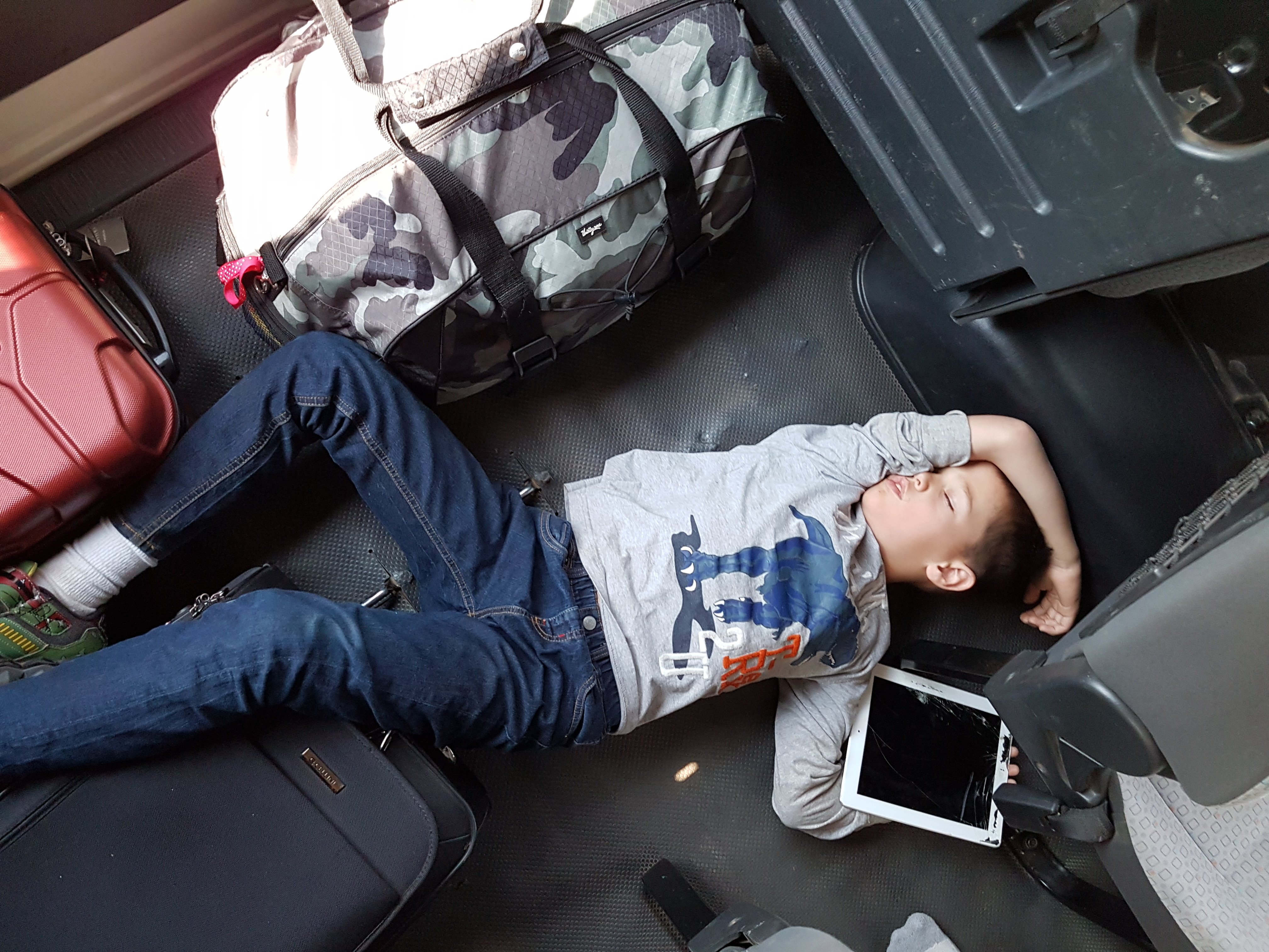 It took us 5 hours to drive to Tuningi Lodge, so Mason found an area to take a nap