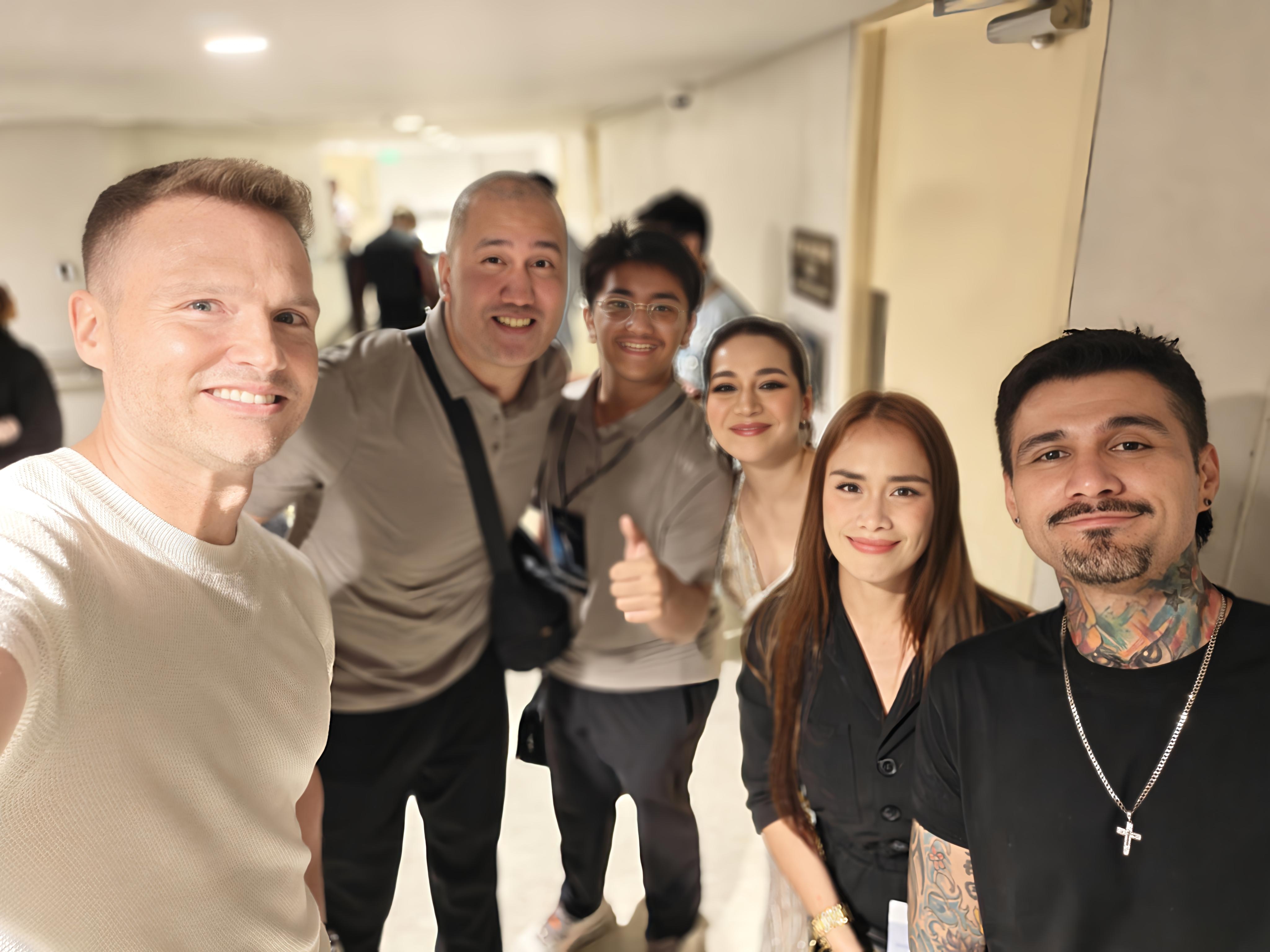 Matt with his friend Rich backstage after listening to his wife Kyla sing in her concert.