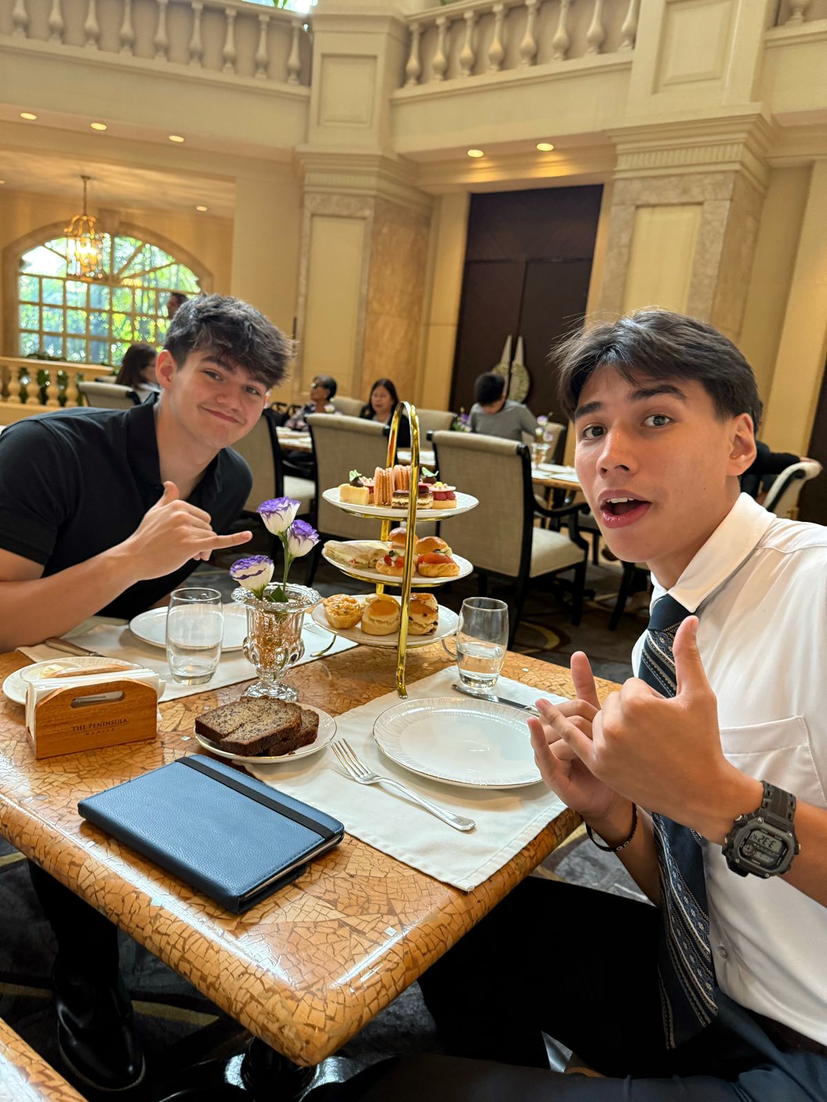 Mason and Zach (newly arrived from his mission) enjoy an elegant afternoon tea together at The Manila Peninsula