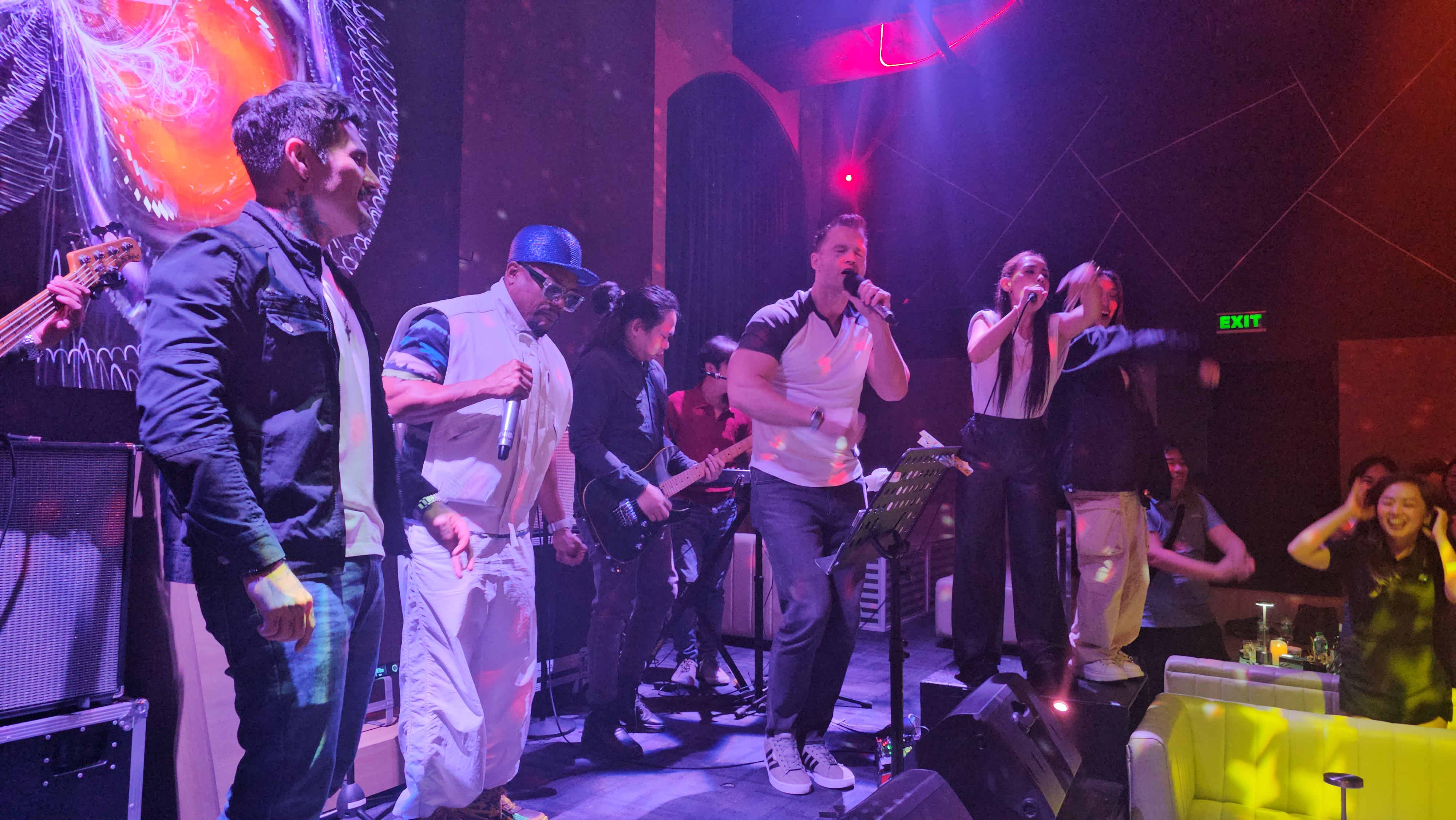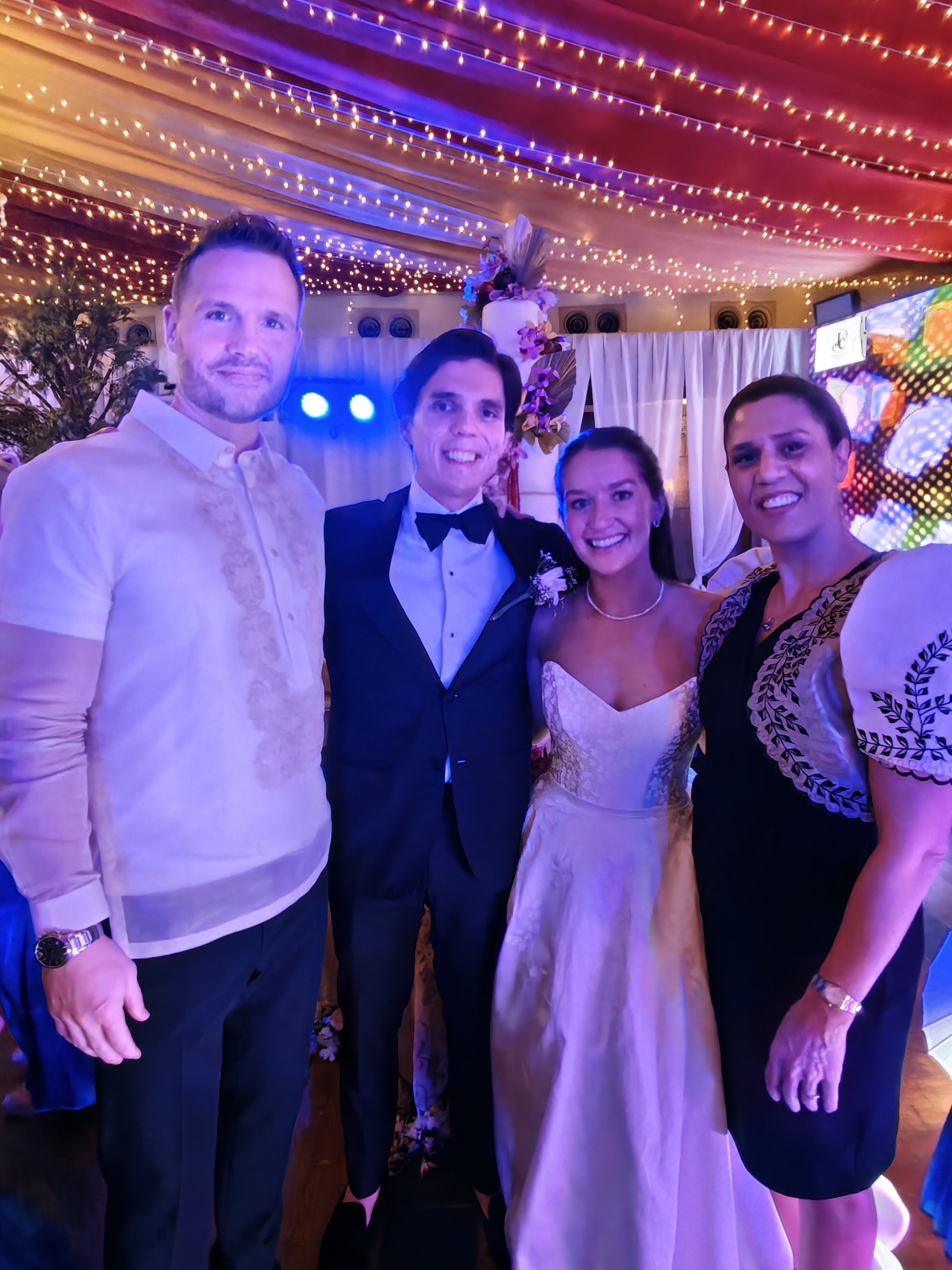 Tia and Matt pose with the bride and groom at their festive wedding reception at Manila Polo Club