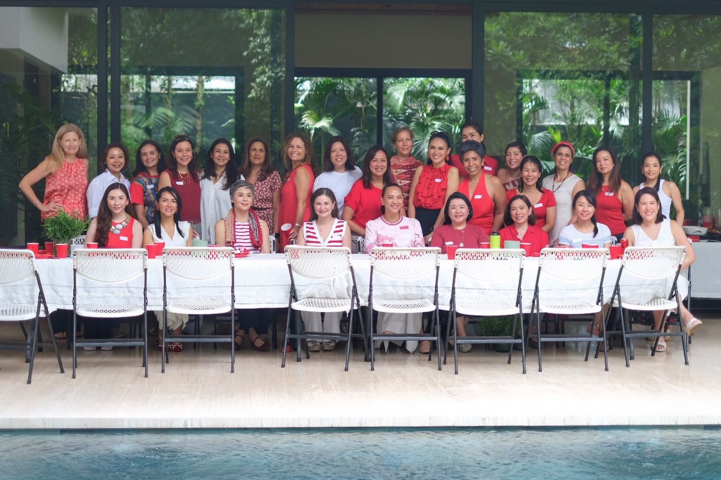 tags: group women pool party gathering red white tia tina jeanette audrey amanda irene lisa michelle cherie margaret dawn giselle gie kathryn trina