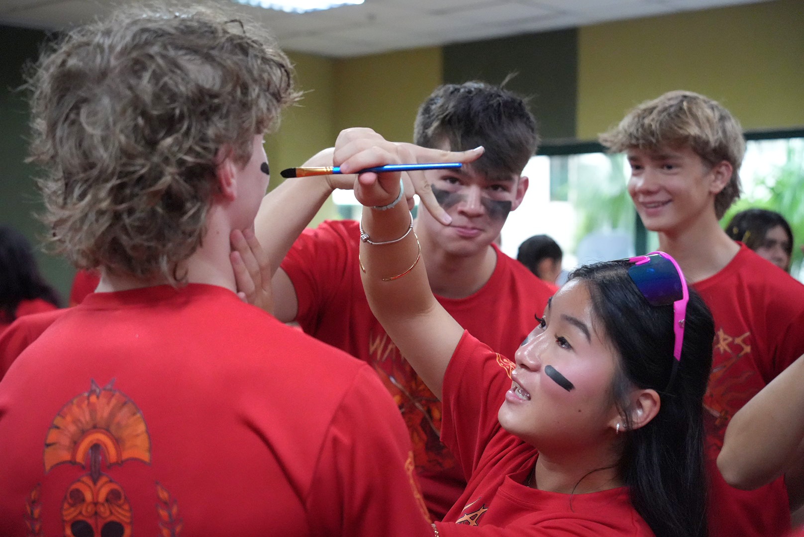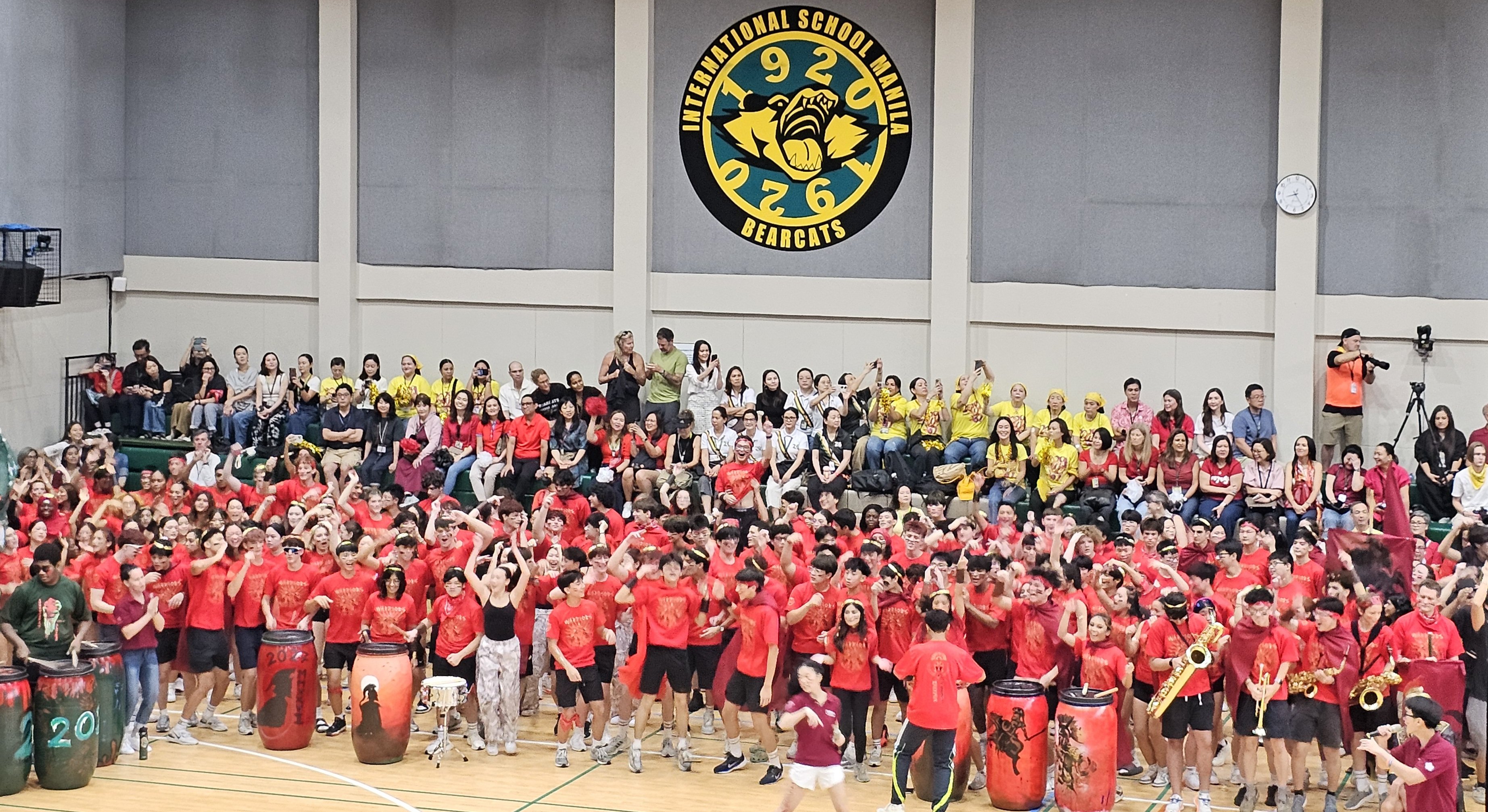 Grade 11 students in red shirts are lively for Battle of the Bearcat at International School Manila