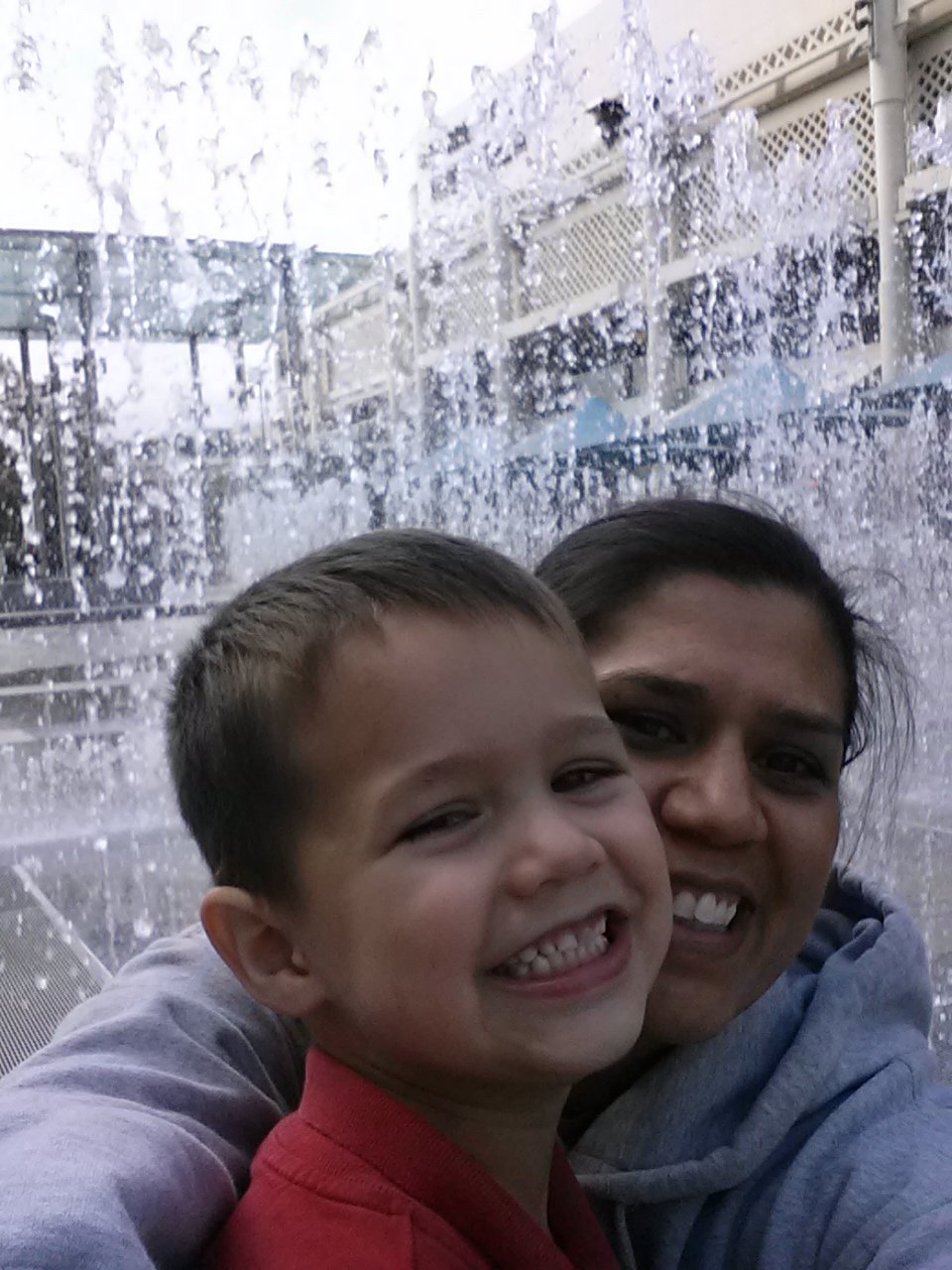 Kalani enjoying her hot chocolate and Mason enjoying his ice cream