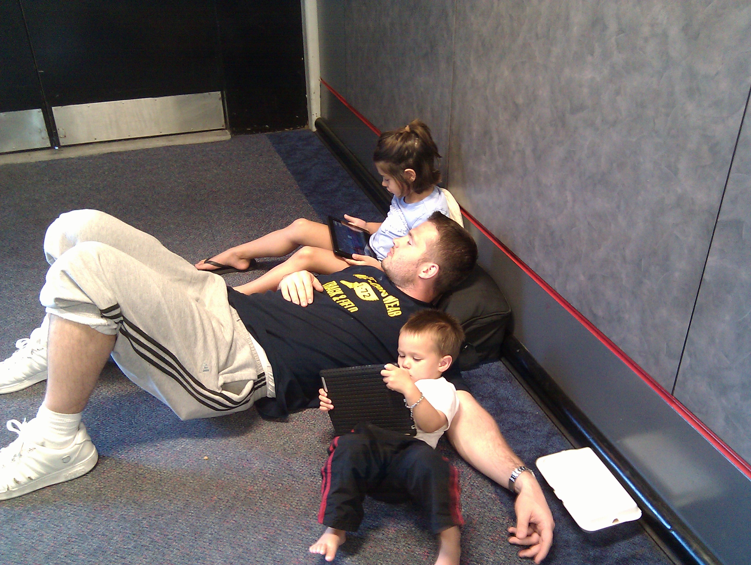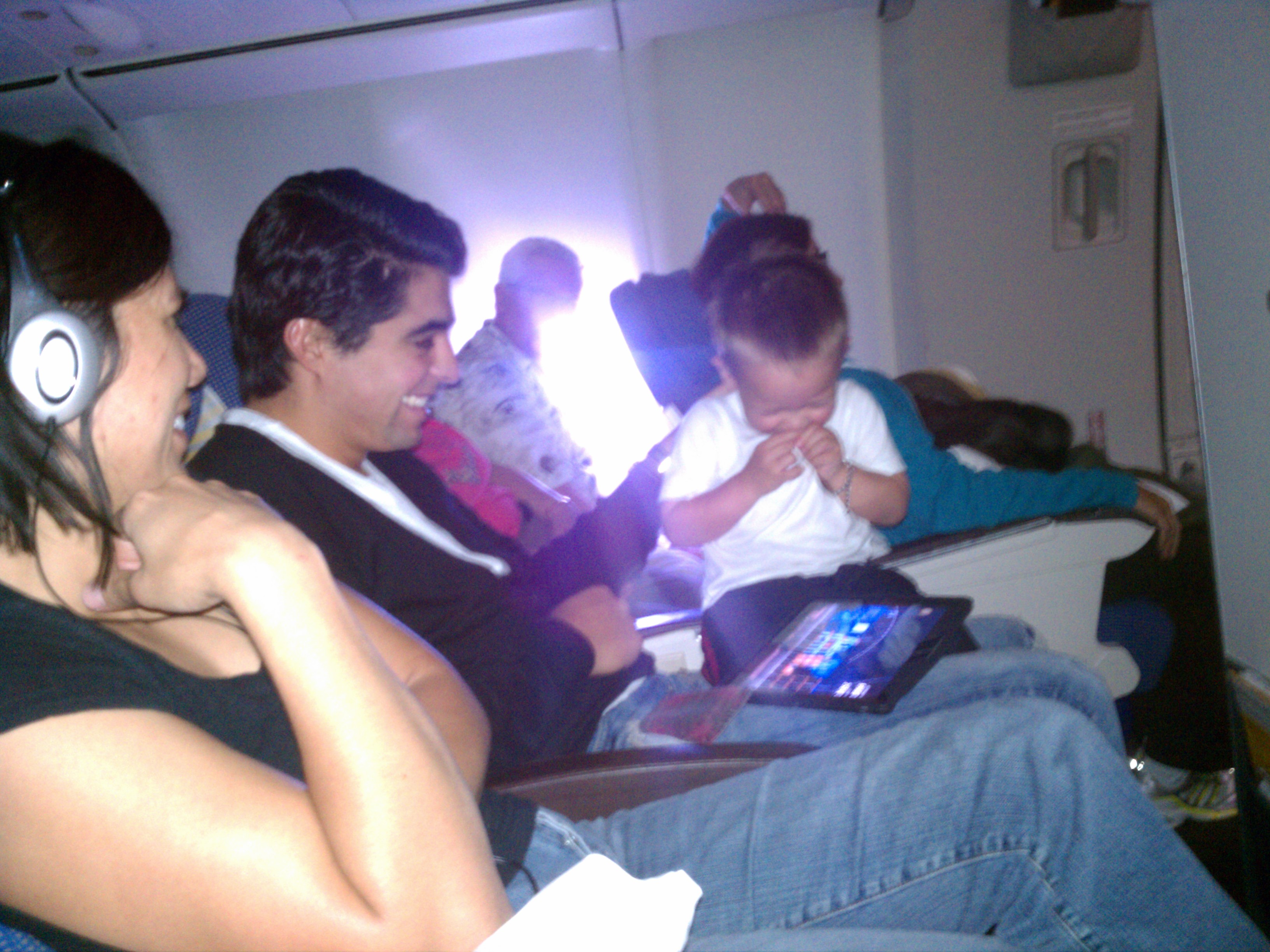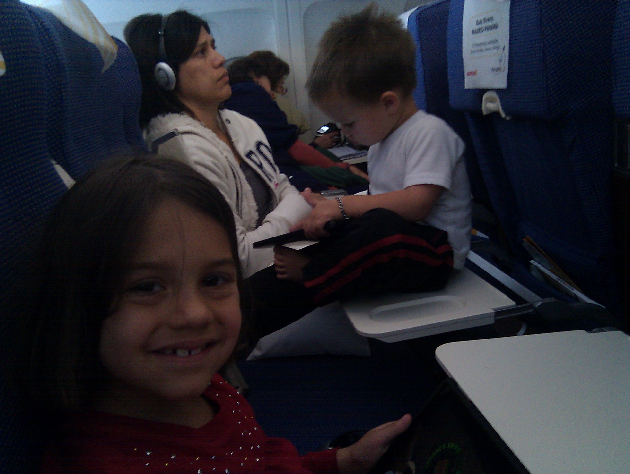Kalani on the tablet, Mason on the iPad and Tia watching the movie...good way to kill some time on the plane