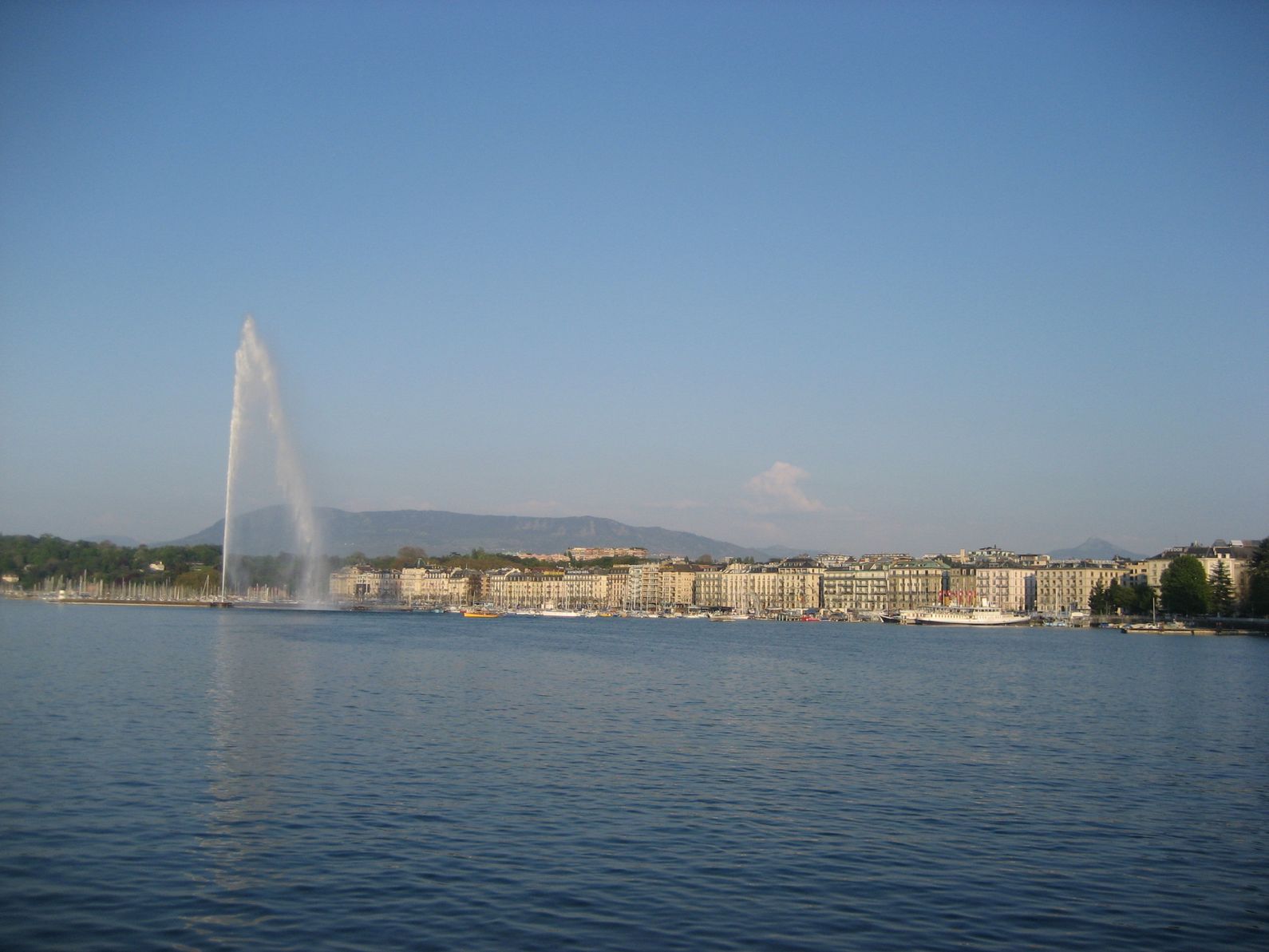 The Jet d'Eau (water jet) fountain in Geneva. Shoots up 459 feet and is a famous landmark