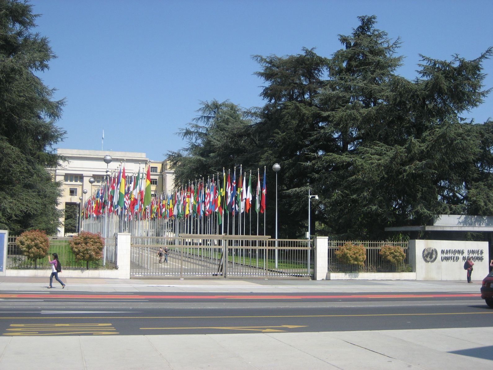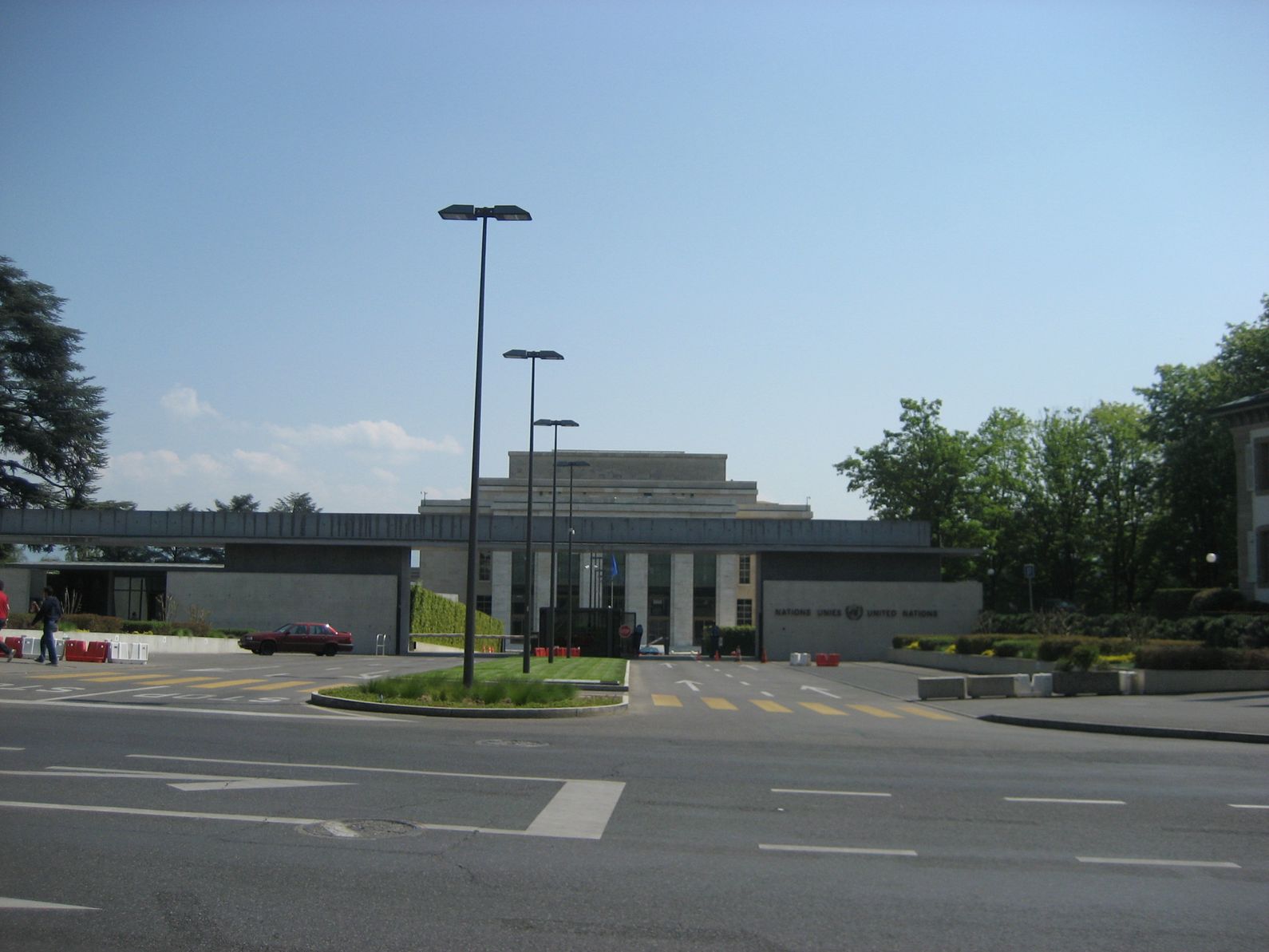 View of the entrance area of the United Nations...as seen from the Red Cross museum