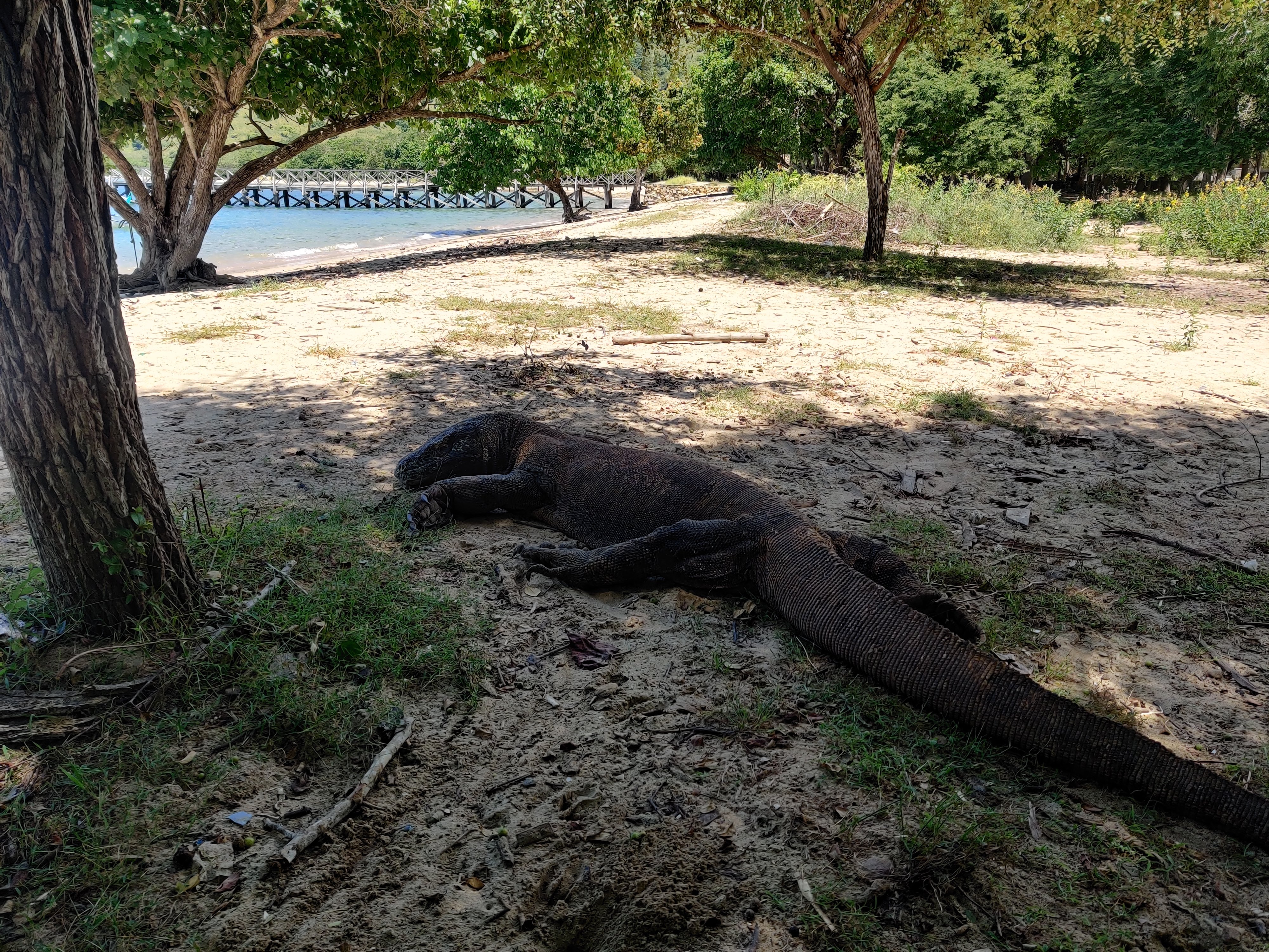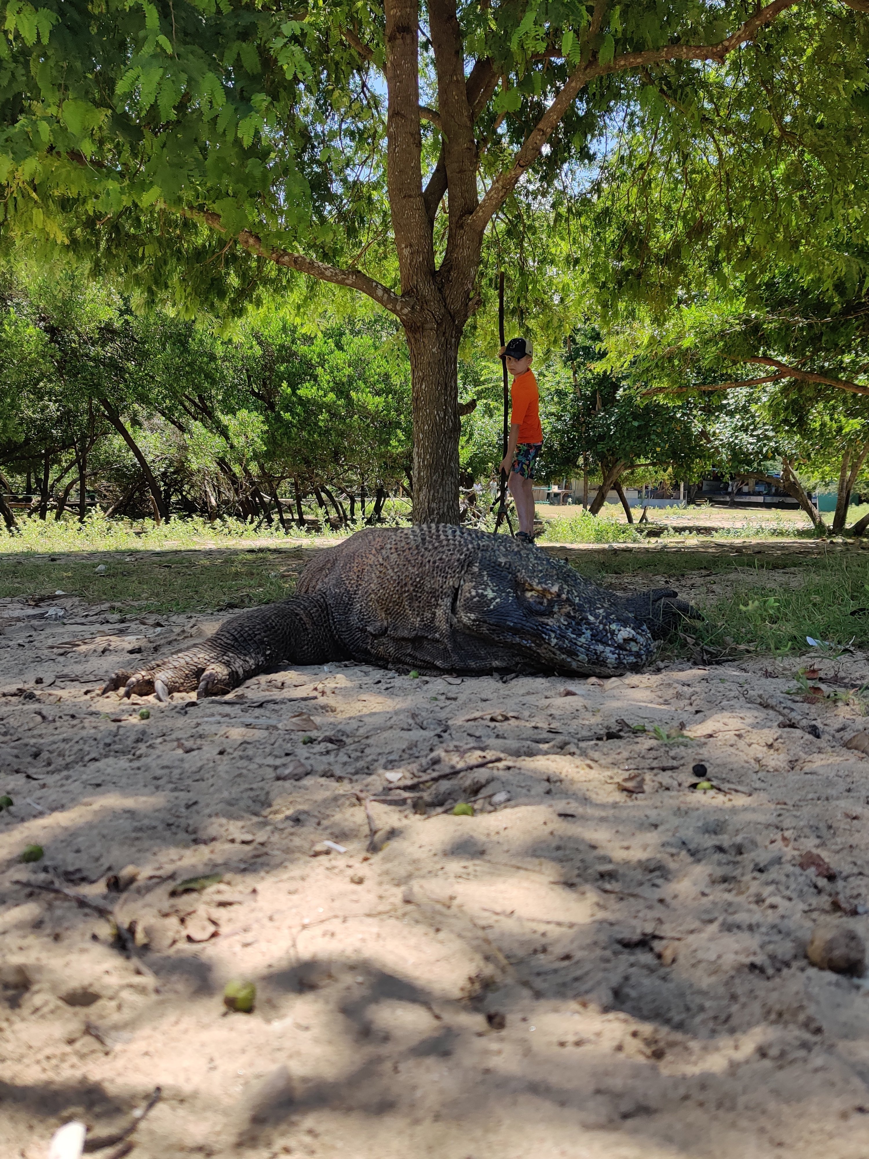 A baby Komodo Dragon came down from the trees in the middle of the day
