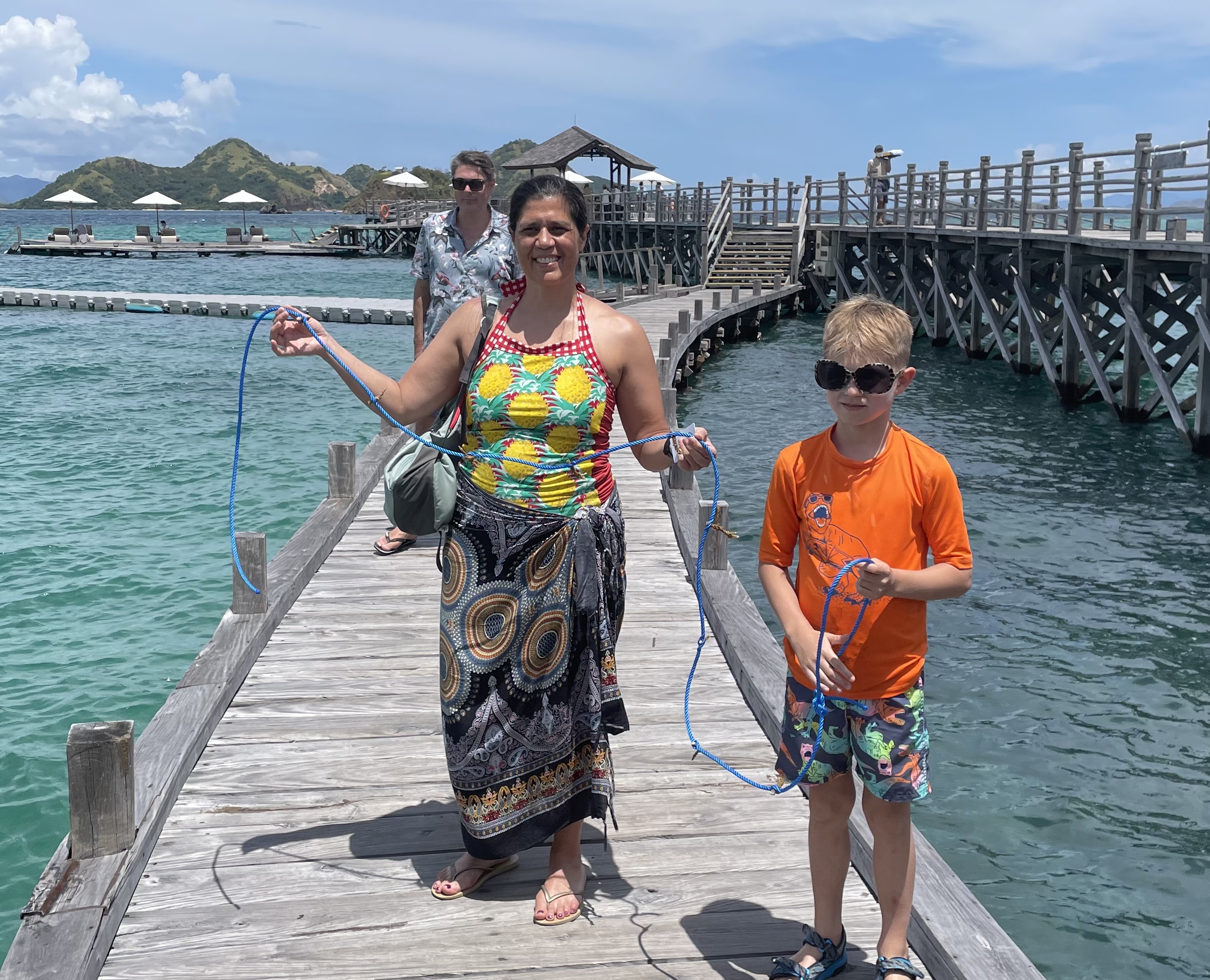 Blake learning how to be a ranger on our Komodo Dragon Hunt