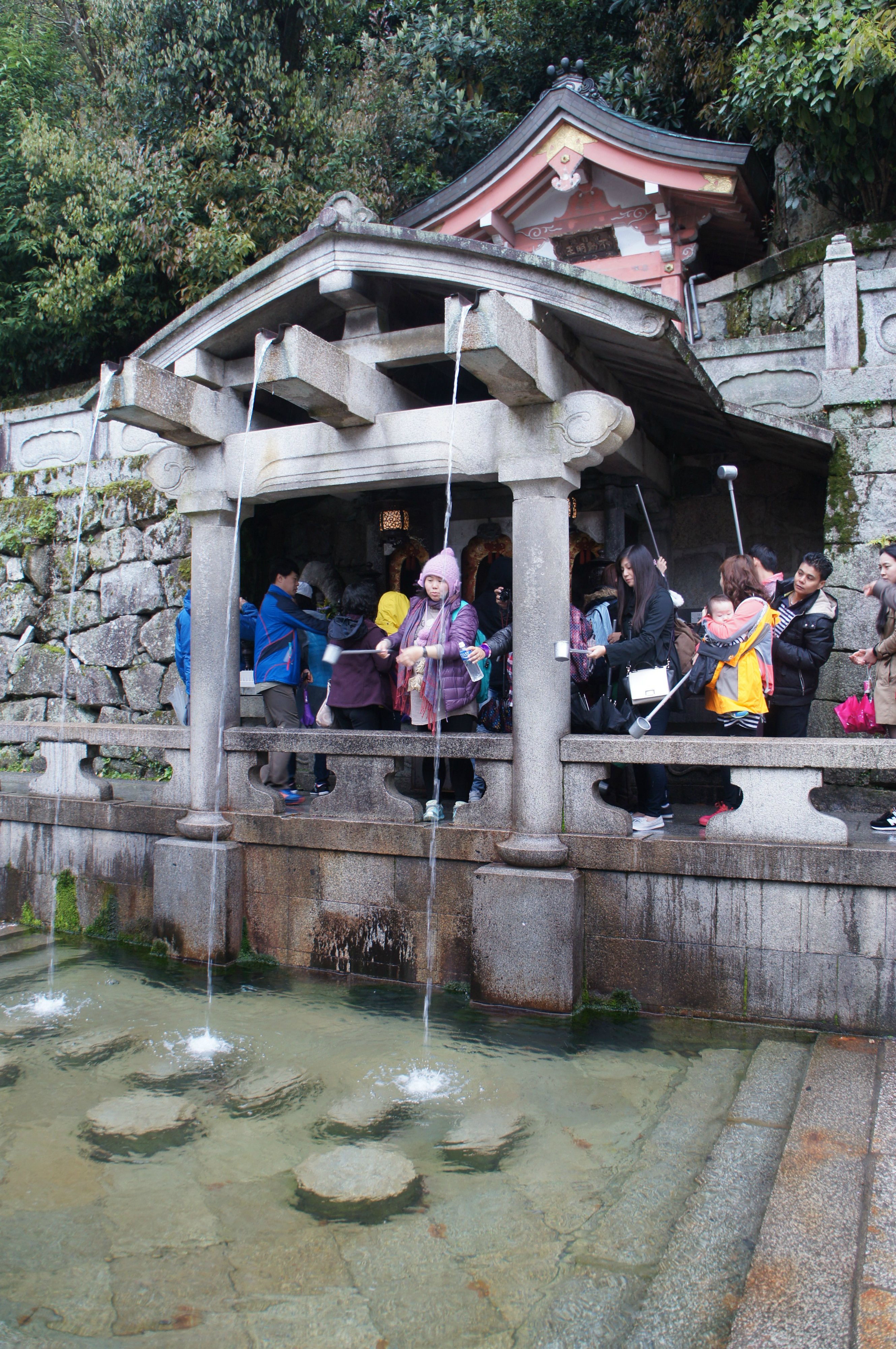 Praying and drinking water for luck or health at Kiyomizu-dera Temple
