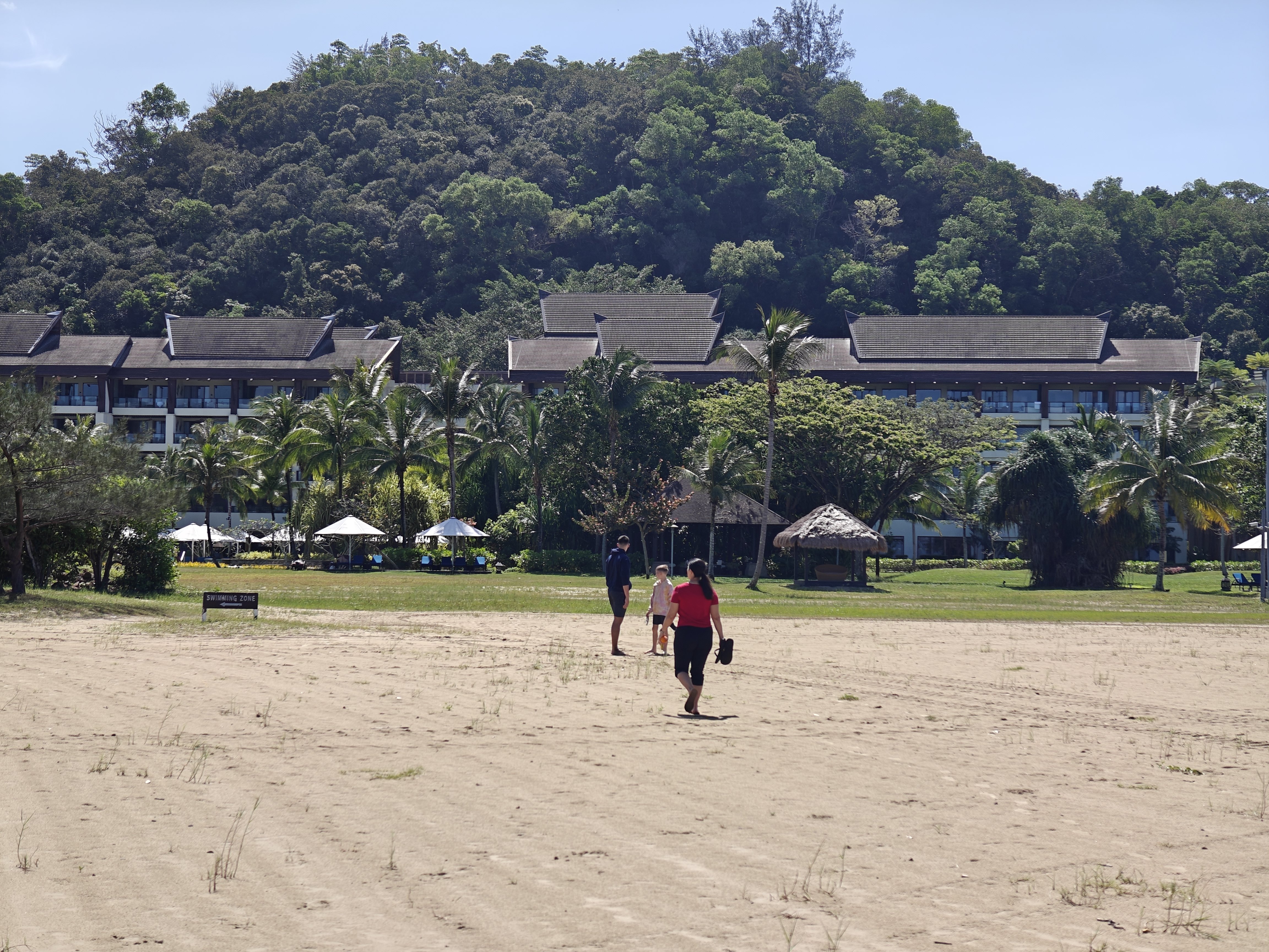 Walking to the hotel after exploring the beach area of the Shangri-la in Kota Kintabalu