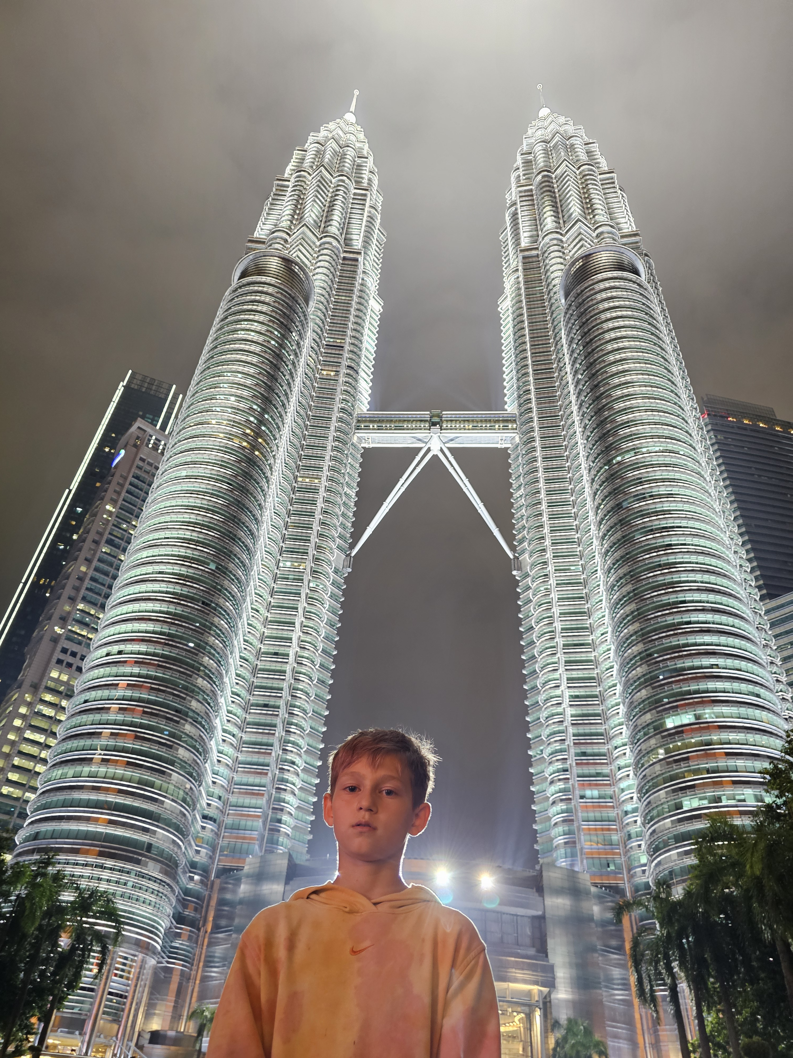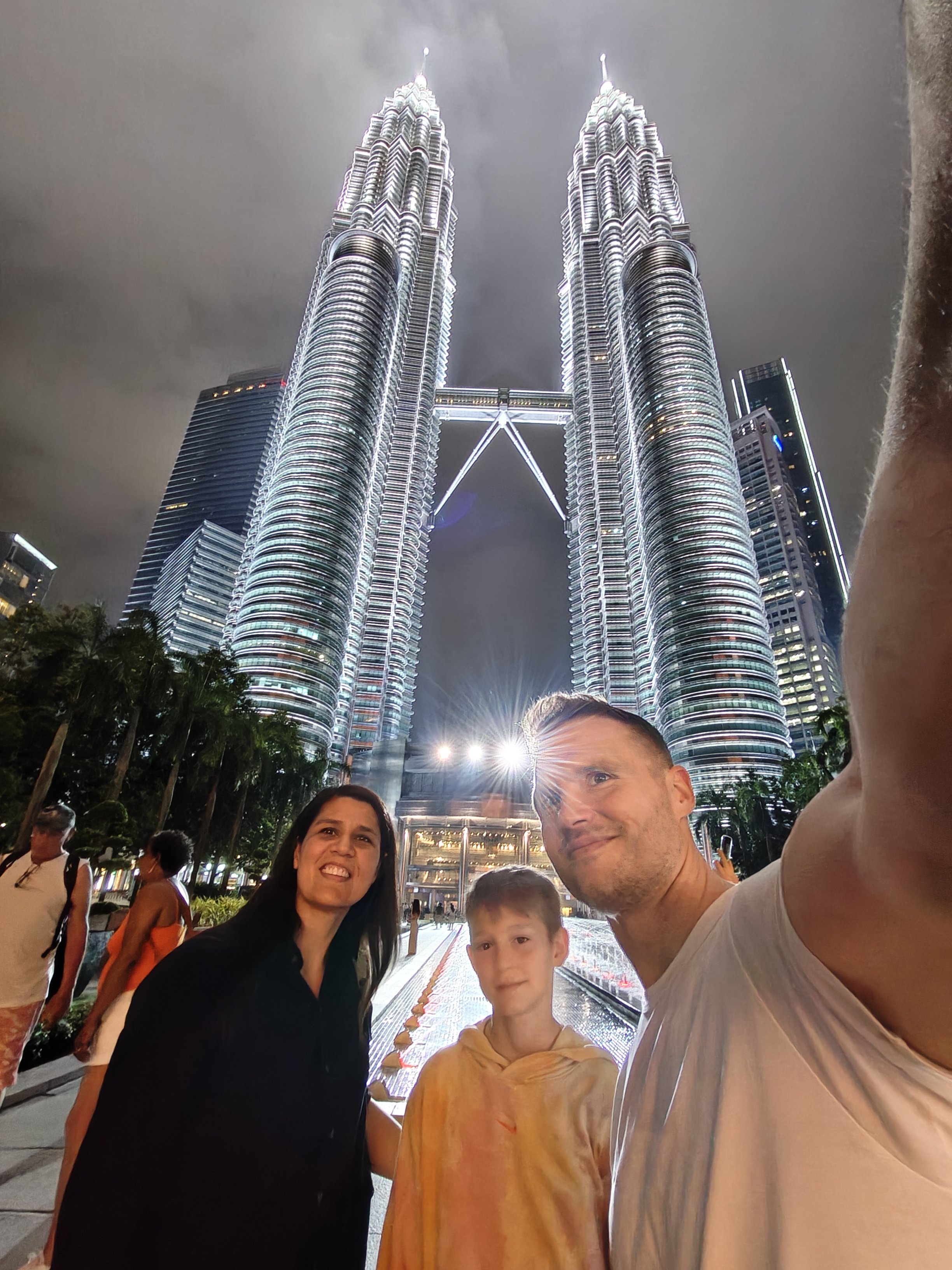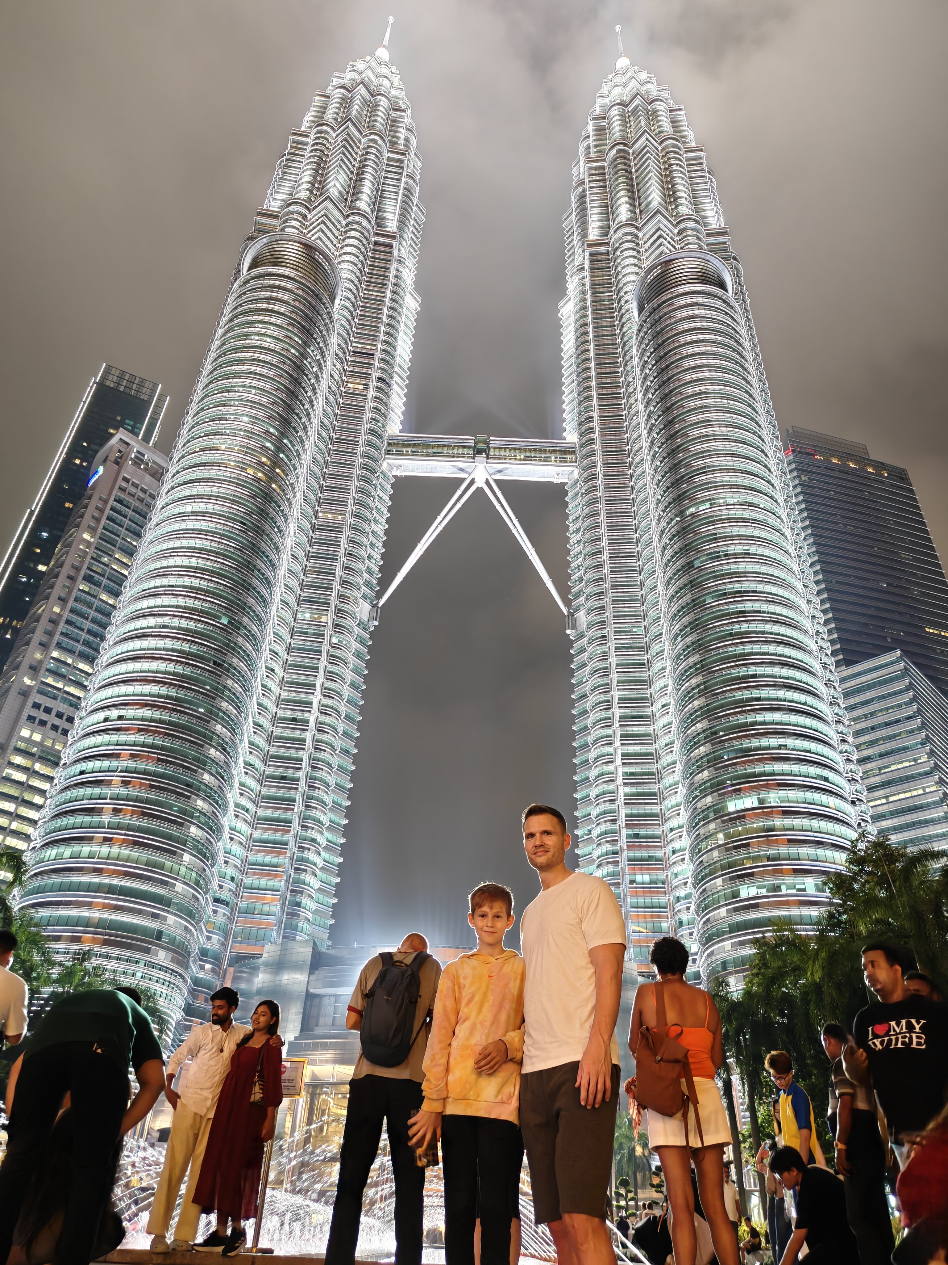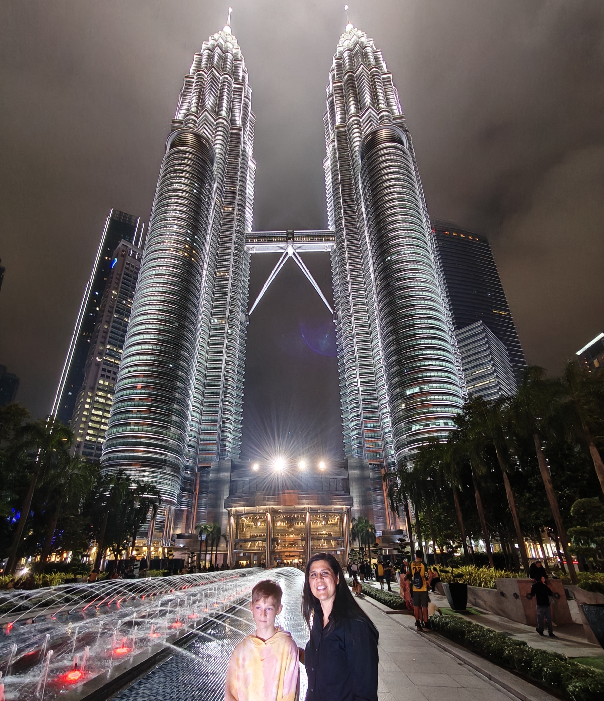 Blake and Tia enjoying a night view at the Petronas Towers.