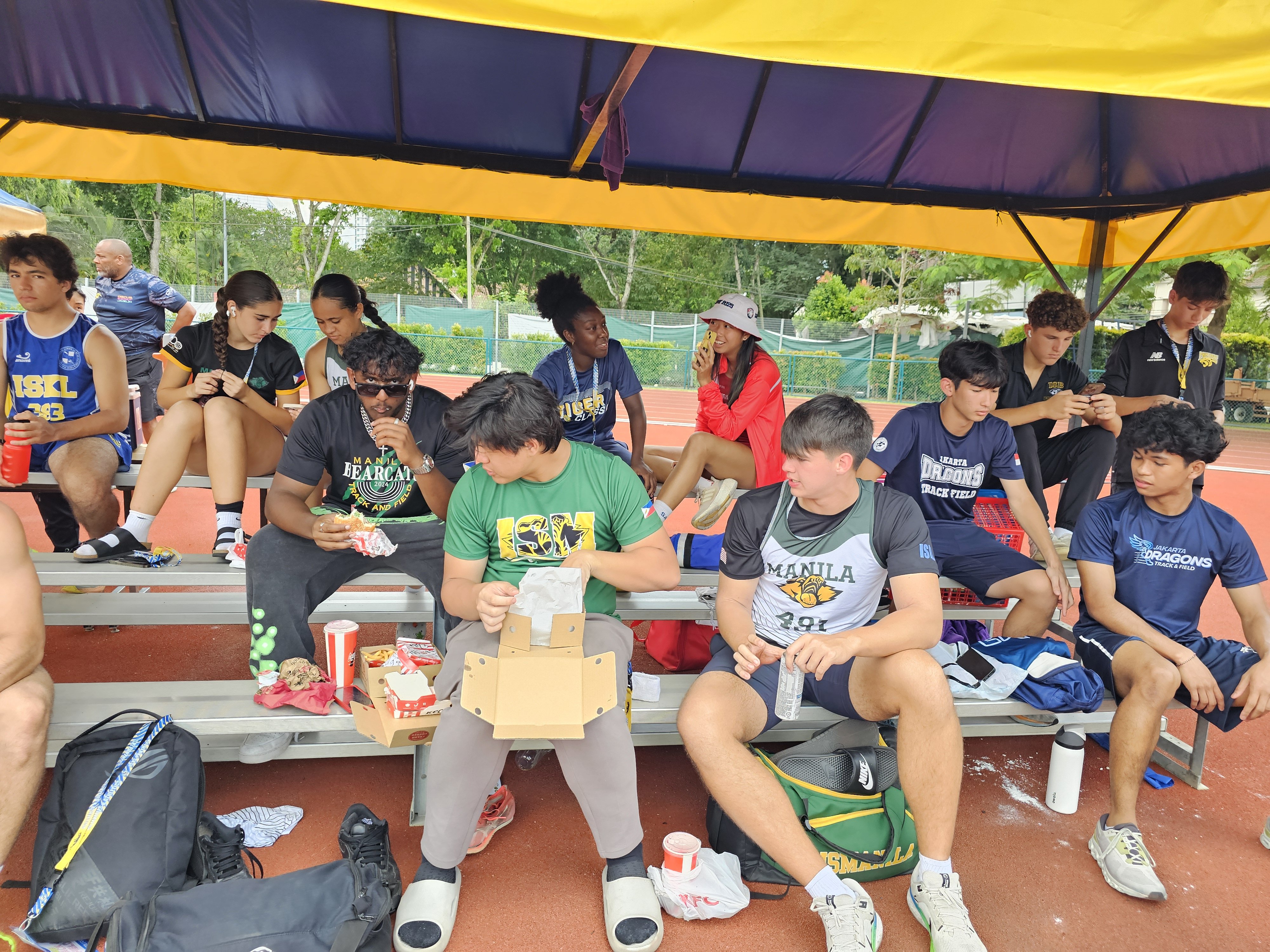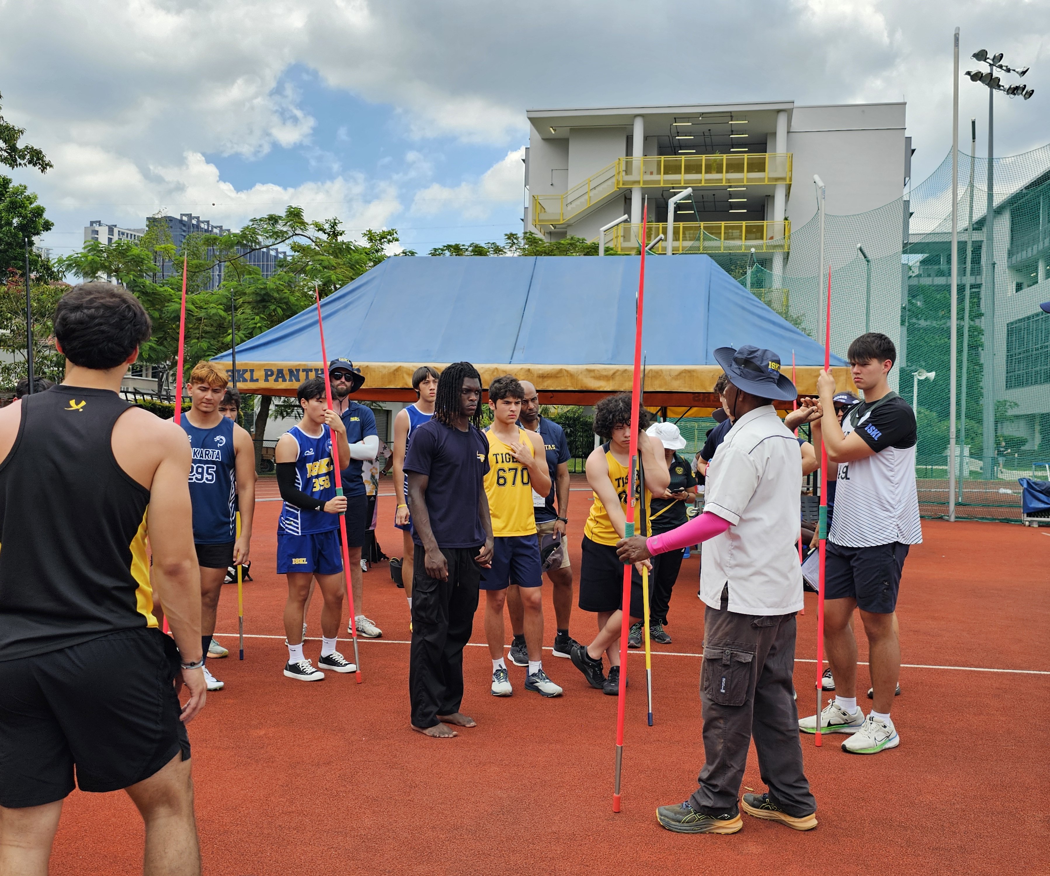 IASAS Javelin throwers gather for instruction on the field at the IASAS iSKL meet.