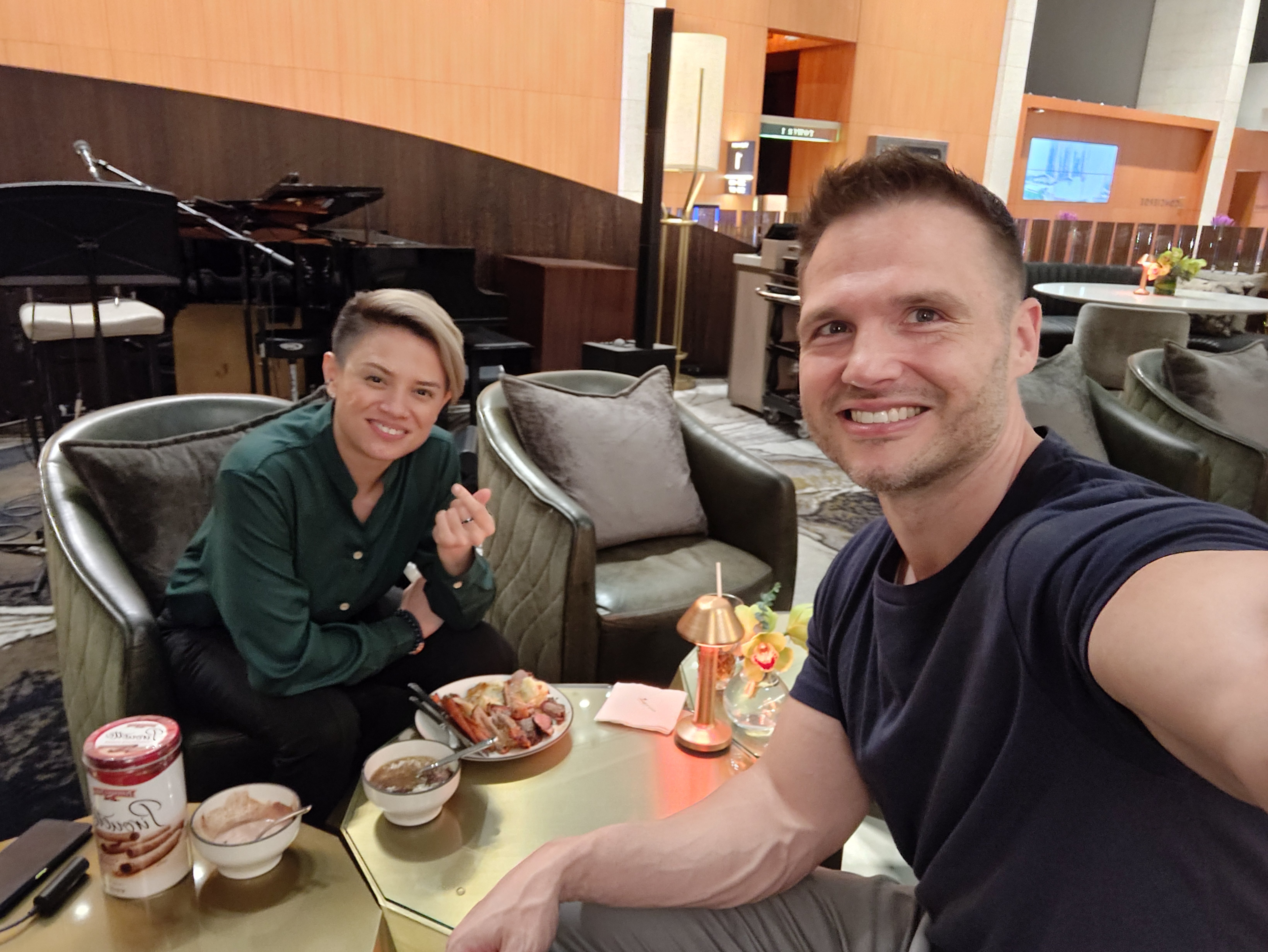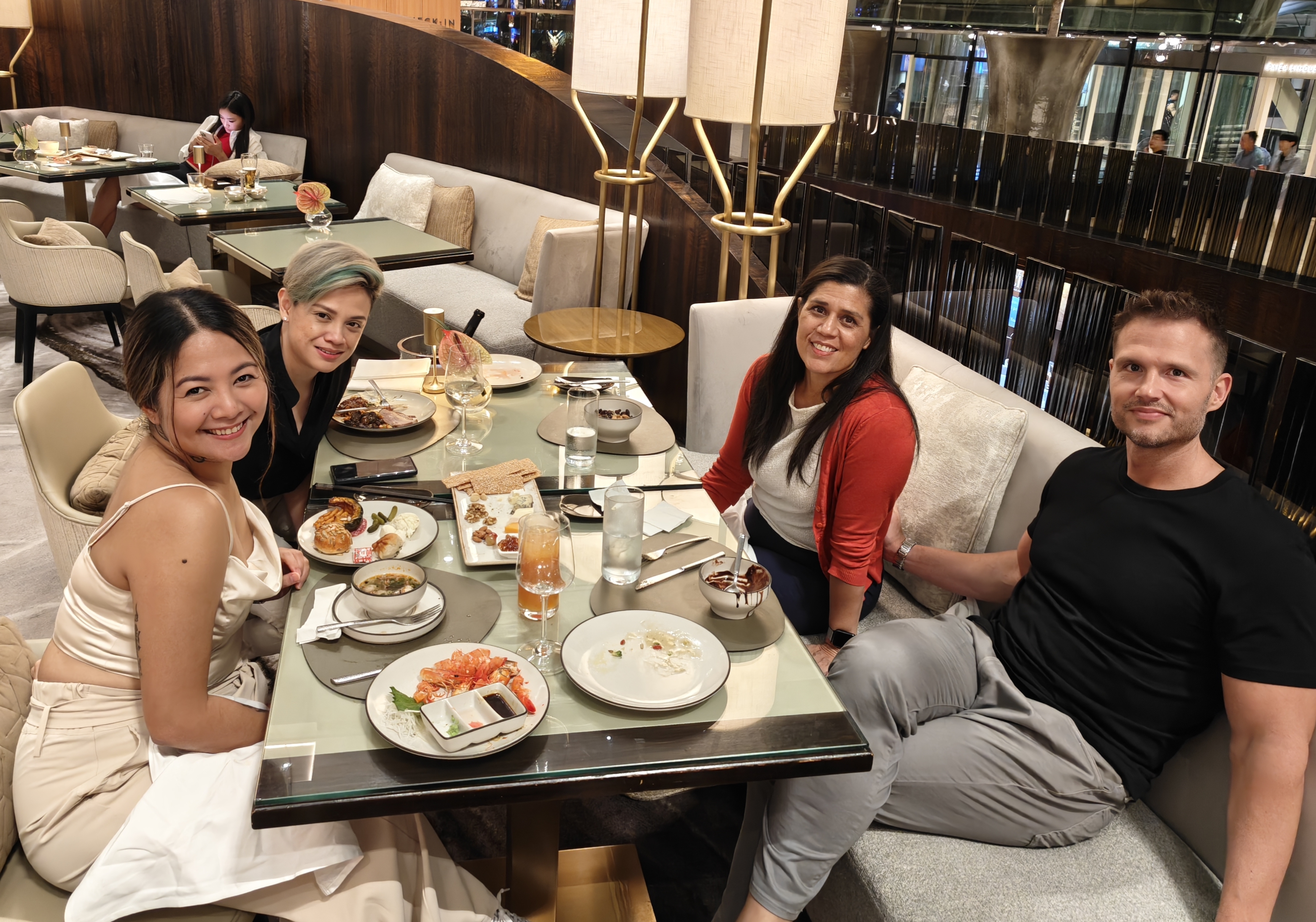 Matt, Tia, Princess, and Charmaine enjoy a delicious dinner together at Marina Bay Sands between Charmaine's singing sets