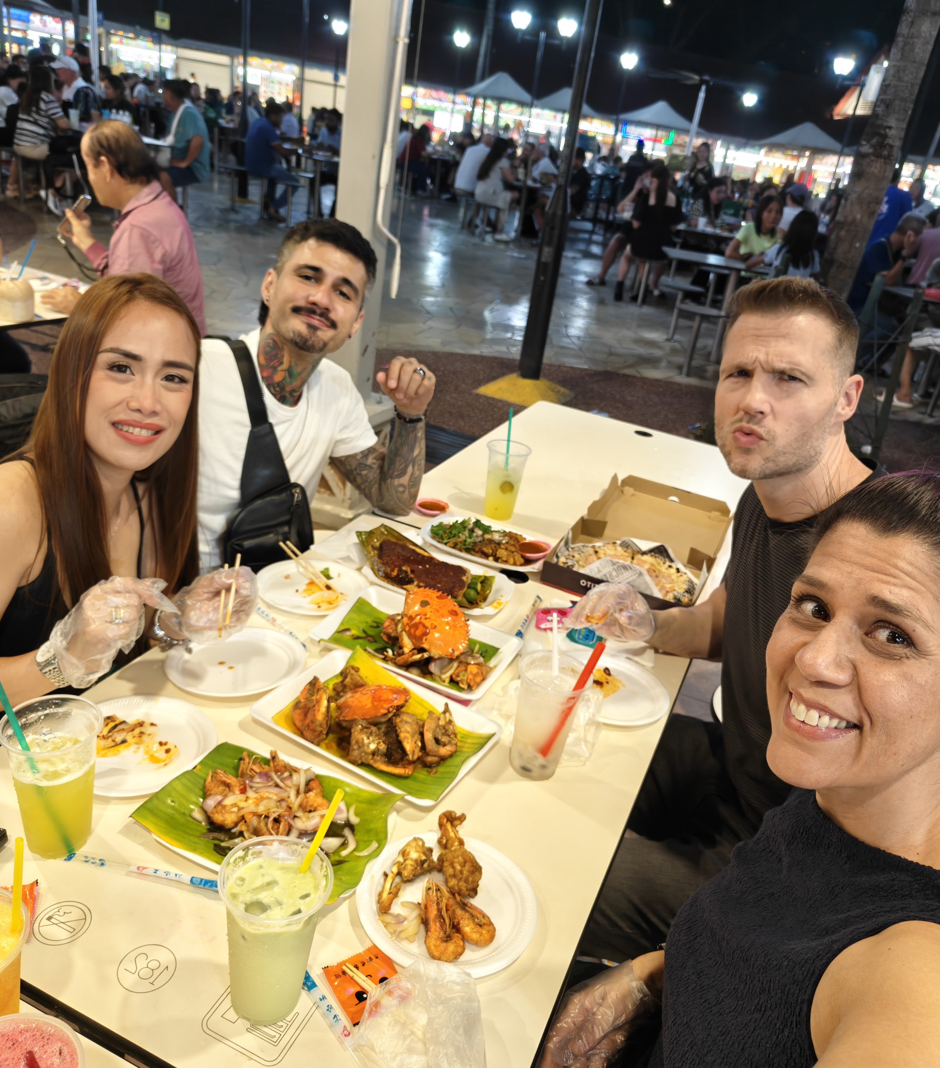 Team Holmley enjoying a delicious seafood dinner together at Newton Food Center in Singapore