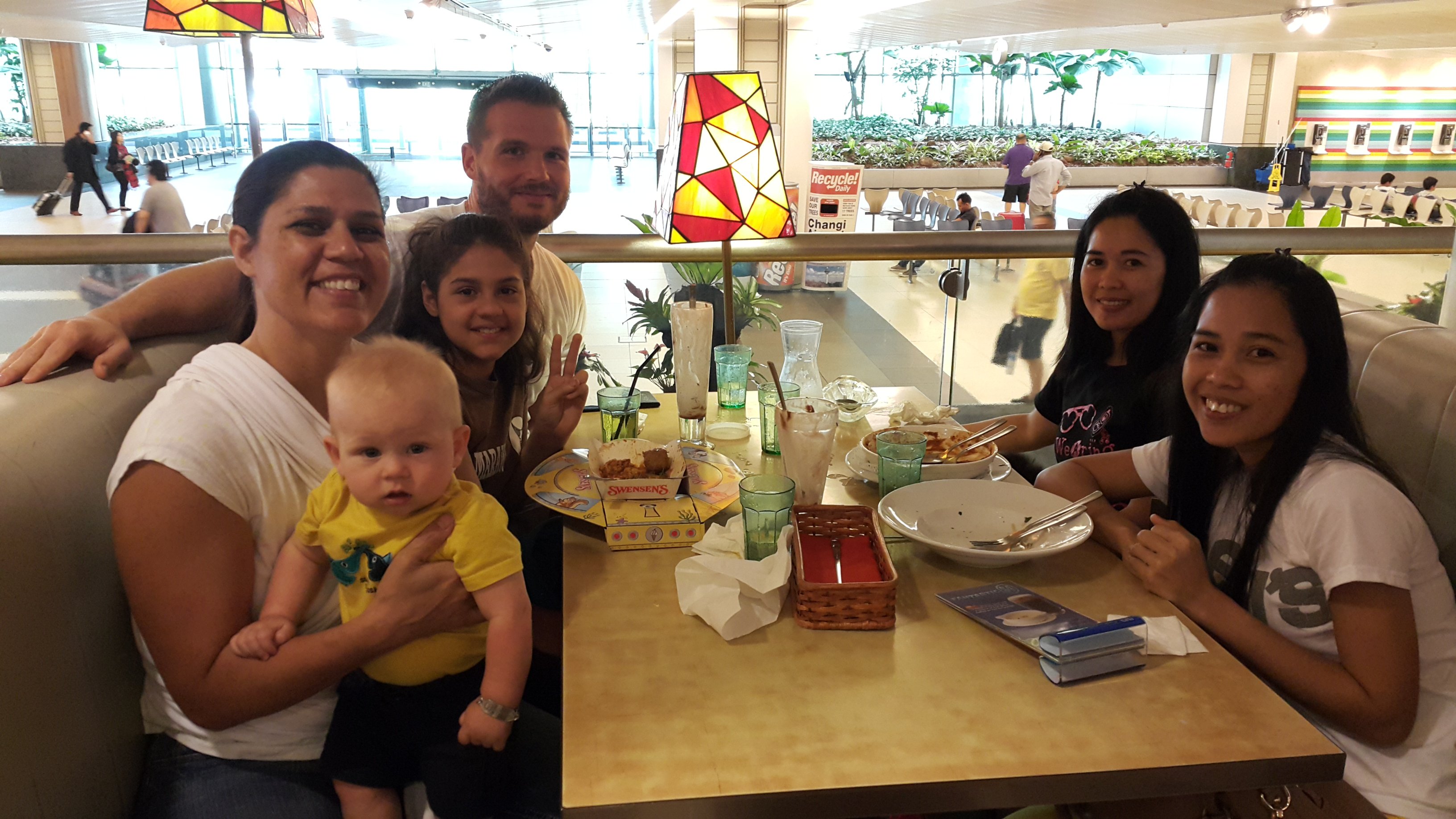 We all had a nice visit at a restaurant in the airport before boarding the plane