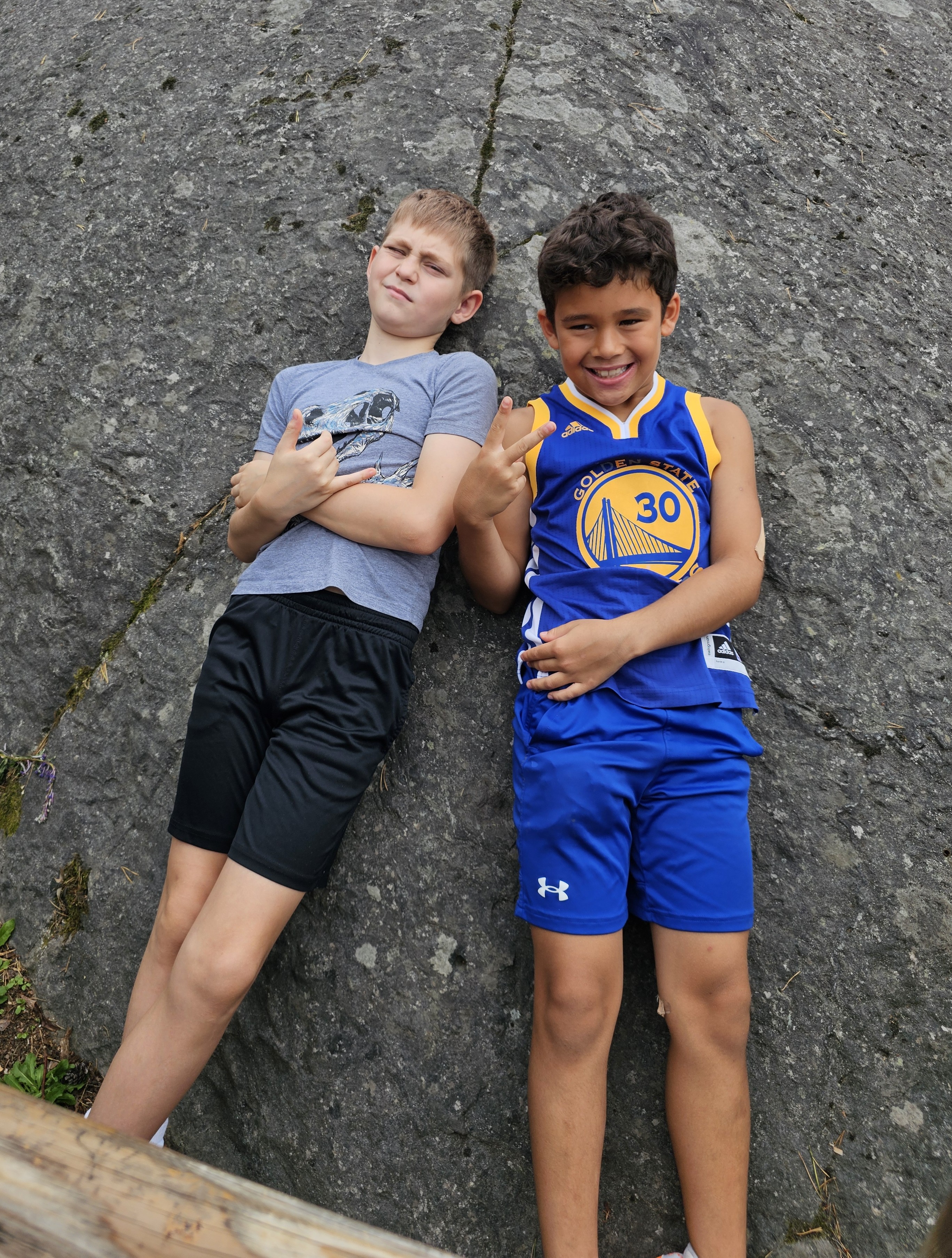 The boys found a nice big rock to relax at while waiting in line for a roller coaster ride at Kolmarden in Sweden.