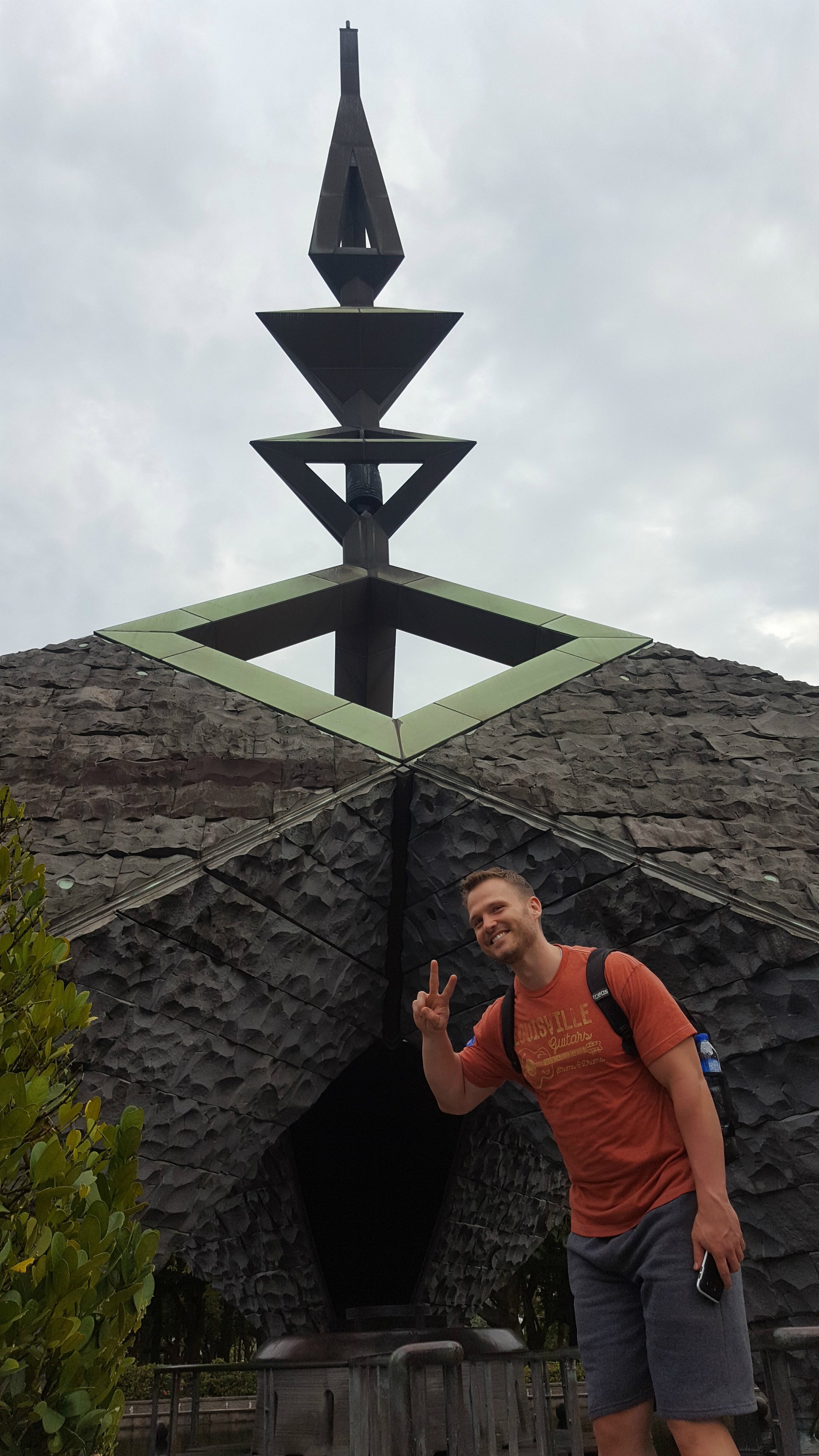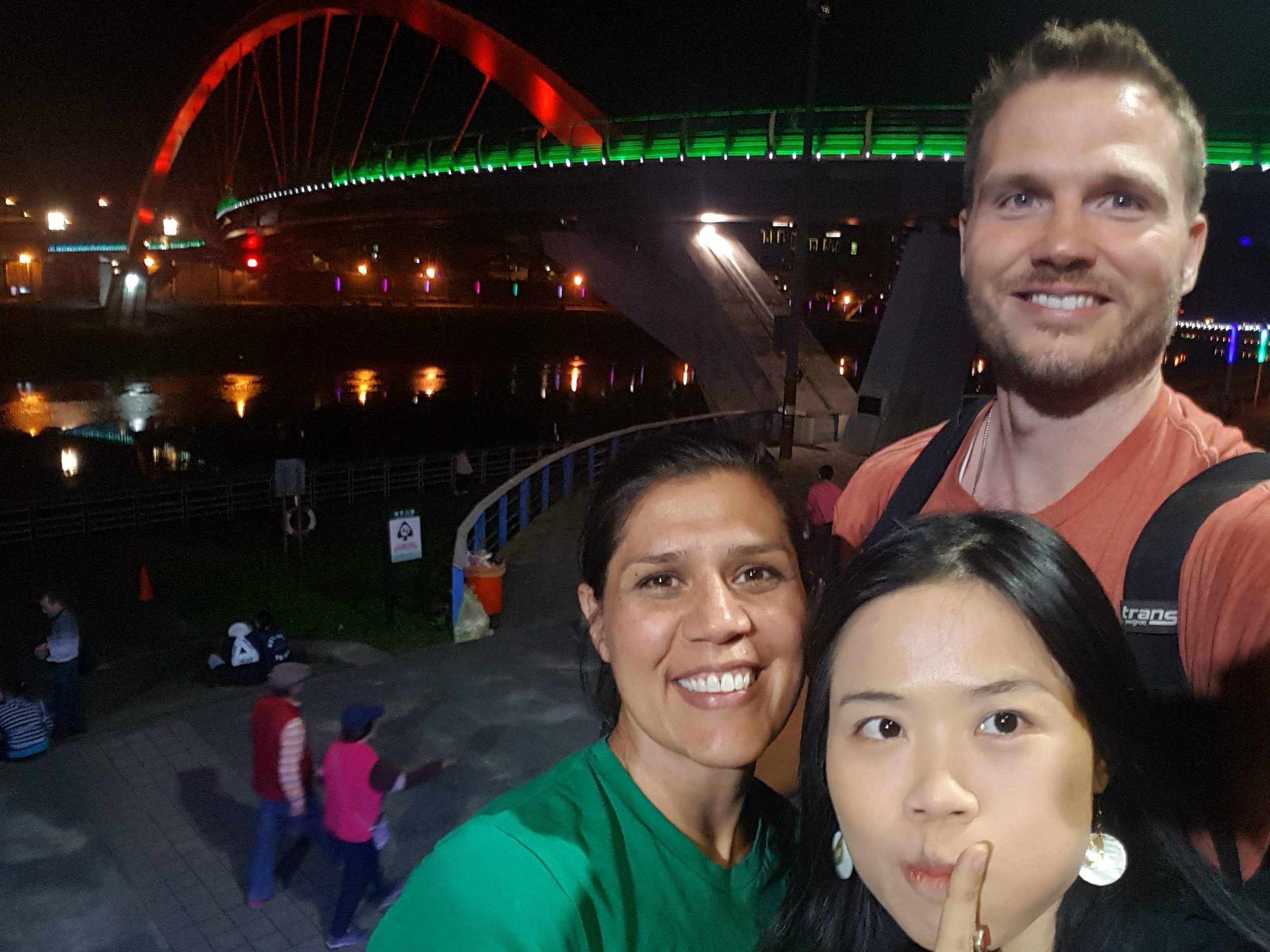 Our tour guide Nancy at the Rainbow Bridge in Taipei, Taiwan