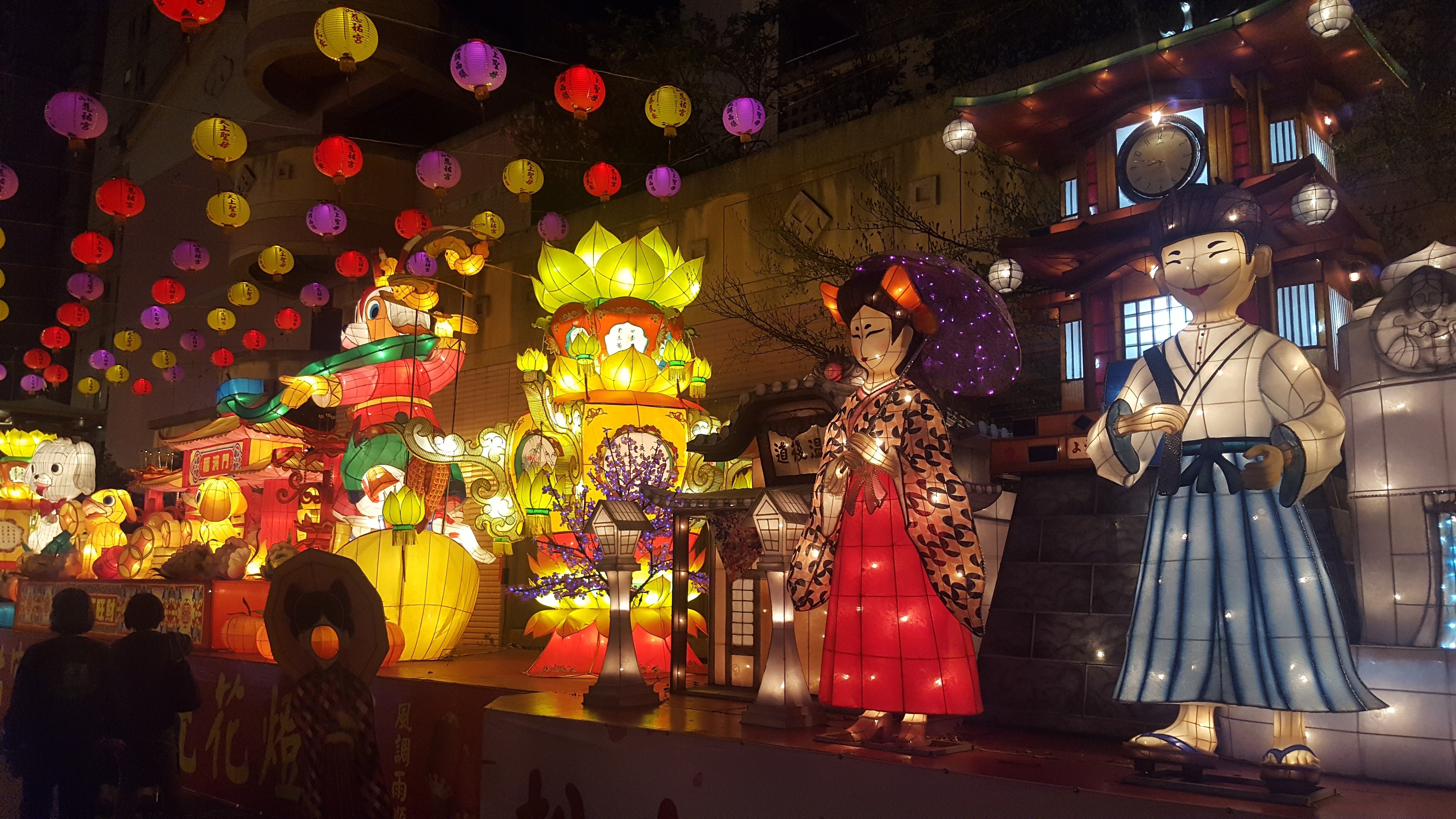 Lanterns on display outside Songshan Ciyou Temple in Taipei, Taiwan