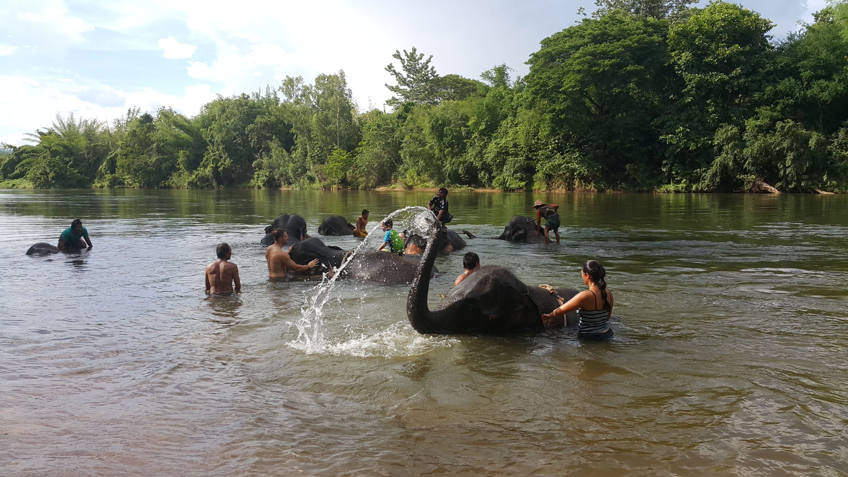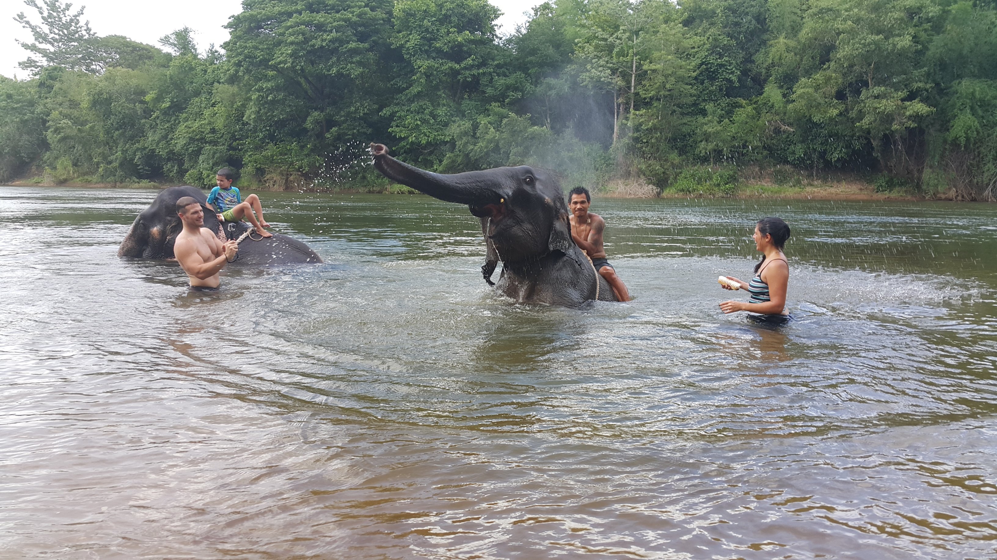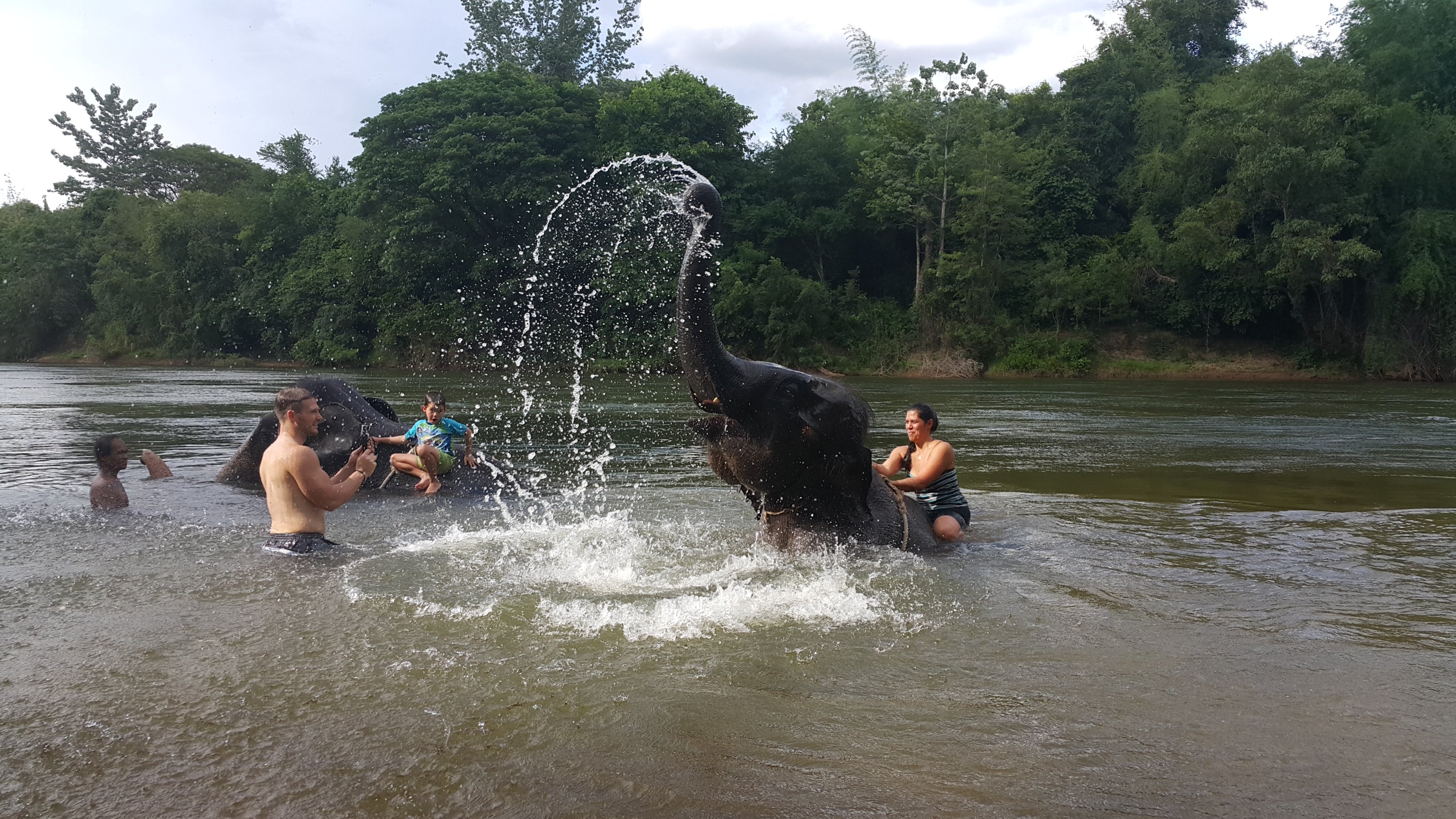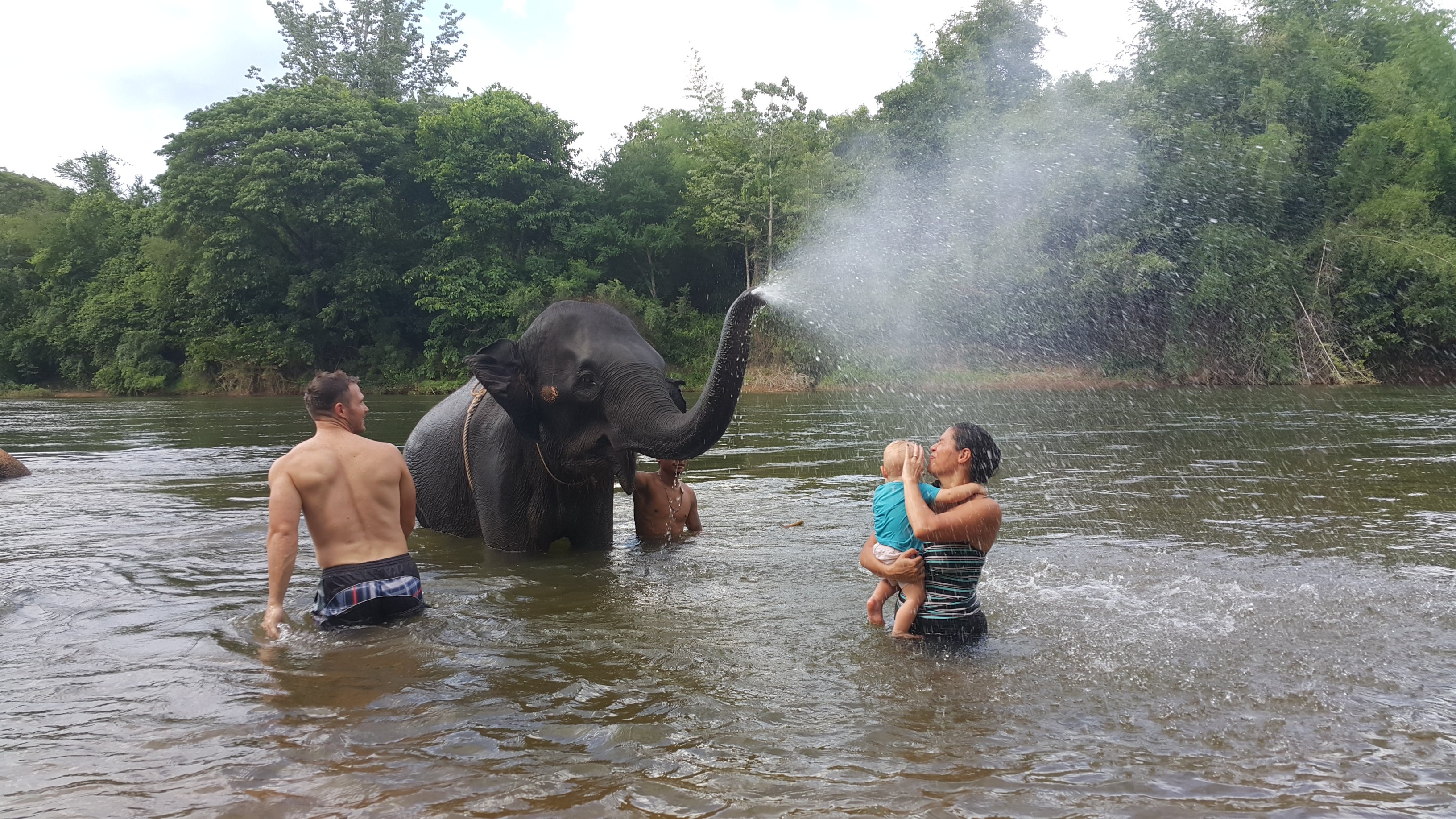 The elephant is giving us a bath