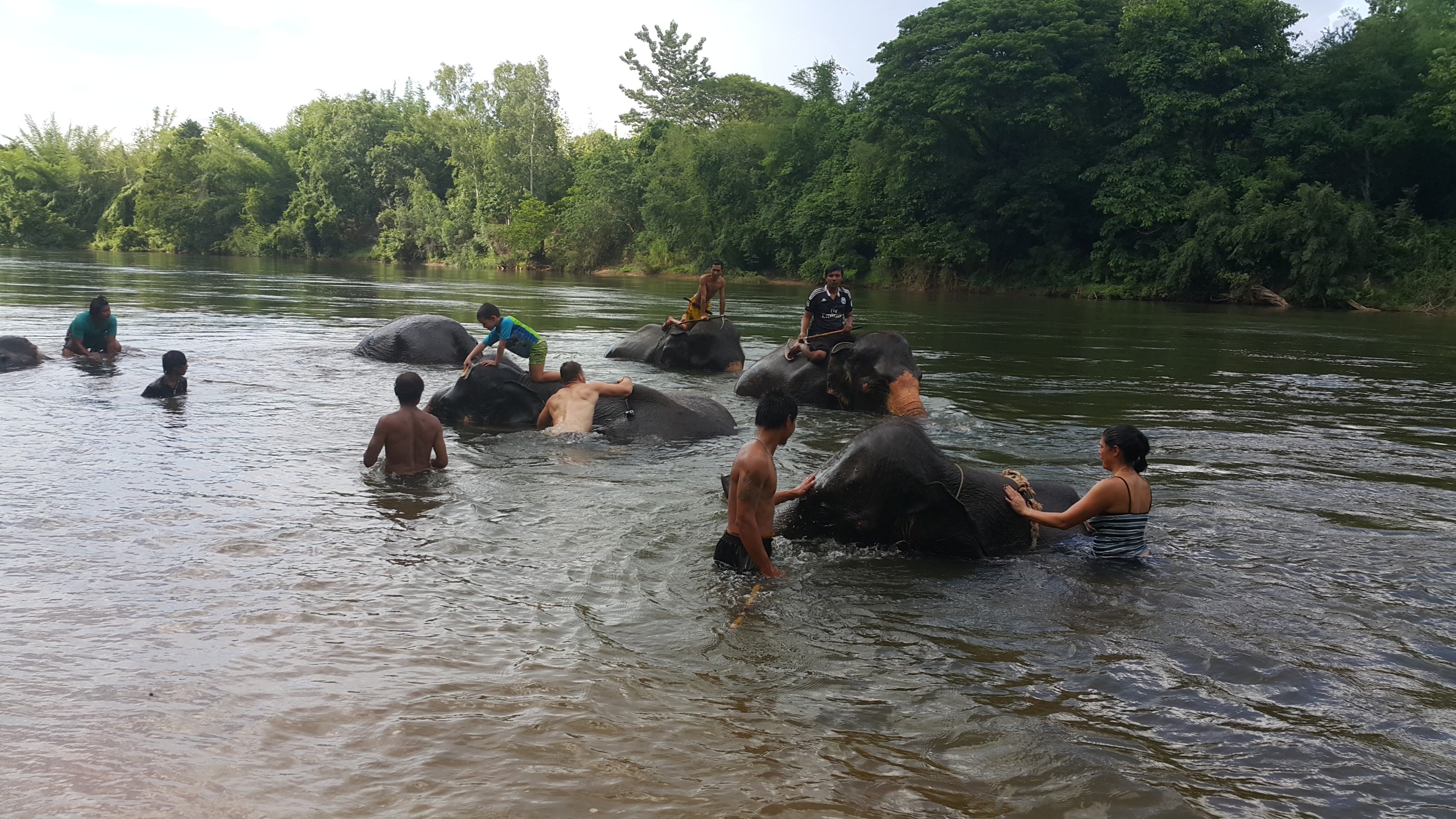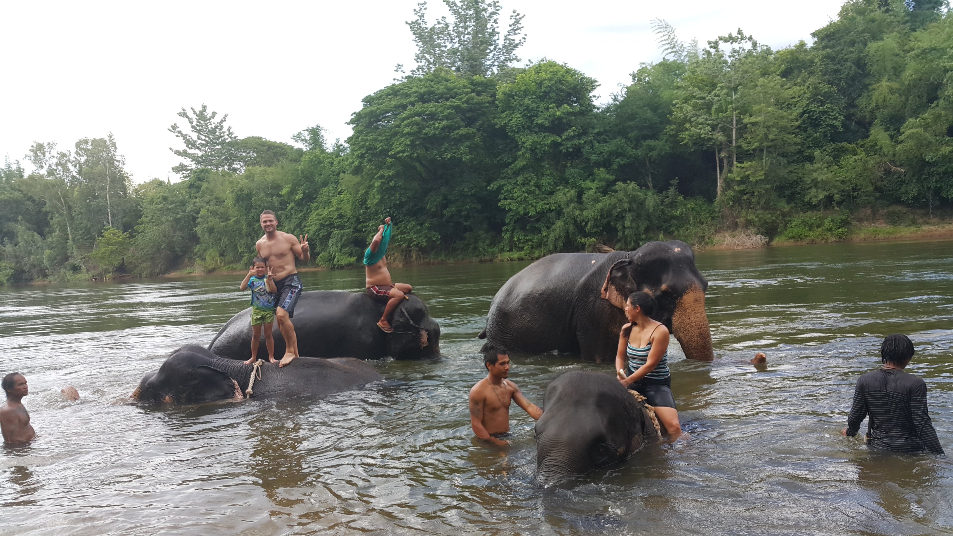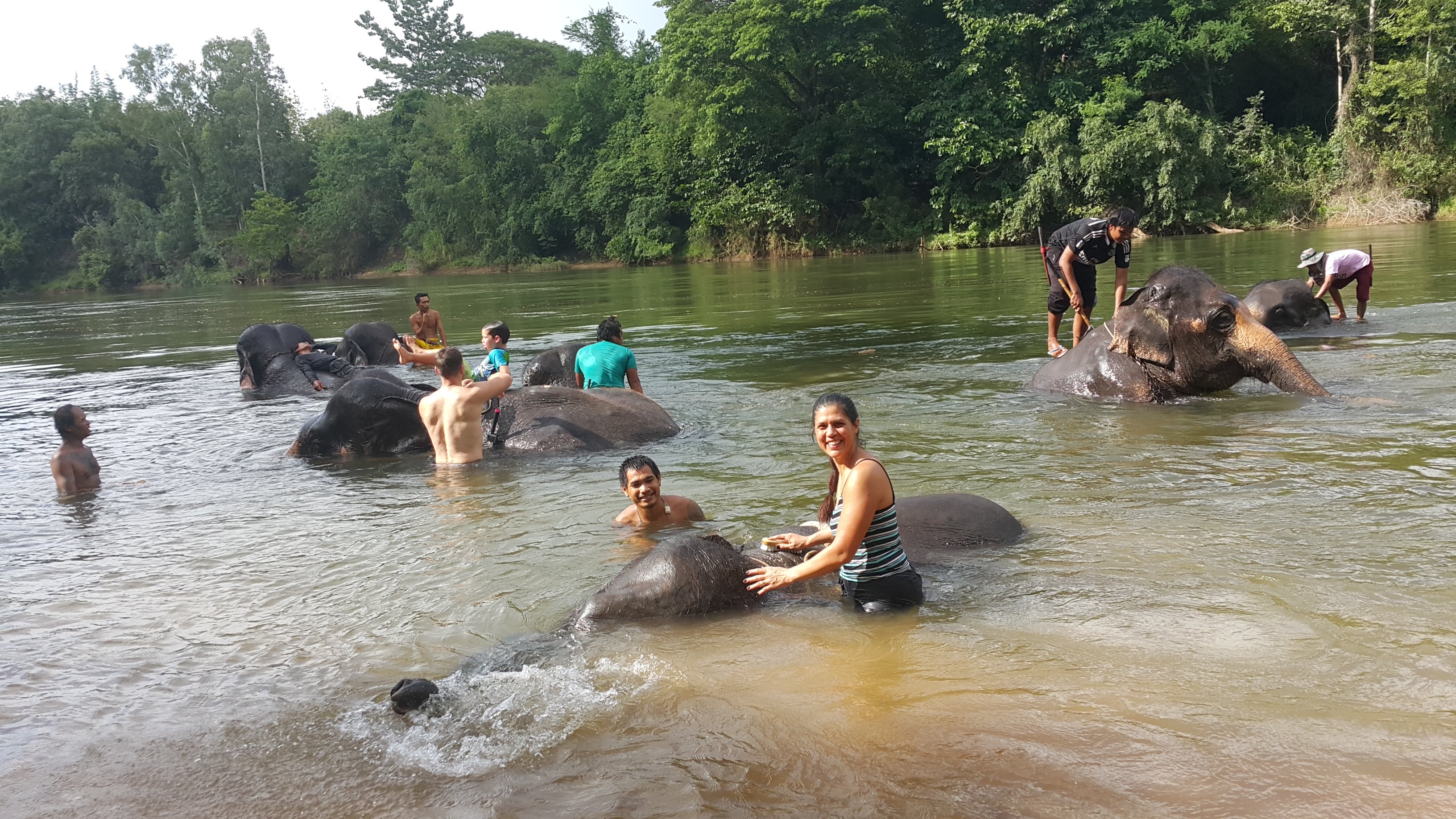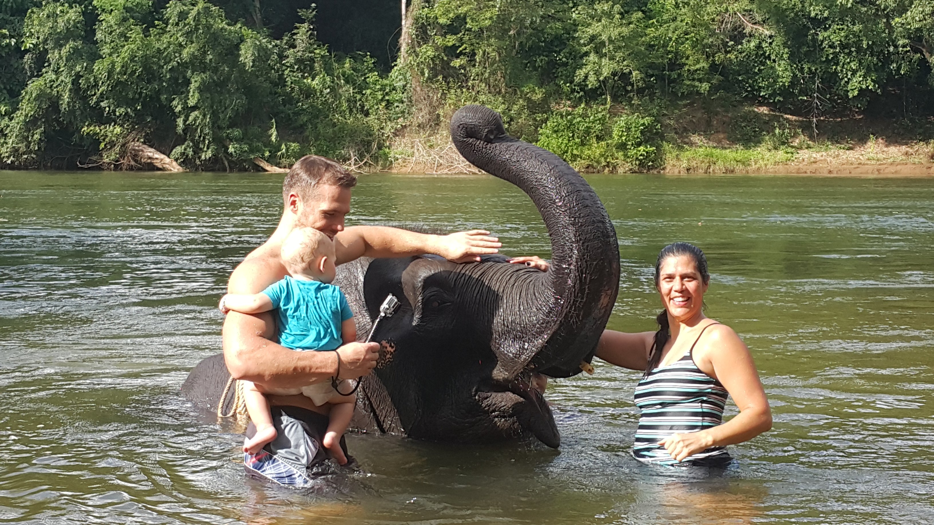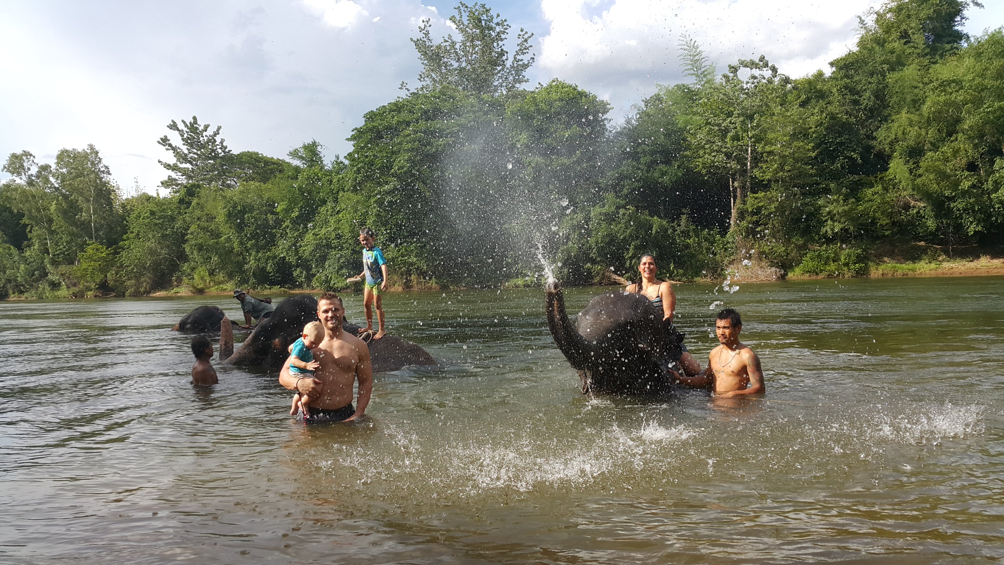 The elephant is giving us a bath