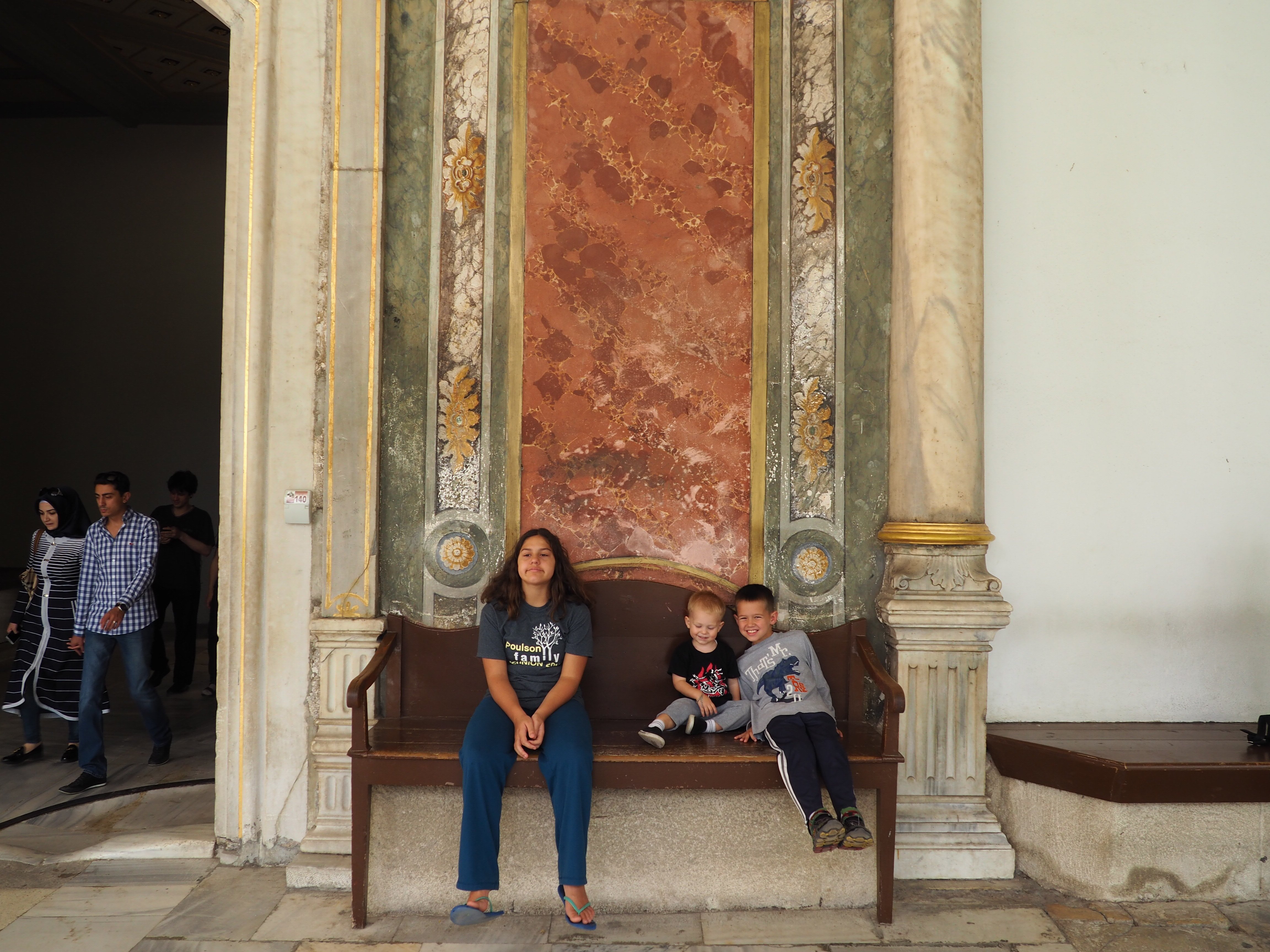 Kids weren't impressed that they were sitting on pieces of history in Istanbul, Turkey