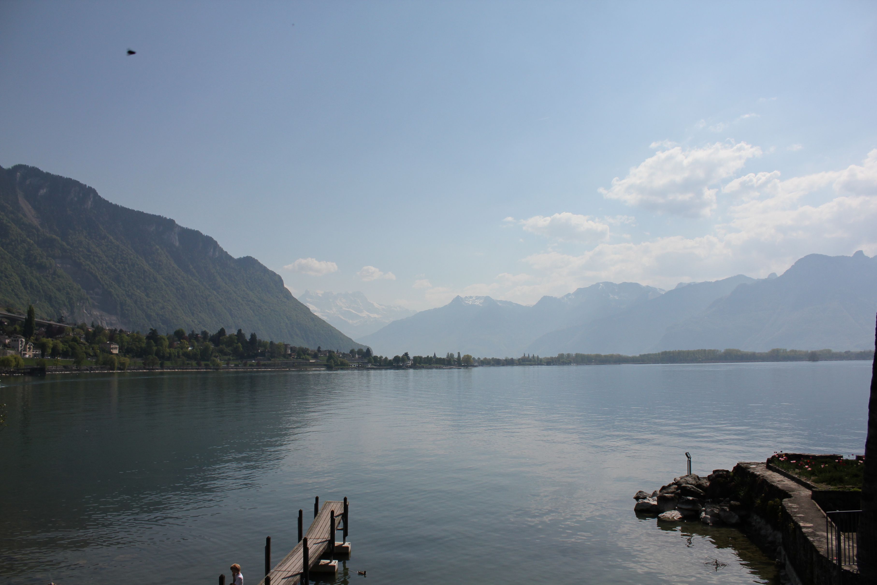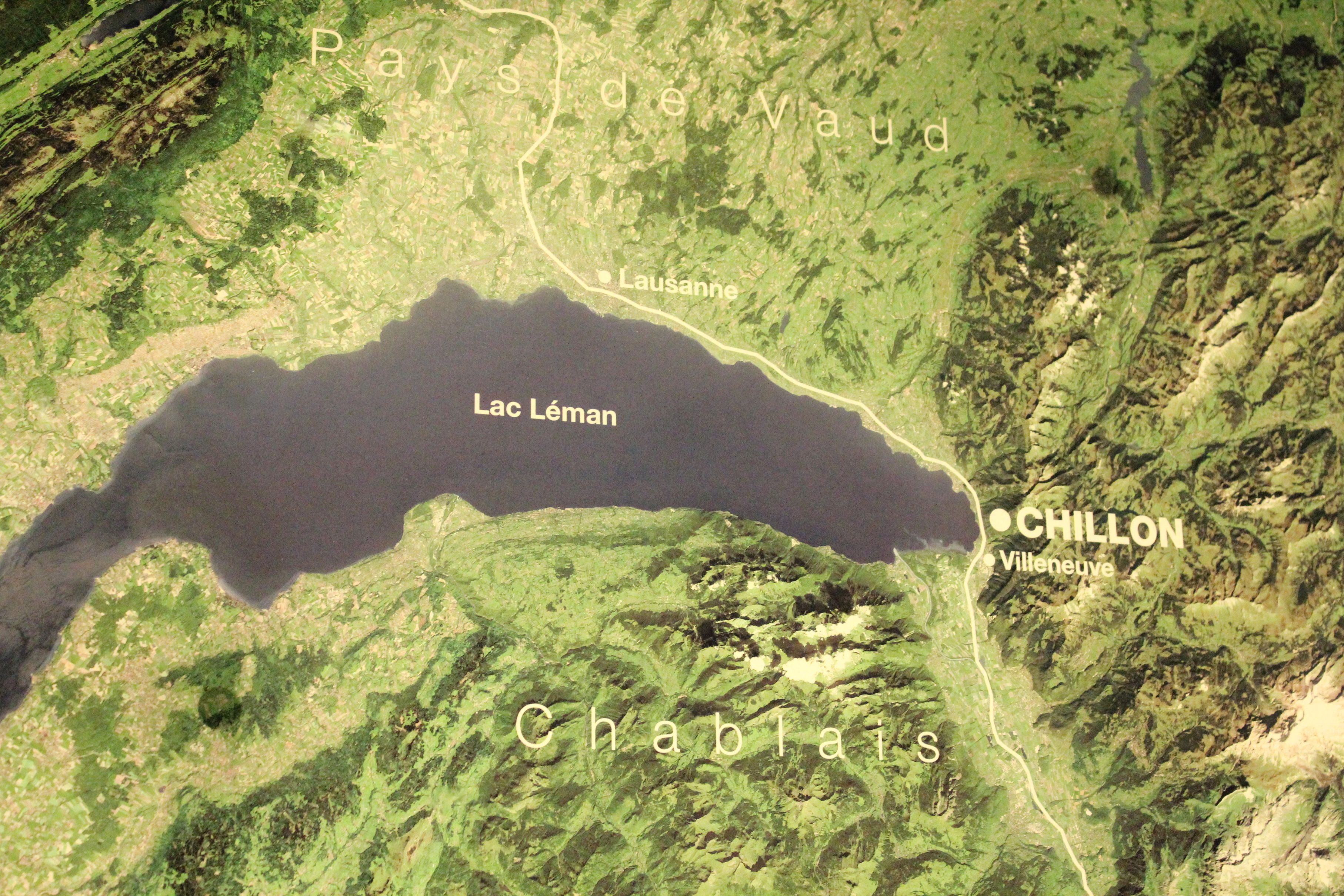 Lake Leman and the mountains that surround the Chillon Castle
