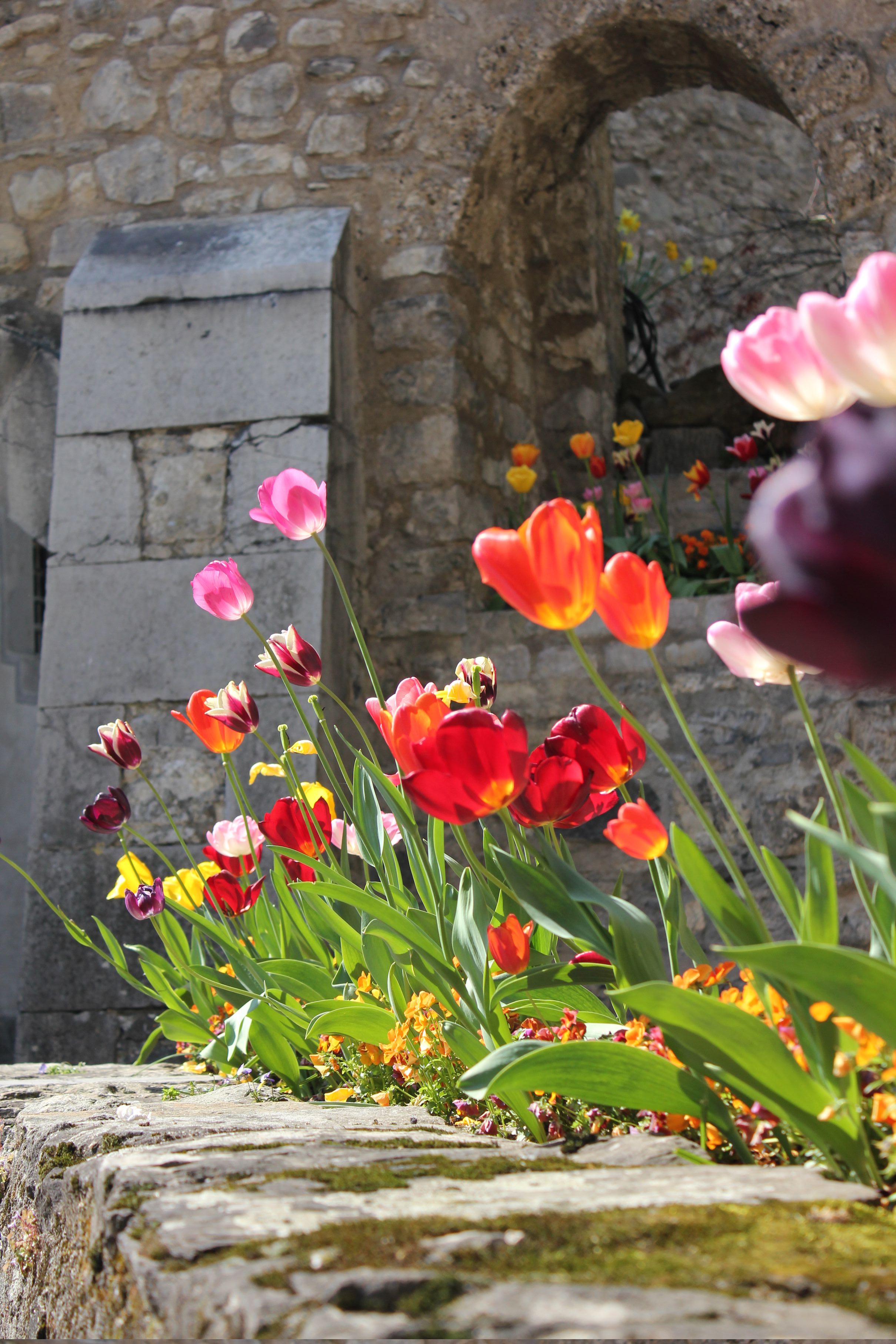 Beautiful tulips in bloom at the Chillon castle