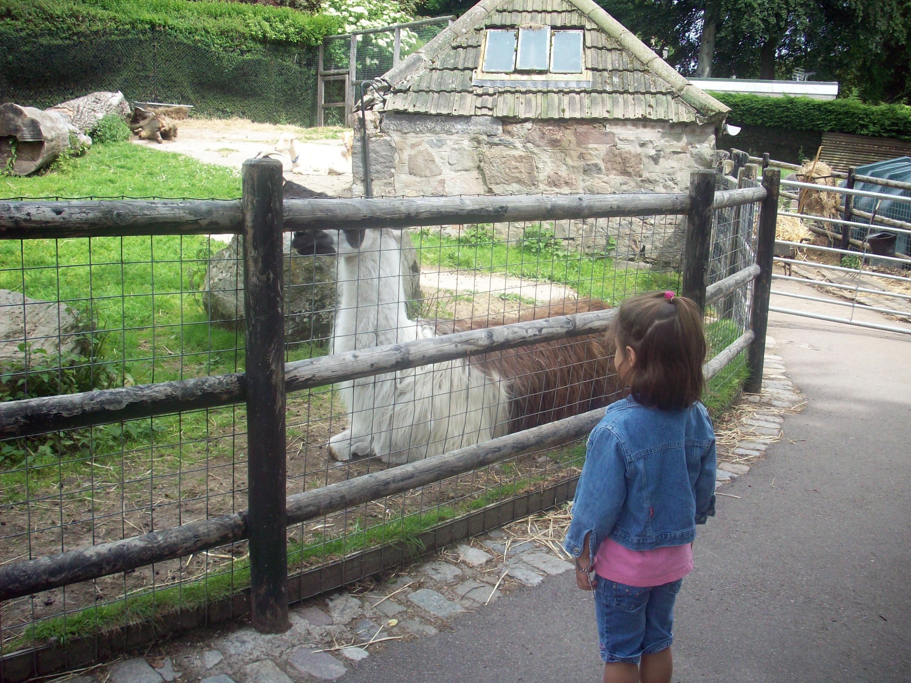 Kalani checking out a llama at the Pet Corner at Hazelhead Park