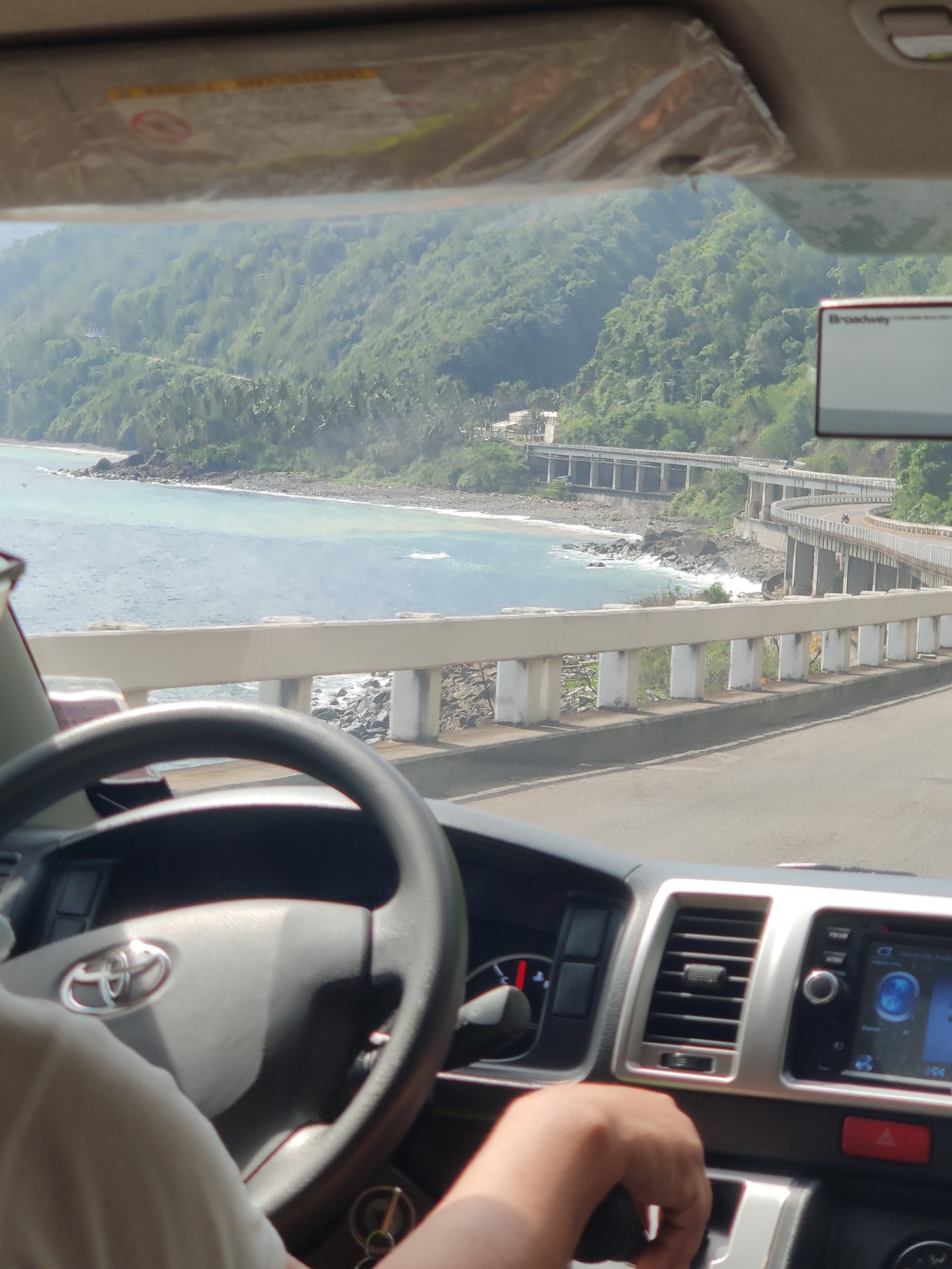 Exploring the scenic coastal roads of Ilocos Norte from inside a vehicle