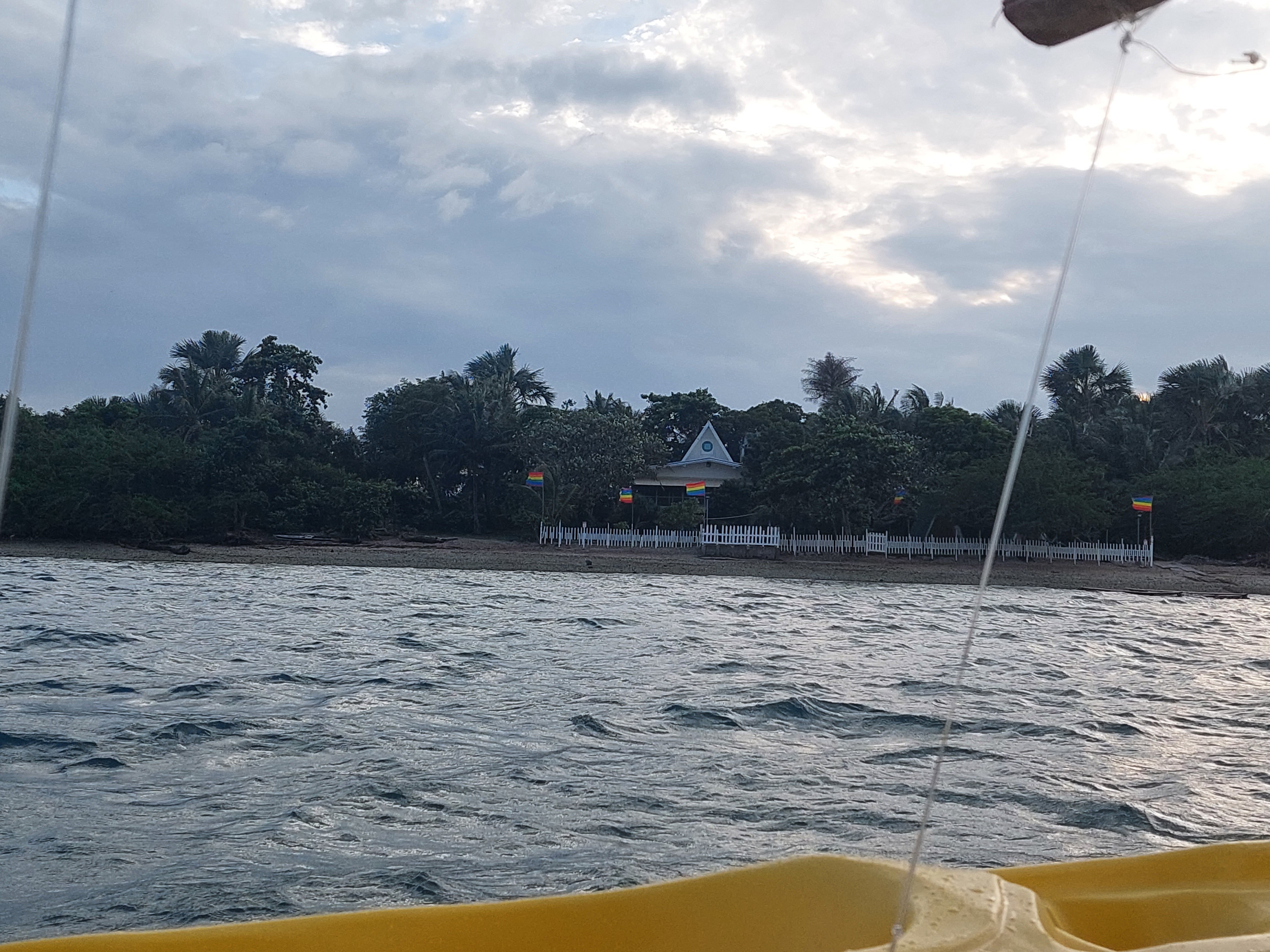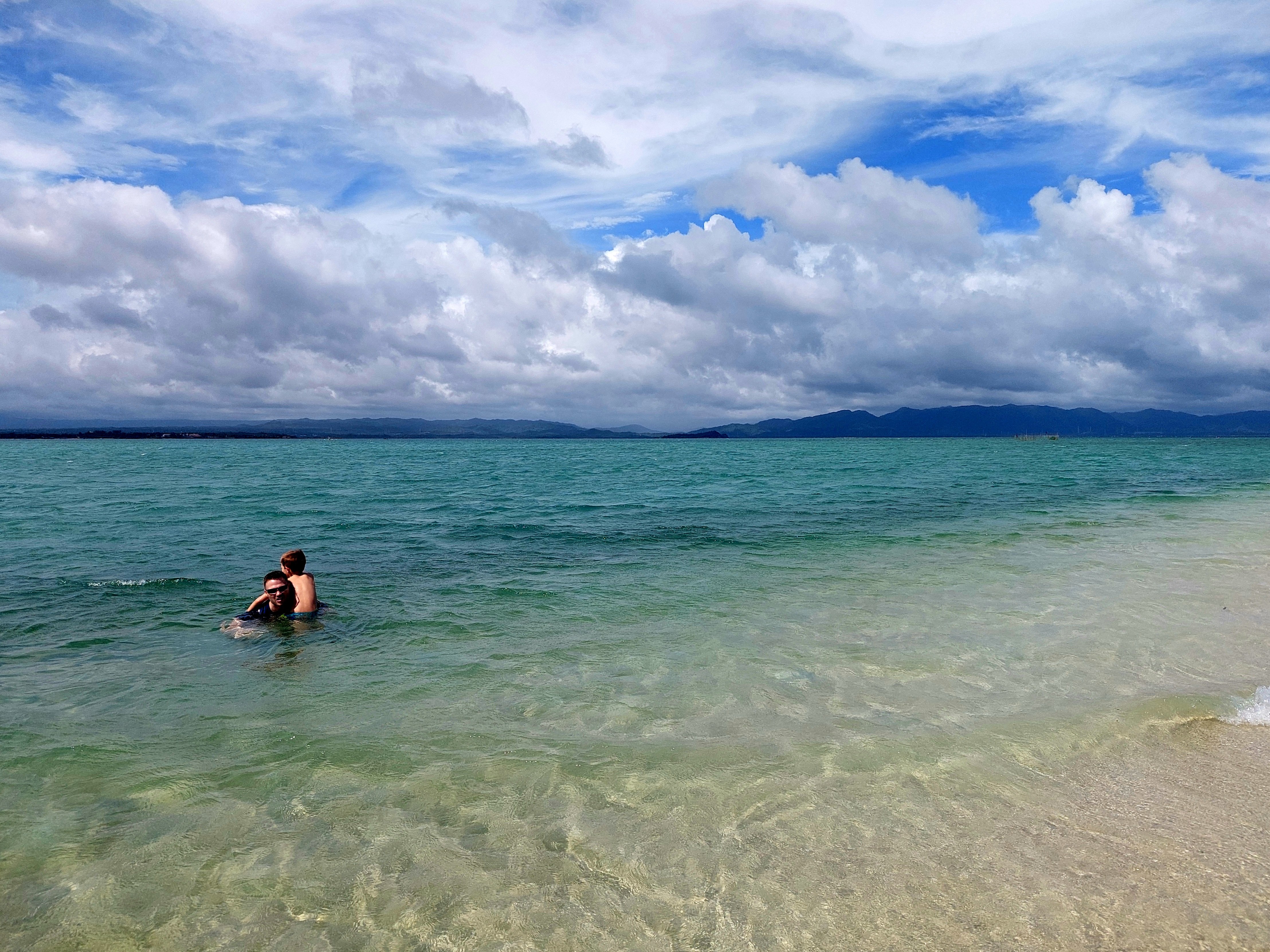 Matt and Blake enjoying a serene sea as clouds loom over the Philippine coast during the Quezon and Laguna roadtrip