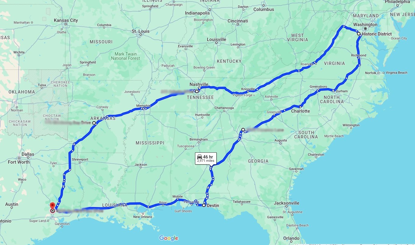 Our summer 2024 road trip plan covering over 2,971 miles across multiple states.